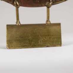 Jarcz created this piece as a one-of-a-kind handmade work. The sculpture reflects the bold aesthetic of 1970s French design. Its small scale allows versatile display in curated interiors. Collectors value this piece for its authenticity and sculptural presence. The solid brass construction adds weight and durability.
