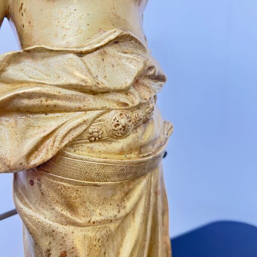 This stunning Jugendstil / Art Nouveau sculpture, titled “Judith”, was created by E. Tell in Austria around 1900–1910. Crafted from gilt bronze (bronze doré), the piece features an intricately detailed, heavy execution weighing approximately 29 kg with its stone base.