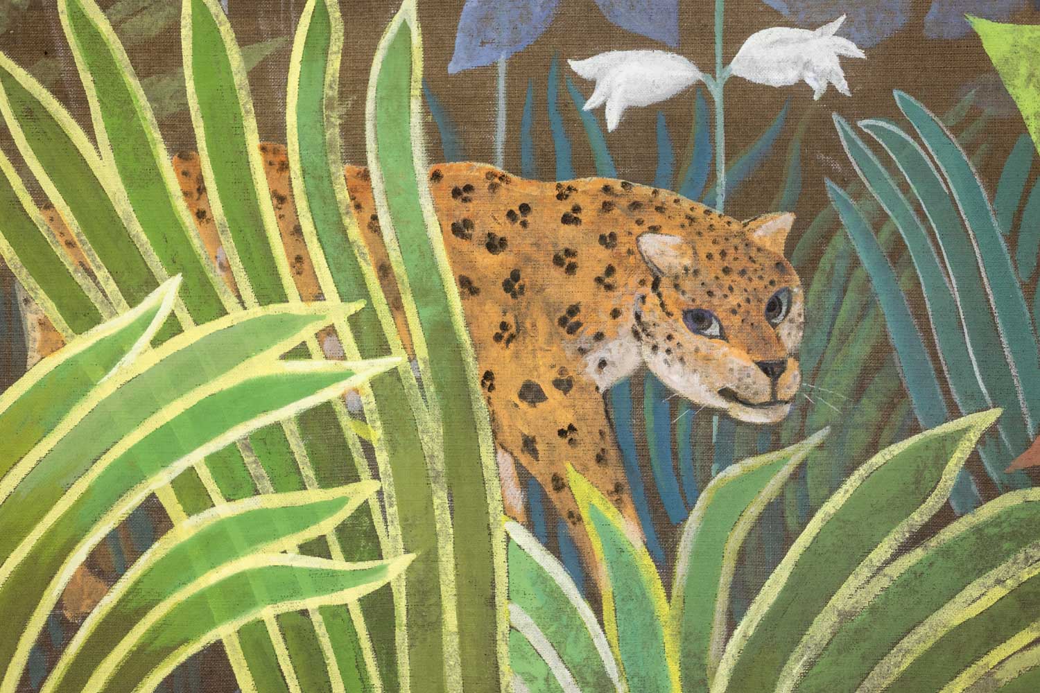 This Large Acrylic Painting titled “Homage to Henri de Toulouse-Lautrec, animals in the savannah” captures the energy of wildlife in bold colors.