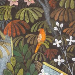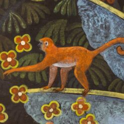 This Large Acrylic Panel presents a vibrant acrylic painting on linen canvas. The composition titled “Paradise Lost, Animals in the Savannah” captures movement and color. A contemporary French artist created this panel and signed it with a monogram.