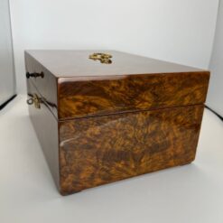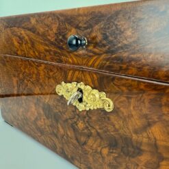 Elegant and generously sized late Biedermeier box, hand-crafted in Austria around 1850. This 19th-century piece features beautiful walnut veneers and classic Biedermeier design elements, making it an attractive choice for collectors and interiors with historic charm.