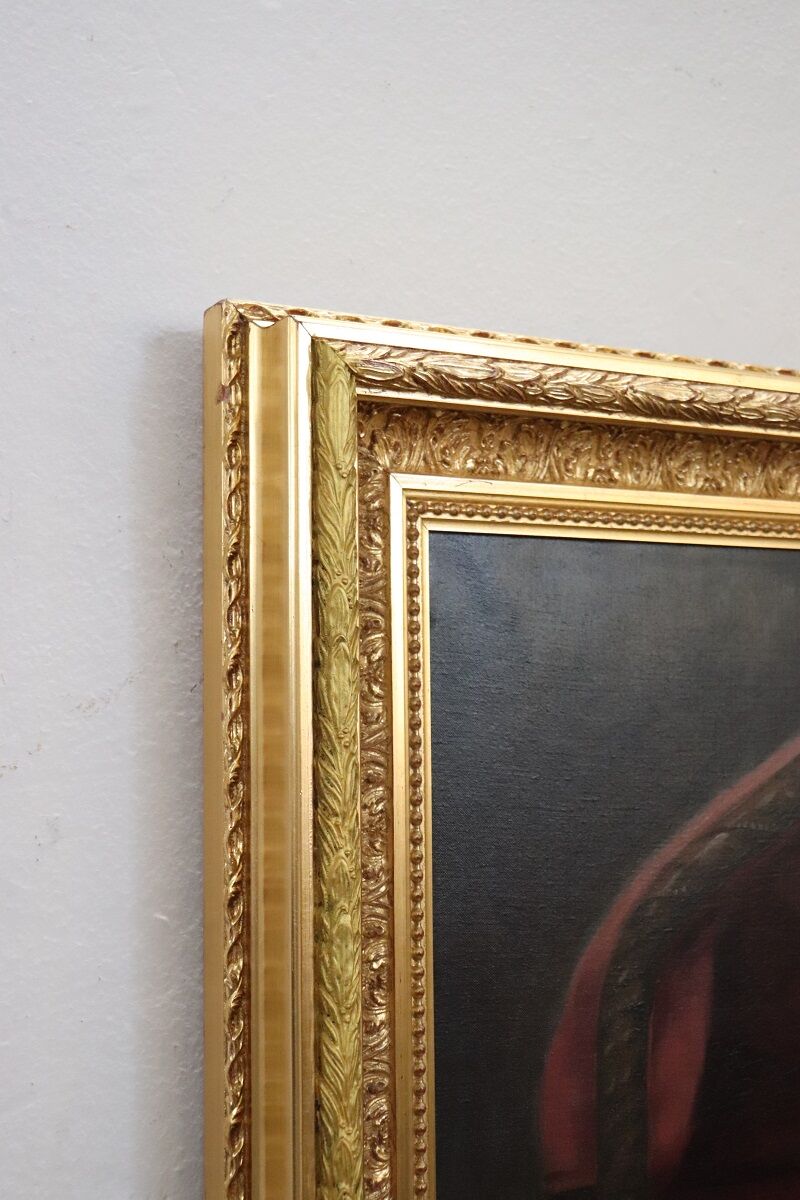 Collectors who enjoy antique paintings will value the quality and character of this work. A newly crafted gilded wooden frame enhances the painting and completes its stately presentation.
