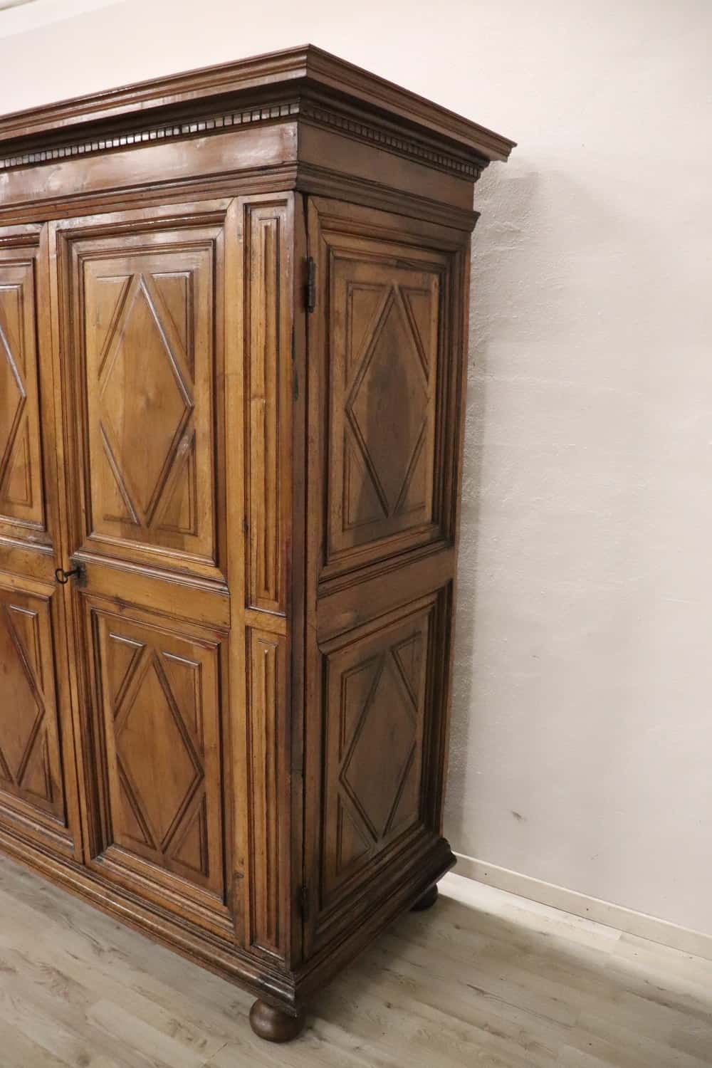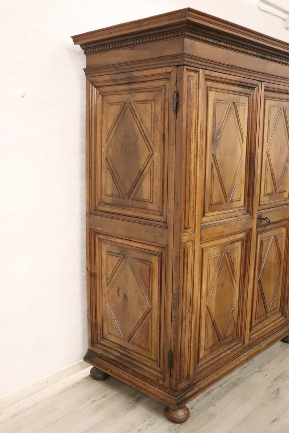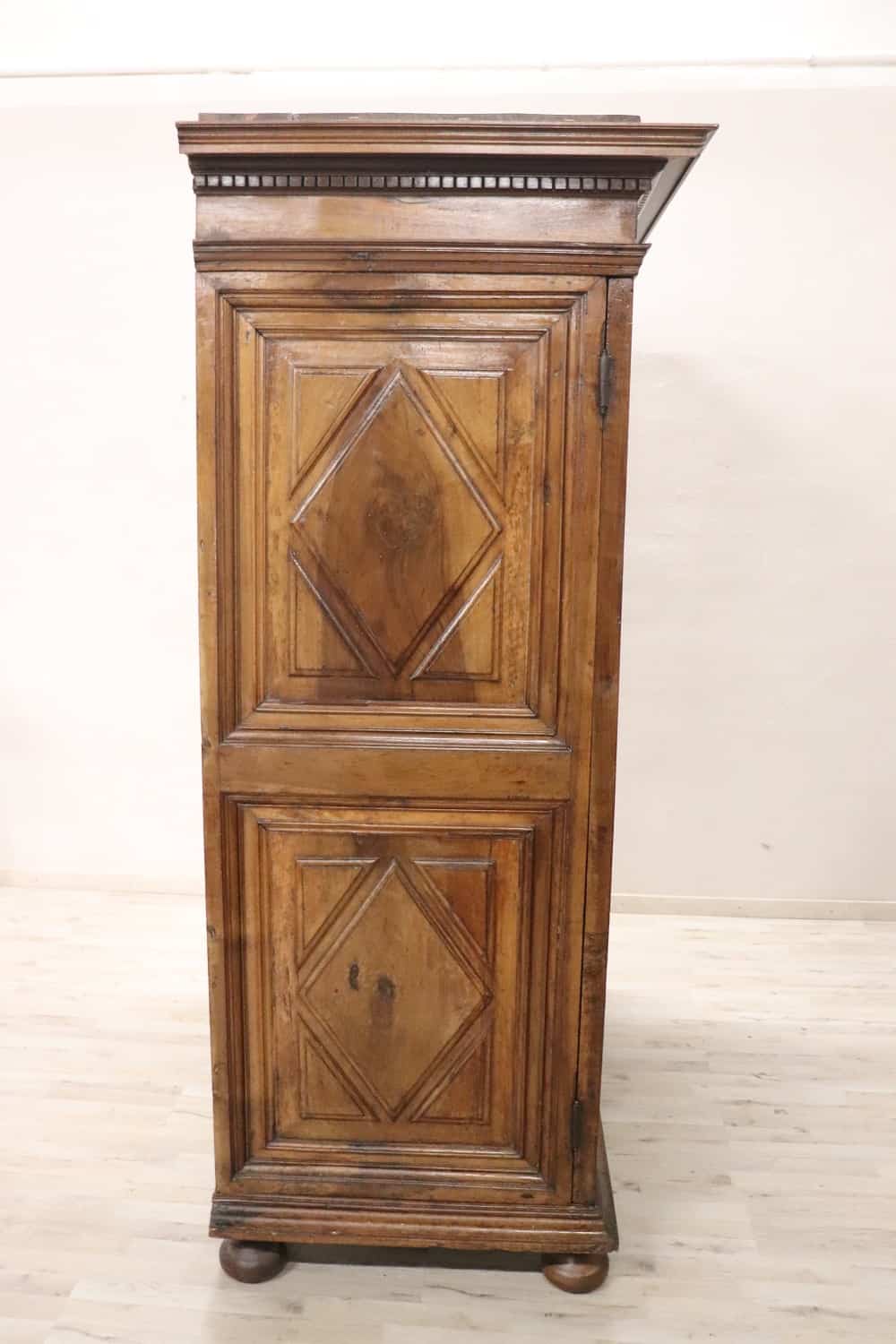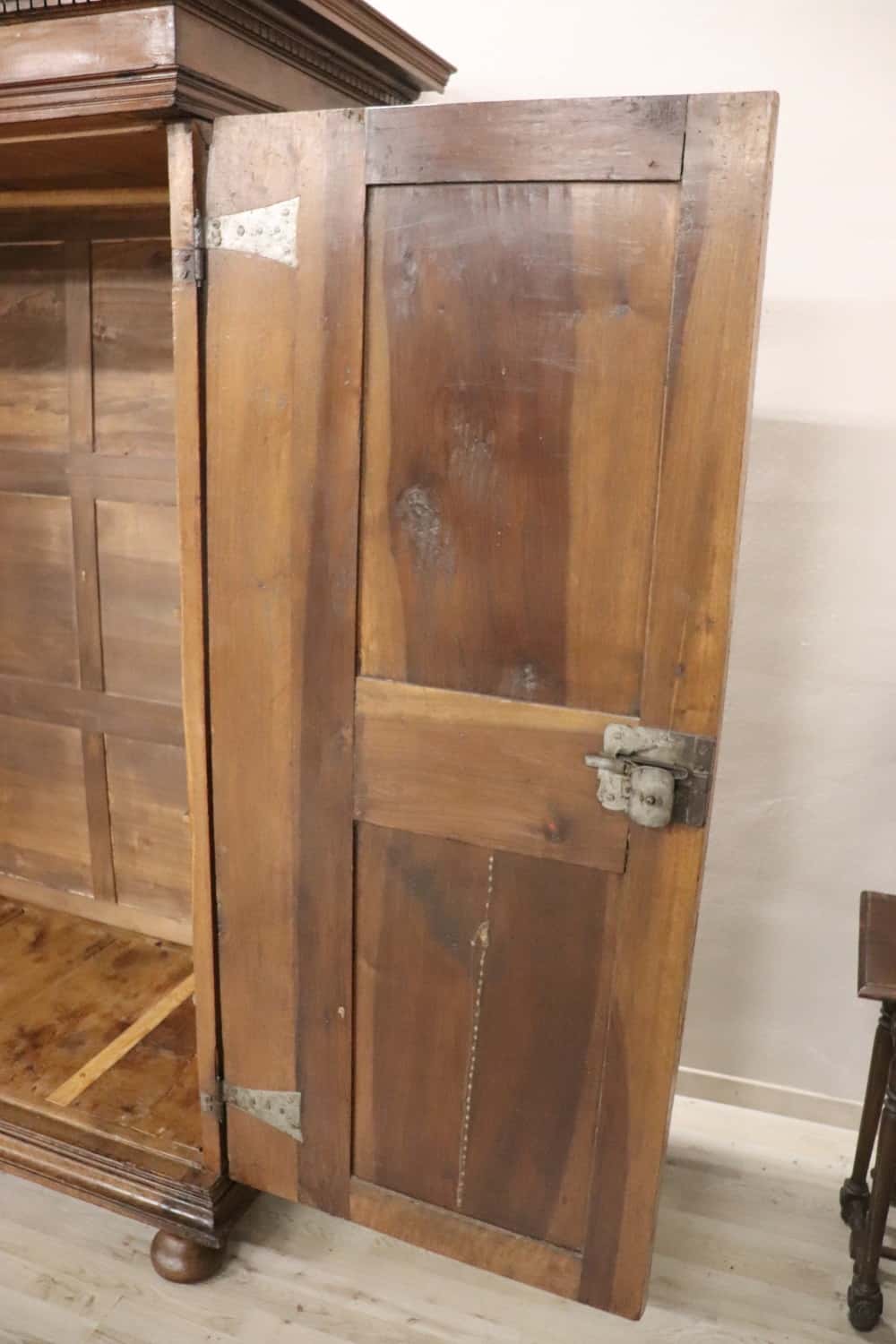 A rare Louis XIV solid walnut wardrobe from the late 17th century. This beautiful Italian antique can be used as a wardrobe or armoire.