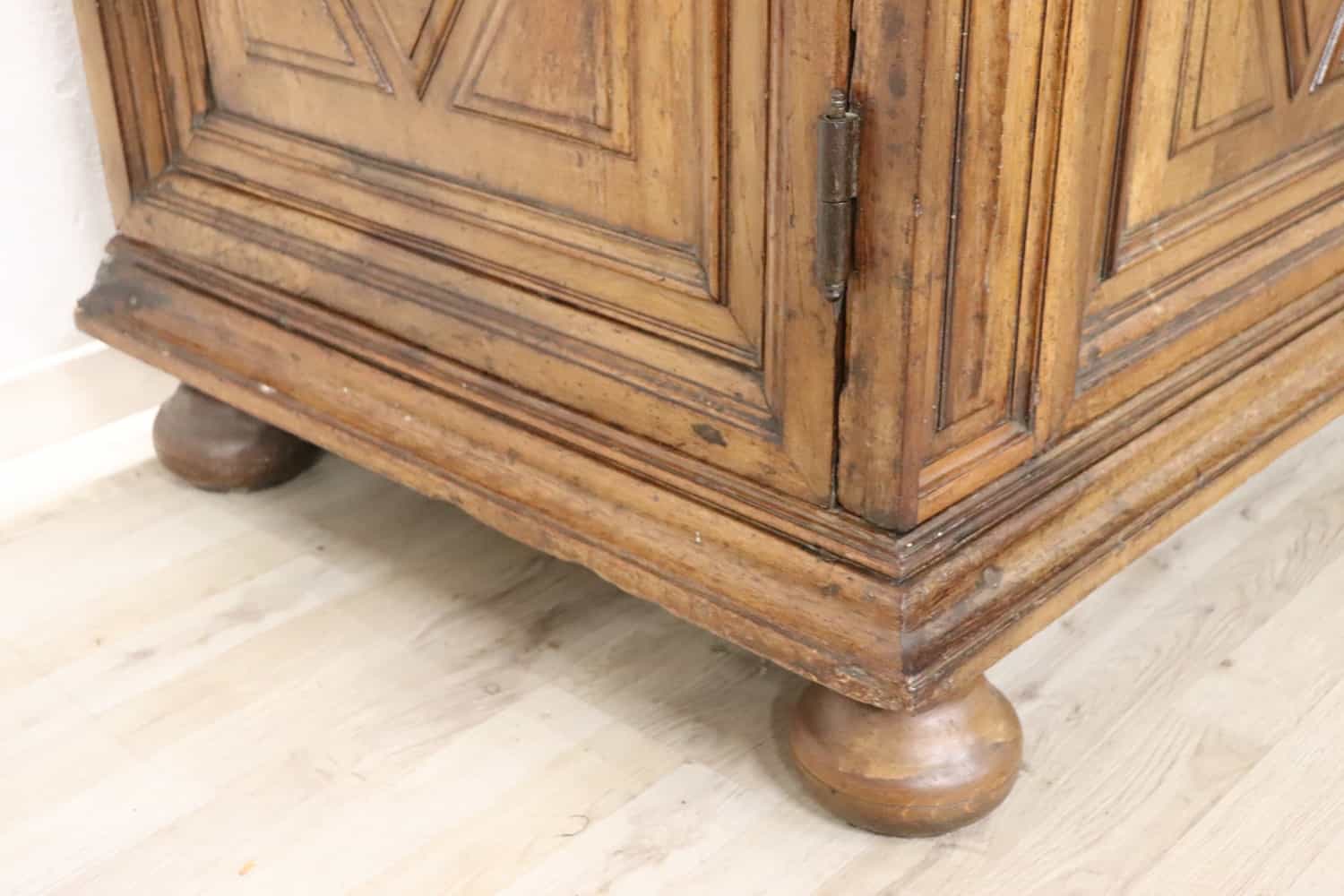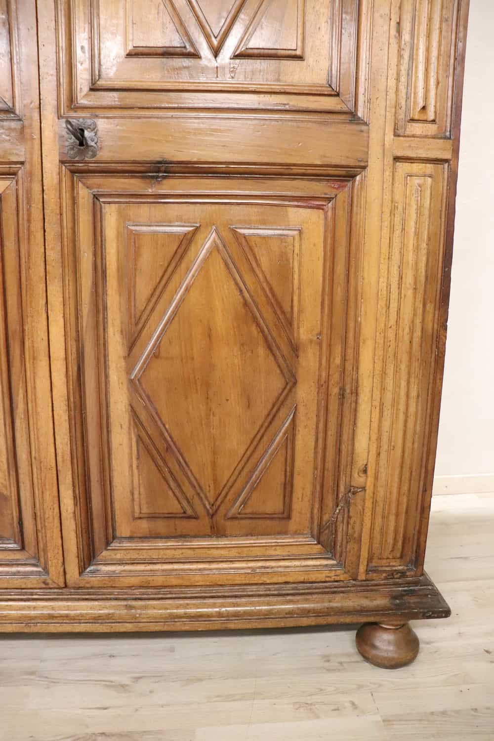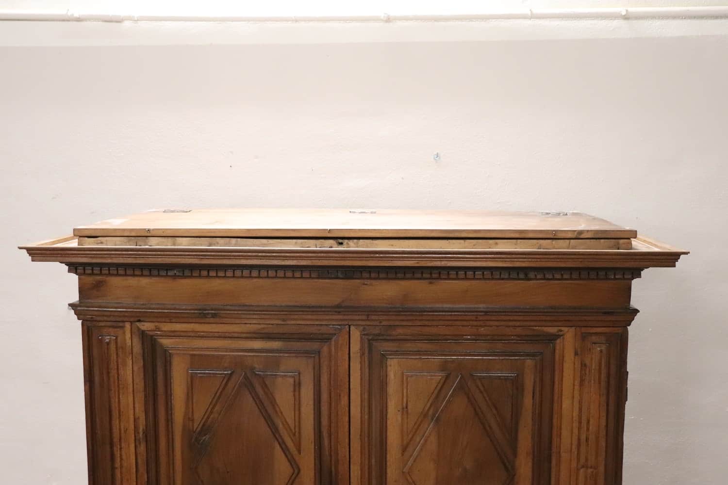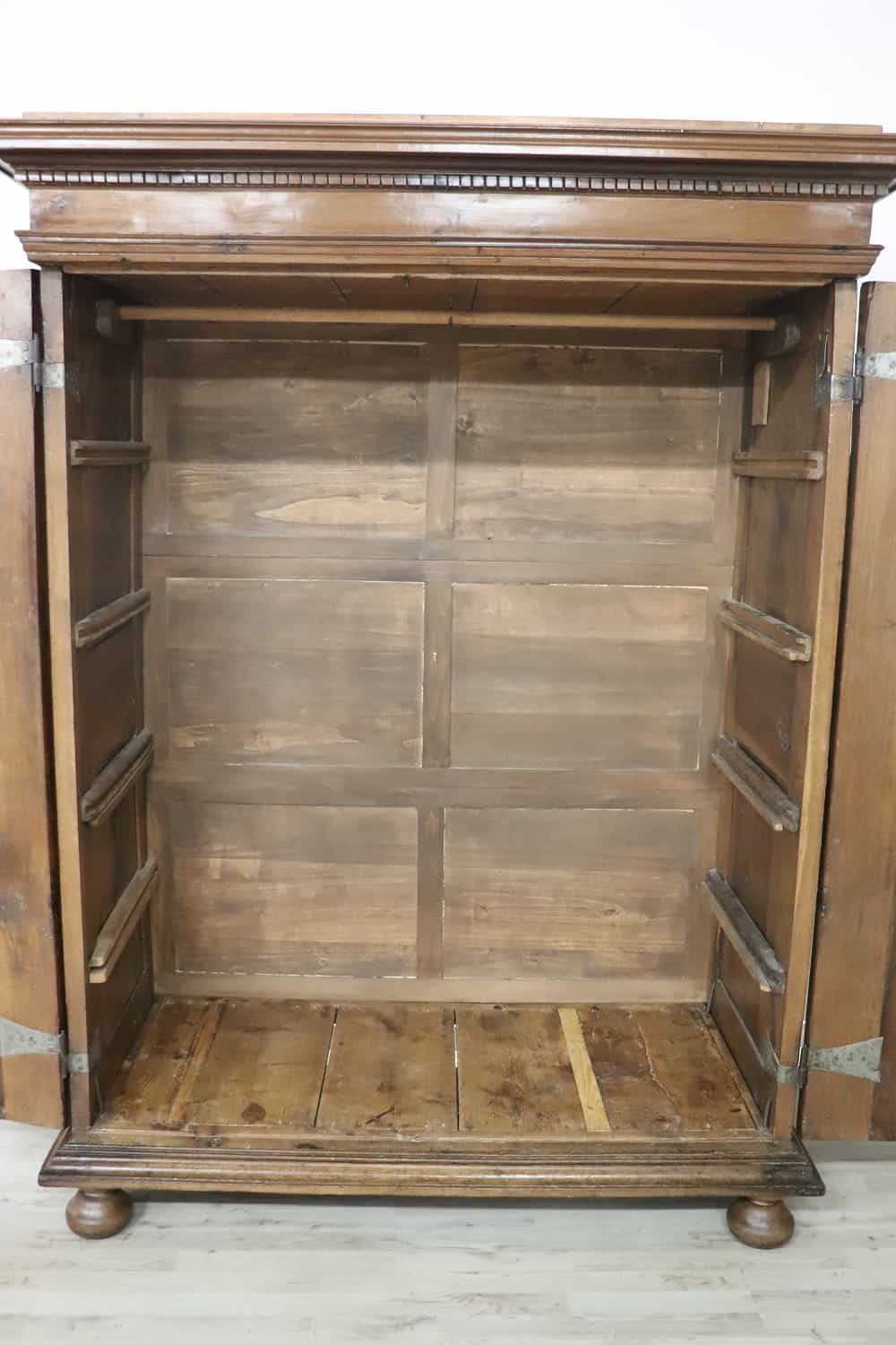 A rare Louis XIV solid walnut wardrobe from the late 17th century. This beautiful Italian antique can be used as a wardrobe or armoire.