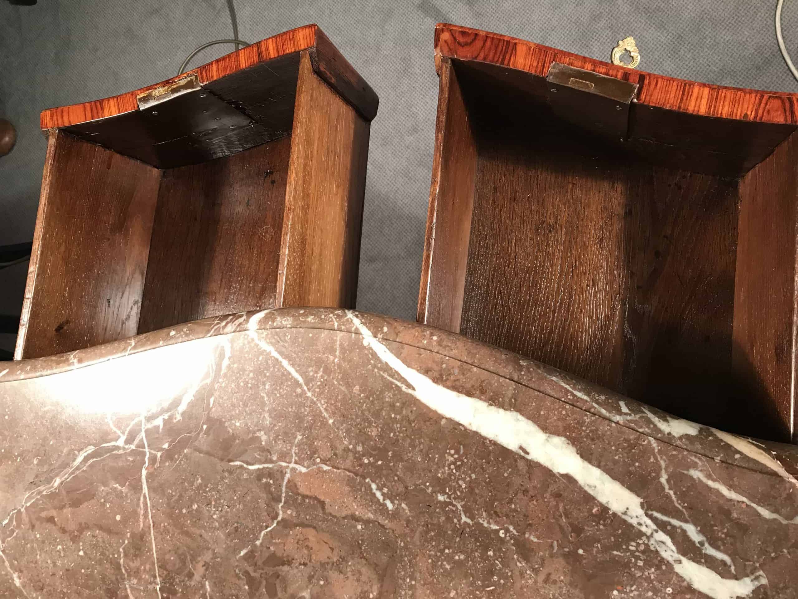 As commodes grew in popularity, so did the marble tops that topped them. The marble copied the shape of the furniture’s body, whether it was straight or curved.