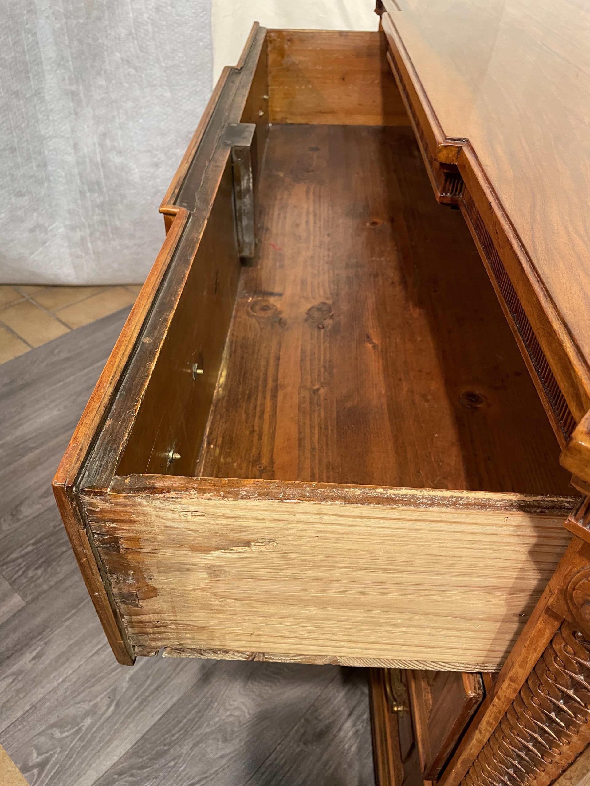 The Louis XVI dresser measures Height: 34.85 in. (88.5 cm), Width: 52.76 in. (134 cm), Depth: 25.99 in. (66 cm).