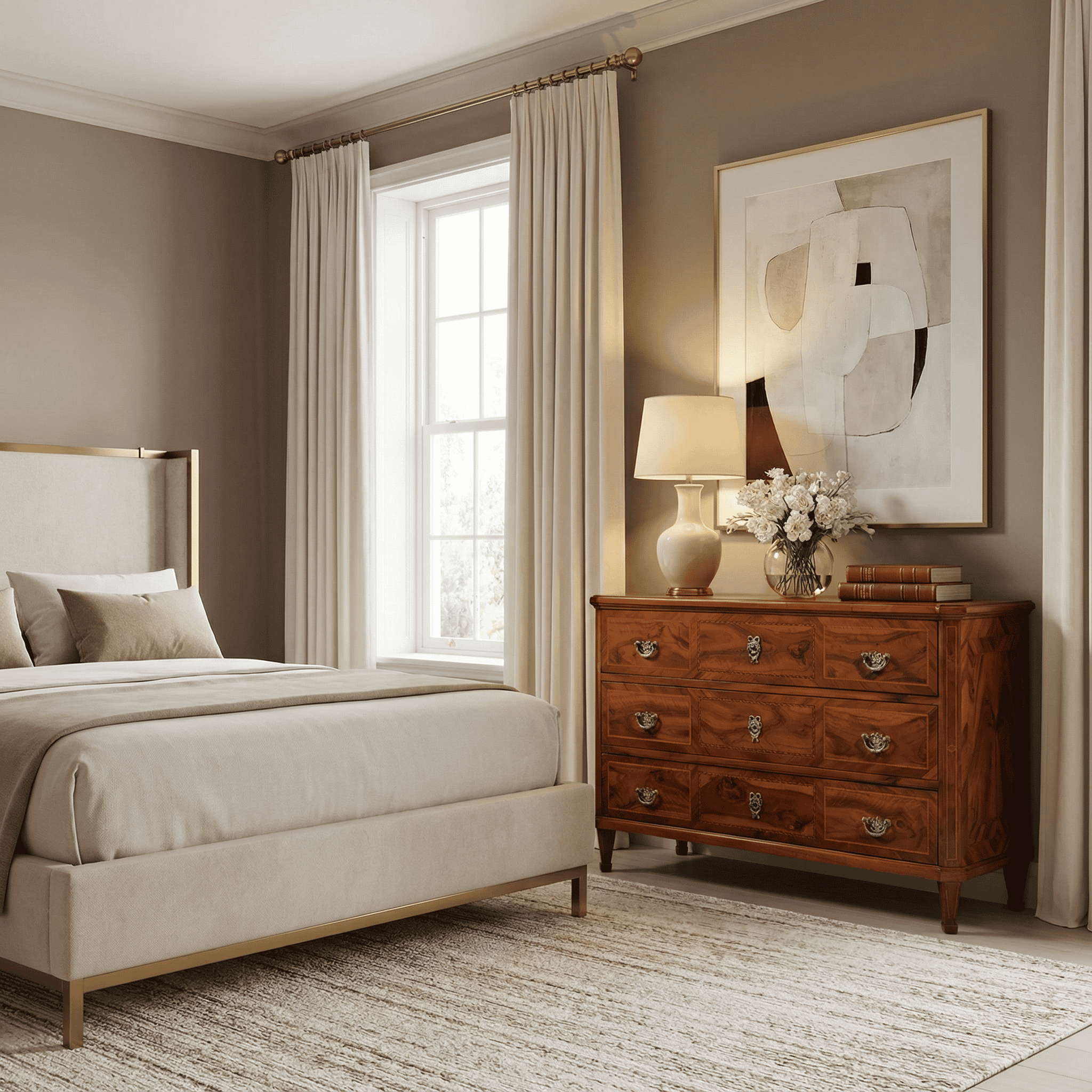 This elegant Louis XVI walnut dresser in massif wood with geometric intarsia in plum on front, top, base and the sides dates back to 1780 and comes from Southern Germany. The three drawer dresser stands on four square pointed feet. The Neoclassical design is easily combinable with contemporary interior design styles.