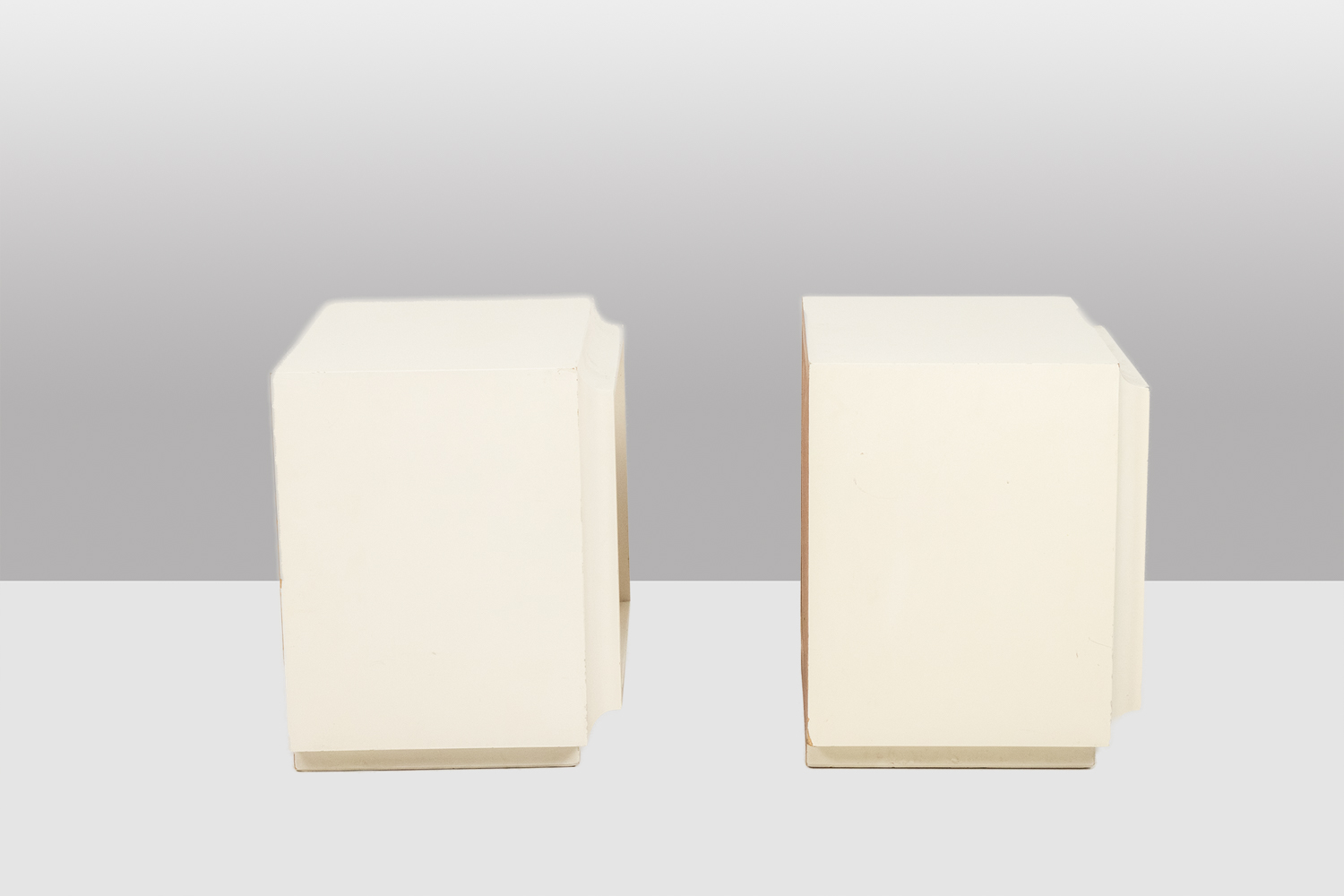 An Italian work realized in the 1970s, these bedside tables combine sculptural detailing with functional elegance, making them ideal for sophisticated contemporary or vintage interiors.