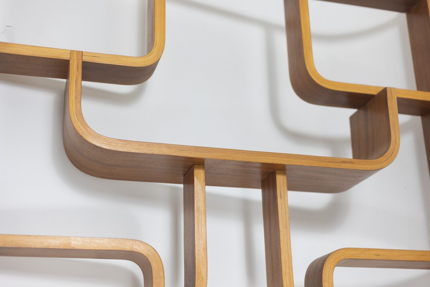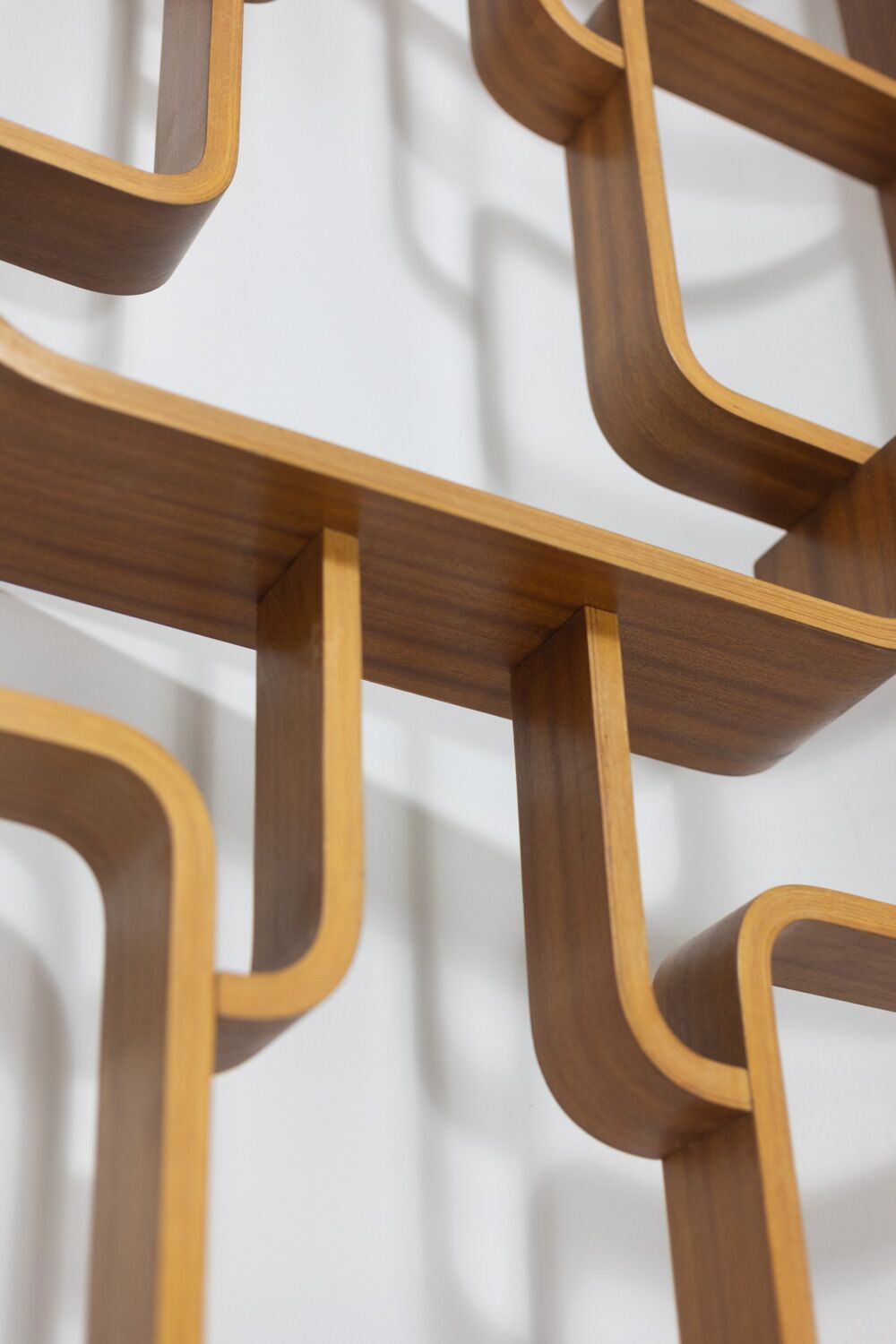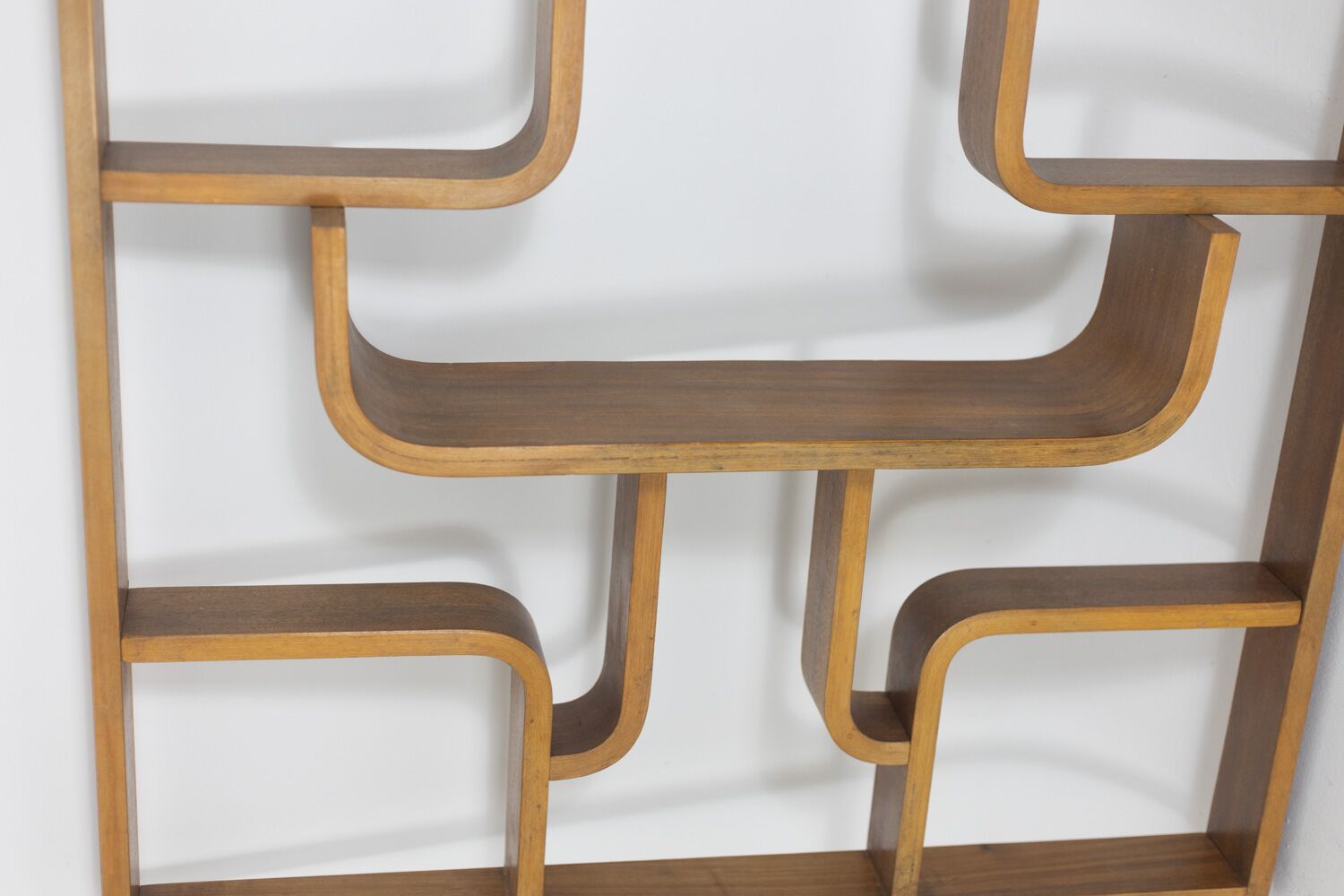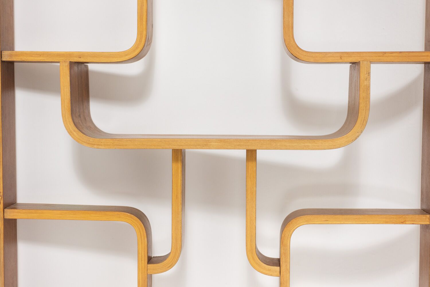 This stunning Ludvik Volak screen for Dřevopodnik Holešov, attributed to the acclaimed designer, showcases the elegance of 1950s Czech craftsmanship. Featuring a laminated and curved mahogany, the screen has a distinctive rectangular shape that combines both form and function. The rich mahogany wood and intricate design make it a perfect addition to any interior, adding a touch of mid-century sophistication. This screen is a remarkable example of Volak’s work, reflecting the innovative spirit of Czech design in the 1950s. Ideal for creating stylish partitions or as a standalone decorative piece, it enhances any space with its vintage charm.