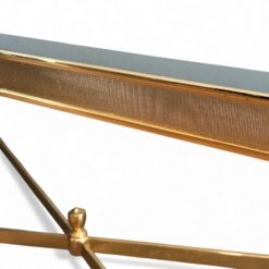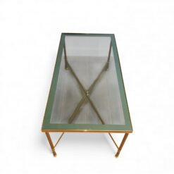 This elegant Neoclassical style Maison Jansen style coffee table features a refined silhouette and a blue-tinted glass shelf that adds a soft touch of color. Crafted in France in the style of Maison Jansen, it reflects the timeless glamour and clean lines associated with mid-20th-century Parisian design.