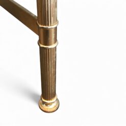 The table’s gilt metal frame offers subtle decorative accents and excellent stability. The glass shelf provides practical storage while enhancing the table’s light, sophisticated look. This piece blends beautifully with classic, transitional, and contemporary interiors.