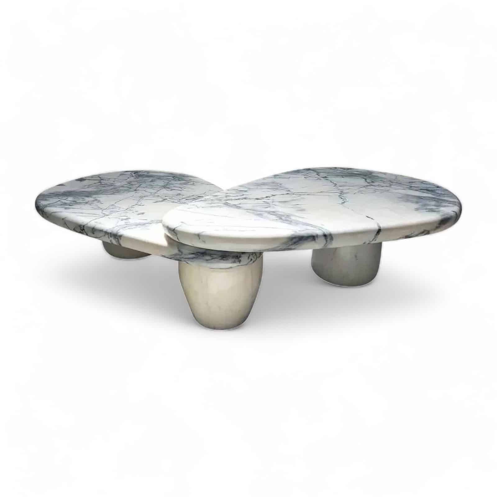 The marble sofa table “Caracole” is a coffee table, composed of two parts that complement each other. It is a marble table, customiz-able not only in size, but also in its materials. It is another harmonious piece, with a touch of boldness by the designer Sergio Prieto.