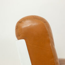 This Mario Bellini Leather Armchair from the Amanta series delivers strong sculptural lines and warm Italian character. Mario Bellini designed the chair for B&B during the 1970s. The white fiberglass-reinforced polyester shell creates a crisp frame. The tan leather seat and backrest add comfort and a refined tone. The chair embodies signature mid-20th-century Italian design.