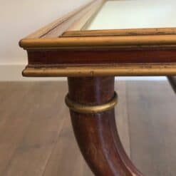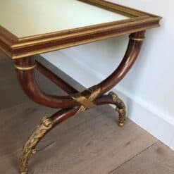 Elegant and refined, this exceptional Maison Jansen, designed by Maurice Hirch gilt wood coffee table is a fine example of French gilt wood furniture from the 1940s. Crafted in carved wood and richly finished in gold leaf, the table features a mirrored top that enhances its sculptural base while reflecting light beautifully — a hallmark of sophisticated Hollywood Regency and French Art Deco–influenced design.