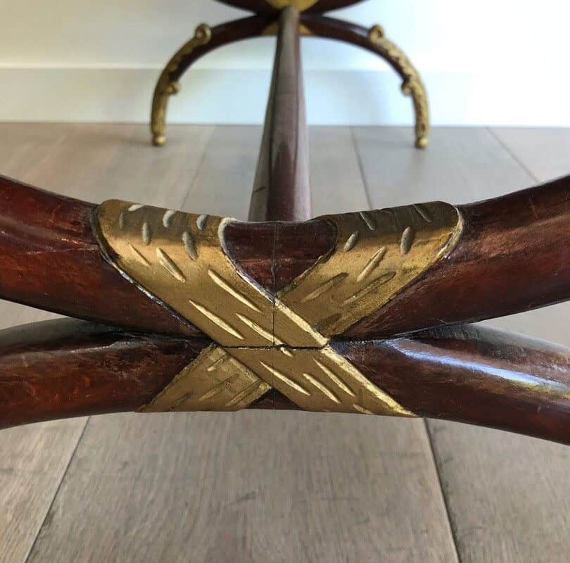 Perfect as a vintage French coffee table, giltwood cocktail table, or accent piece in a living room, salon, or library, it adds warmth, texture, and historical character to any space.