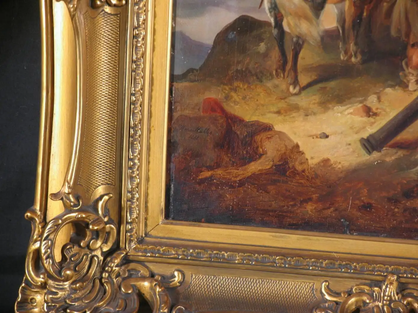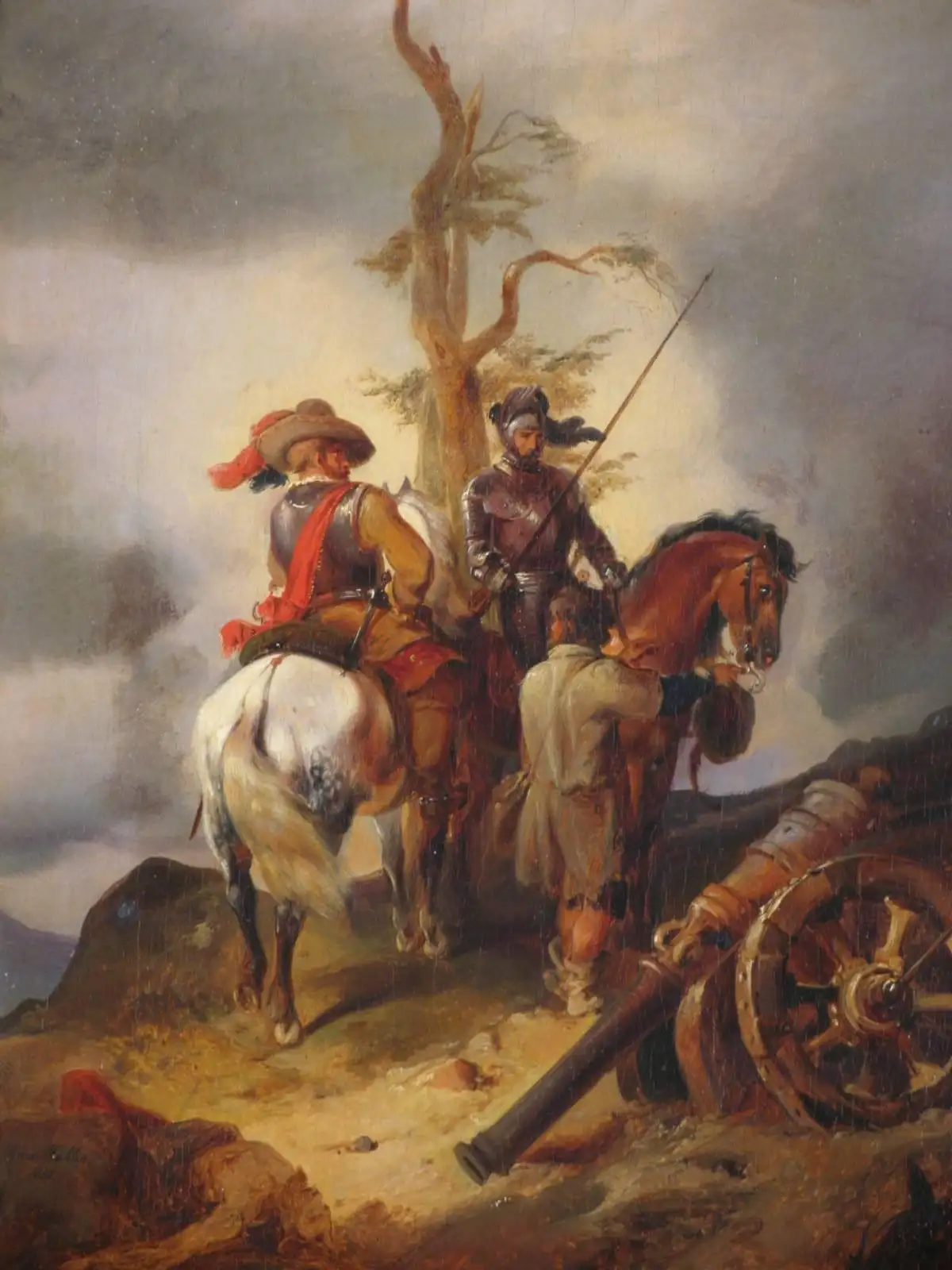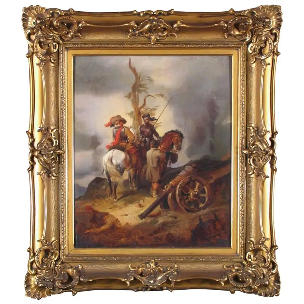 Meno Mühlig (Eibenstock 1823-Dresden 1873), “Battlescene of the Thirty Years War (1618-1648)”, oil on canvas, signed and dated “Meno Mühlig, 1851”.