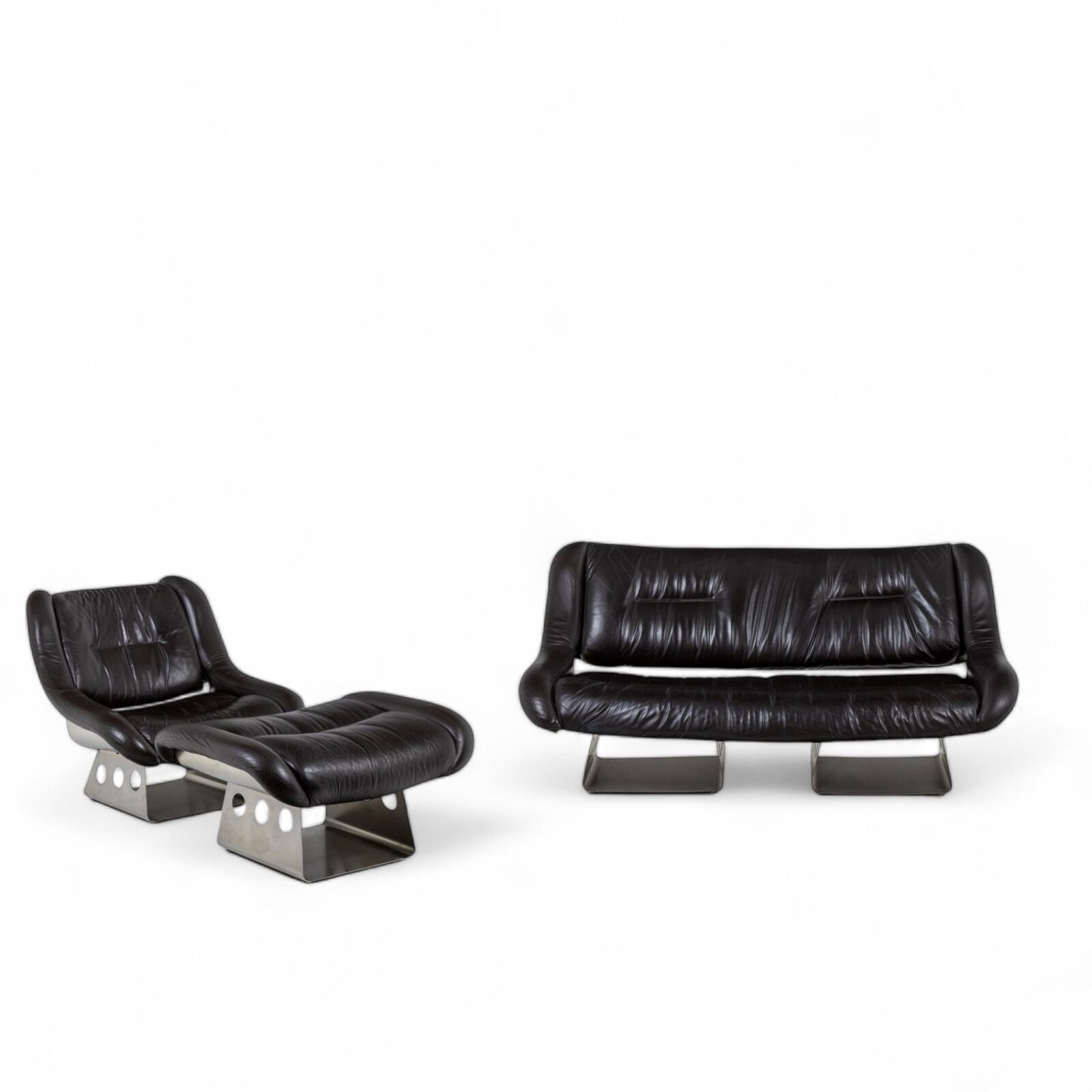 Metal and Leather Living Room Set, 1970’s