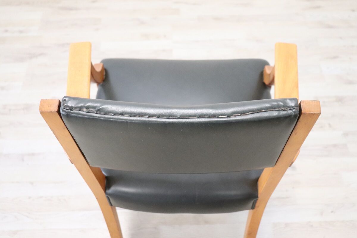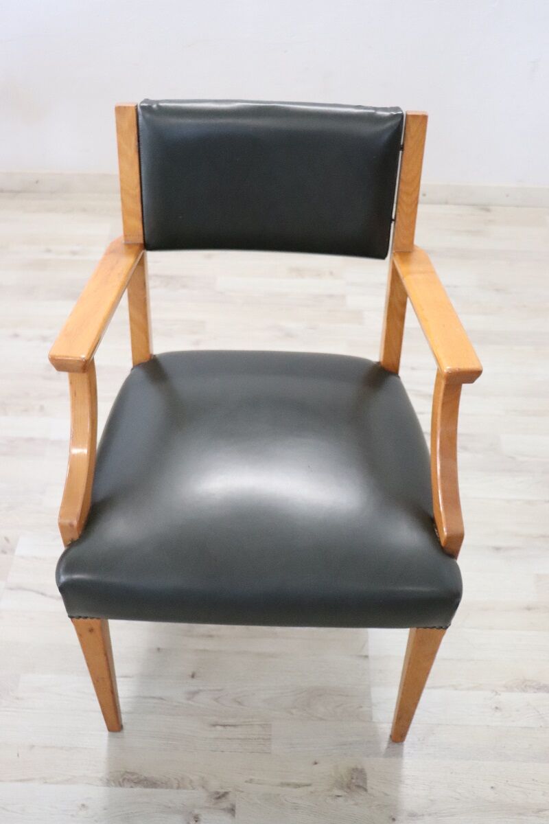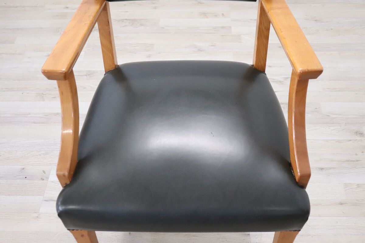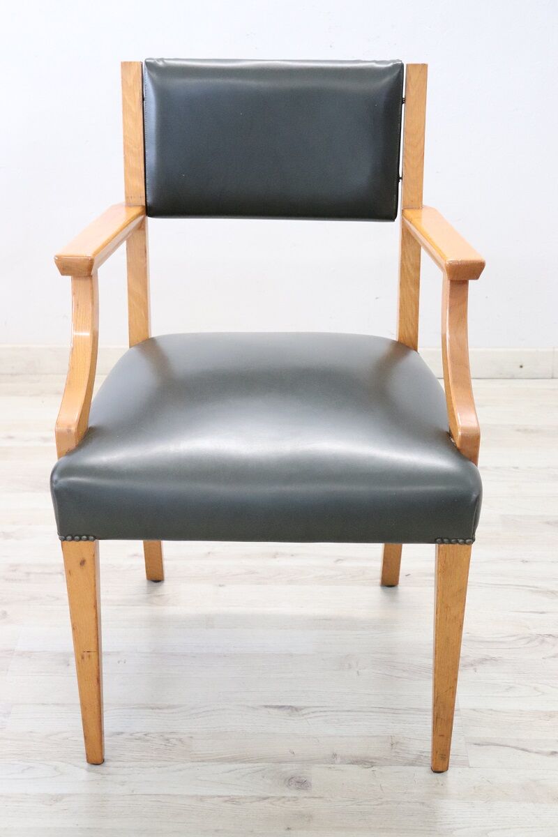 Mid Century Desk Armchair – Italian Design, Oak Frame, Green Faux Leather, 1950s/60s