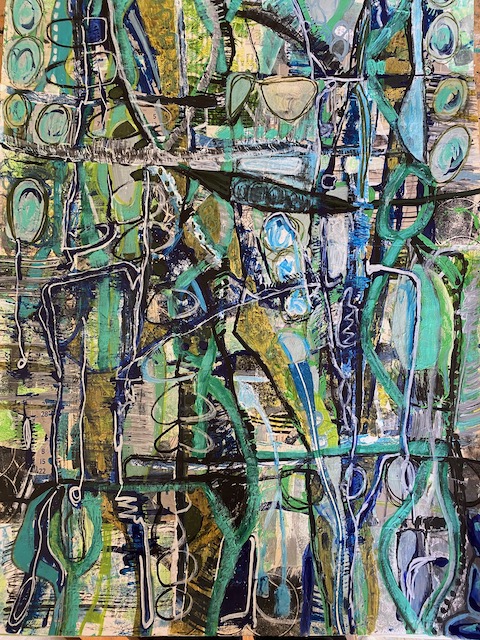 Around fifteen years ago, Baltzell discovered encaustic painting and fully integrated it into her mixed media practice. Today, she continues to explore abstraction through layered materials, physical process, and intuitive mark-making.