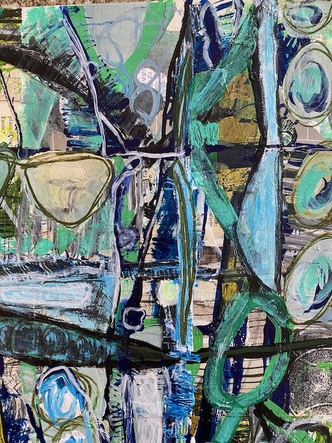 Medium: Mixed media on paper (collage, acrylic, ink)