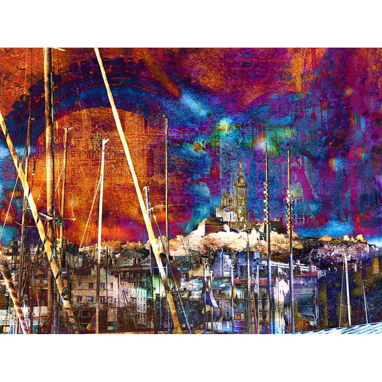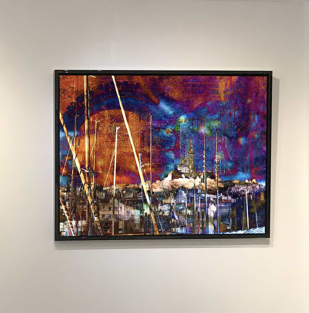 This modern artwork by the French artist Sandrine Berthon is titled “Le promontoire du songe” (Dream promontory). It is a digital creation, covered with a thin layer of resin. It is also a limited edition, with only eight copies for sale. Additionally, it is signed on the back with certificate of authenticity.
