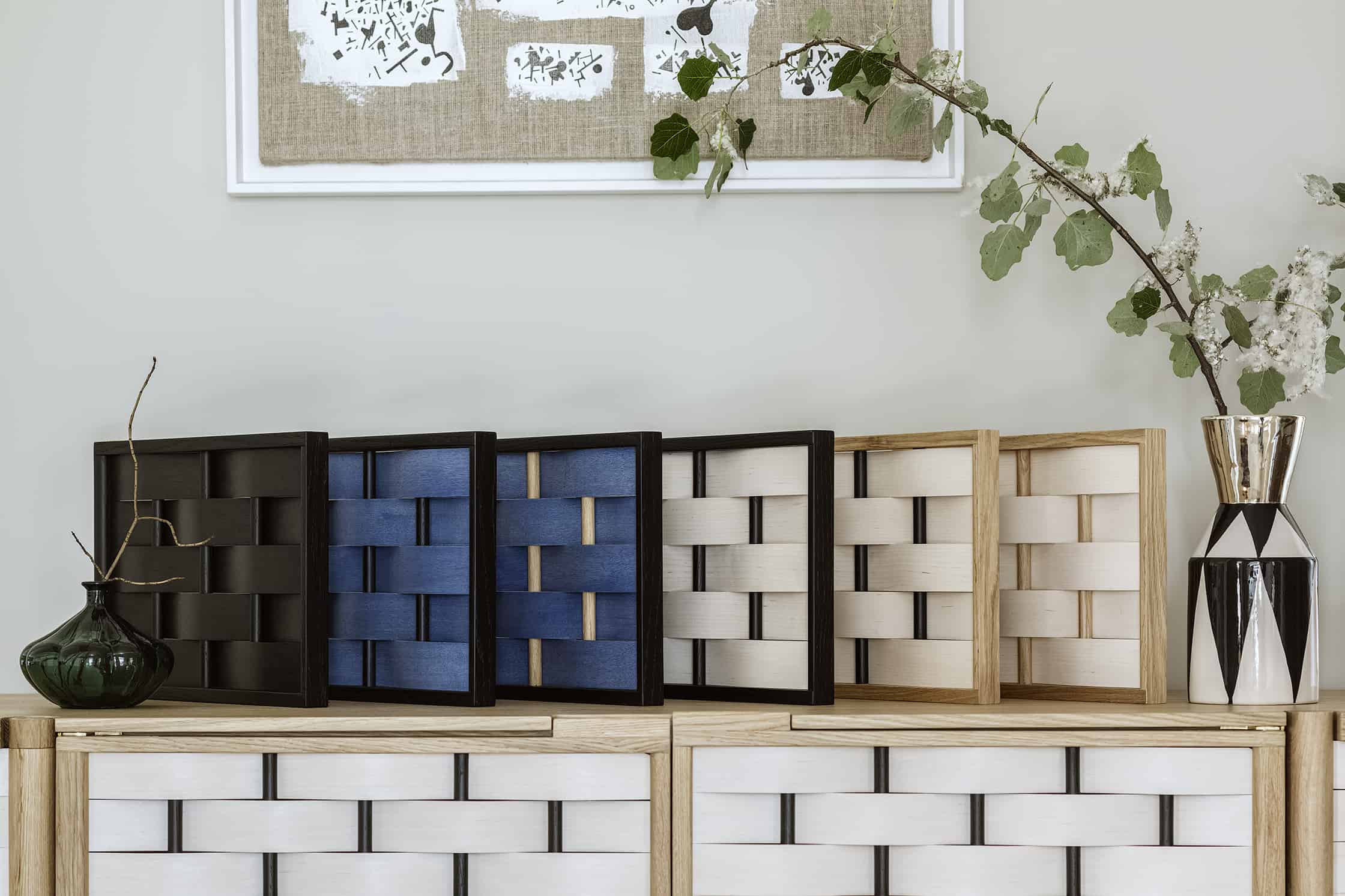 landscapes. The credenza is available in 4 colors. The wooden part of the furniture body is oiled, the frame is lacquered.