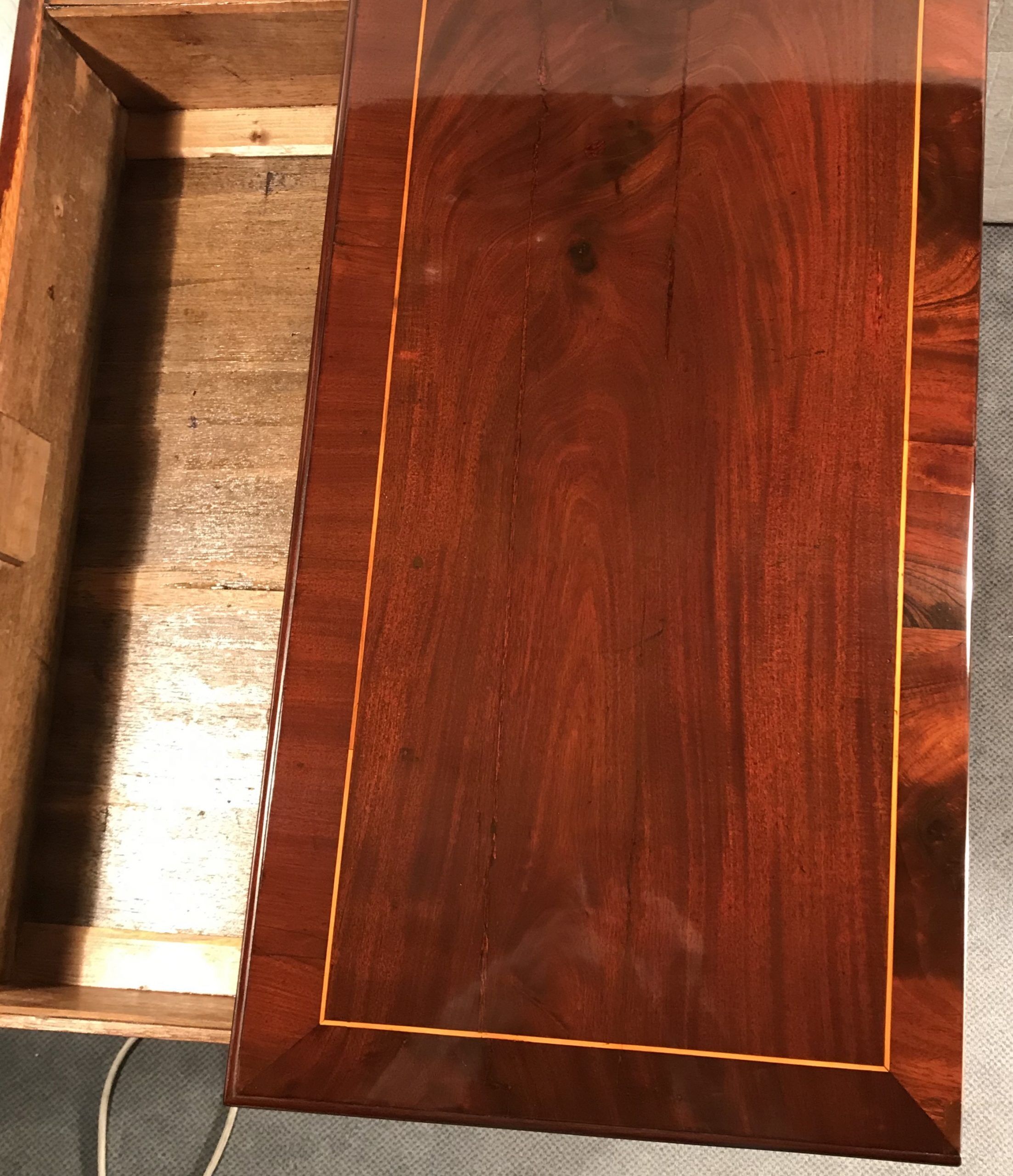 The Neoclassical furniture style features an unpretentious and elegant form language with often plain veneers, sometimes decorated with geometric inlays. Especially in Germany, the later phase at the end of the 18th century and the beginning of the 19th century moves away from pompous decorations to a more humble and modern design, which eventually leads to the Biedermeier style.