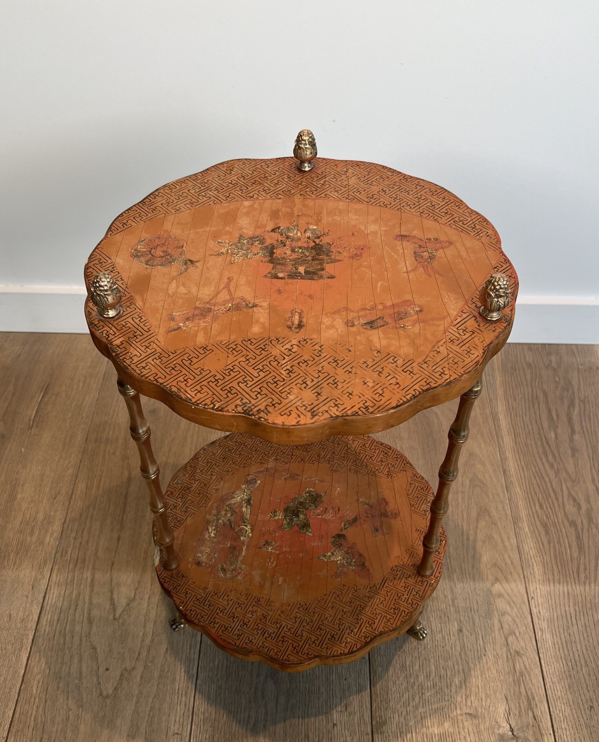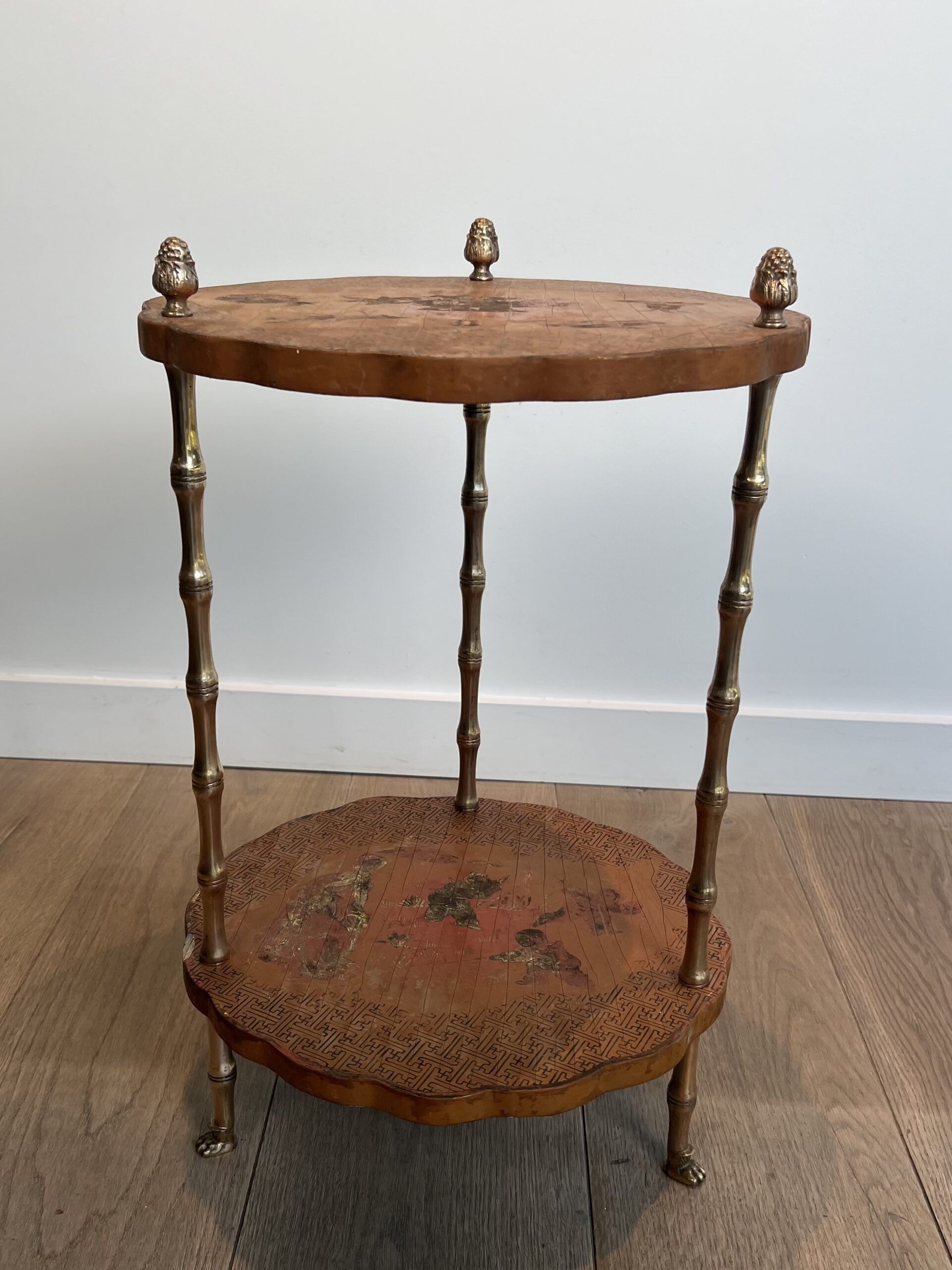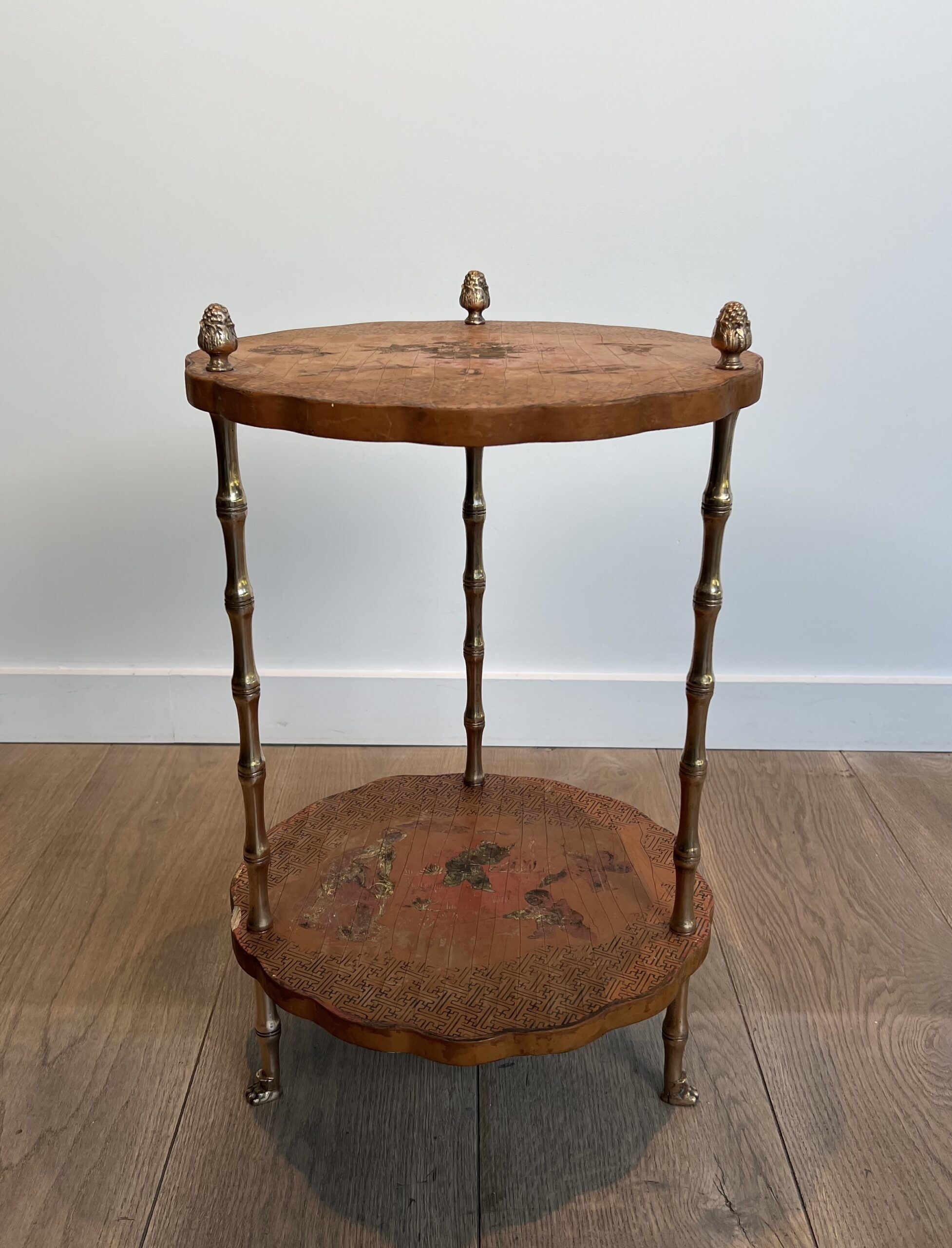 Neoclassical Style Faux-Bamboo Bronze and Lacquered Gueridon by Maison Baguès