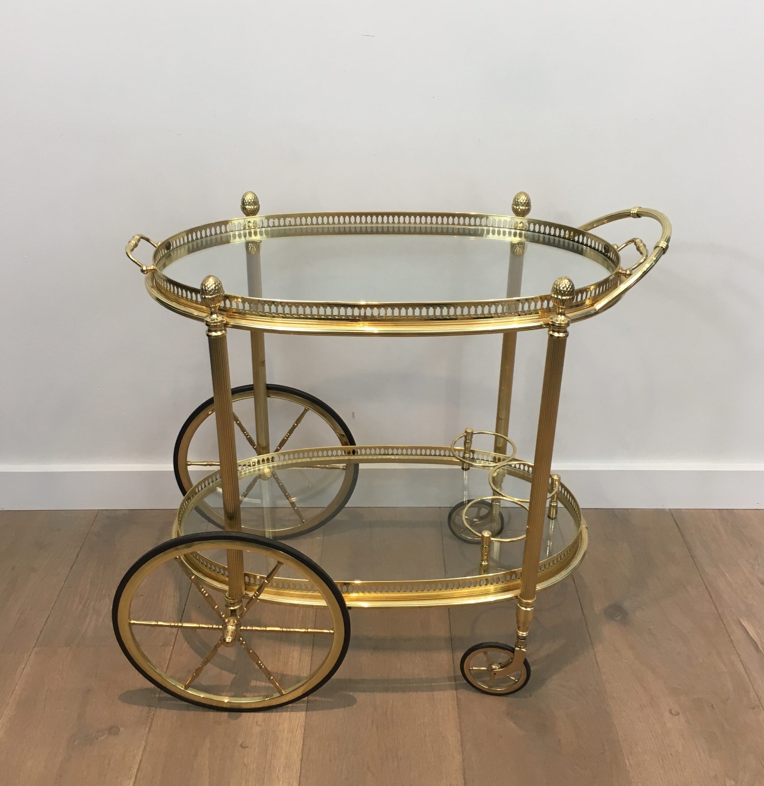Neoclassical Style Oval Brass Drinks Trolley with Removable Trays by Maison Bagués