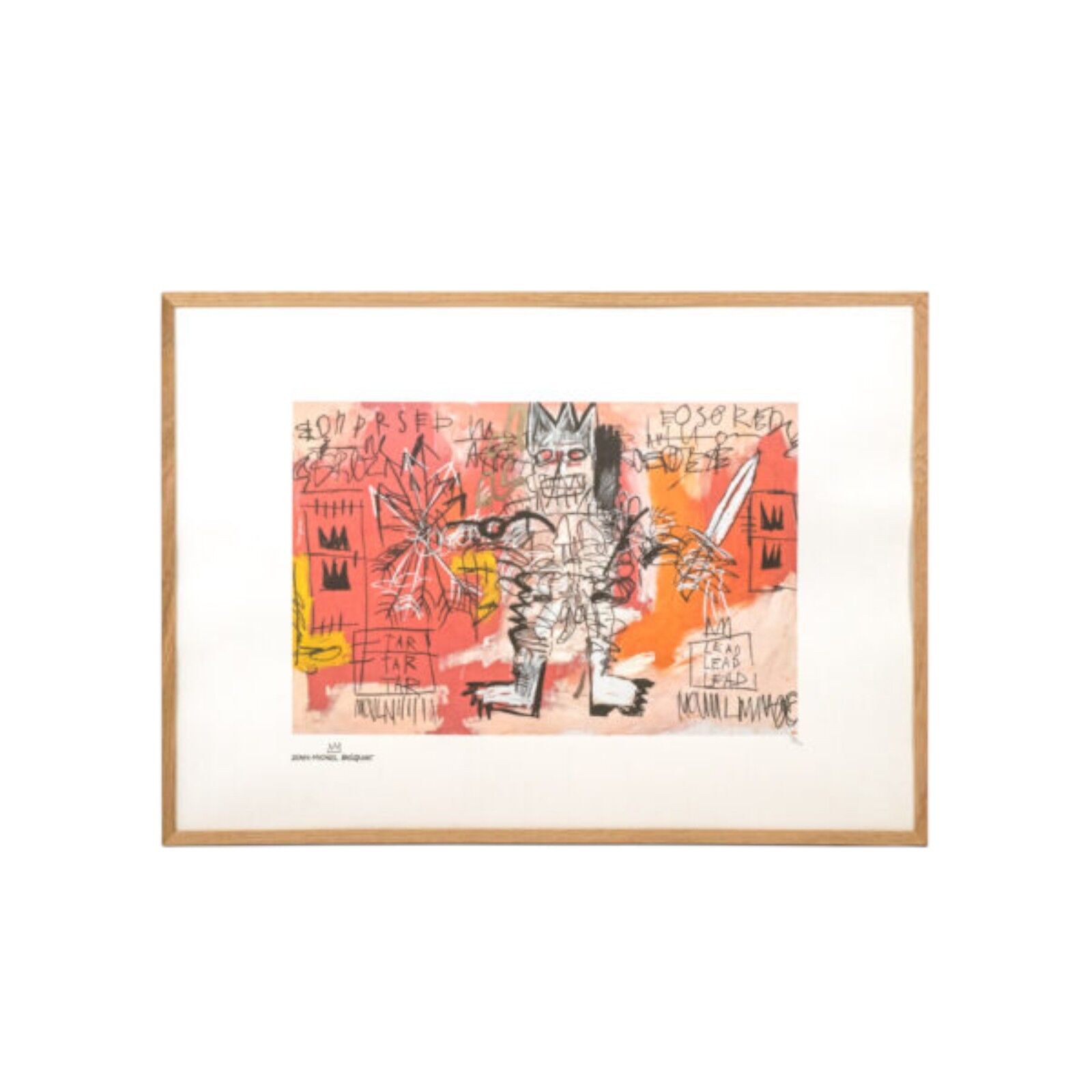 Own a rare Numbered Basquiat Silkscreen Print, marked 52/100. This vibrant color silkscreen comes framed in light oak.