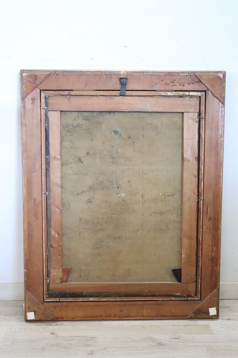 A carved and gilded wooden frame enhances the artwork’s elegance and decorative impact.