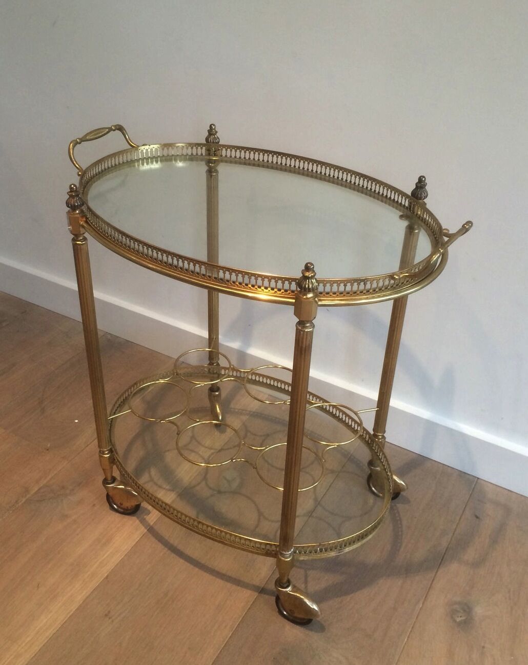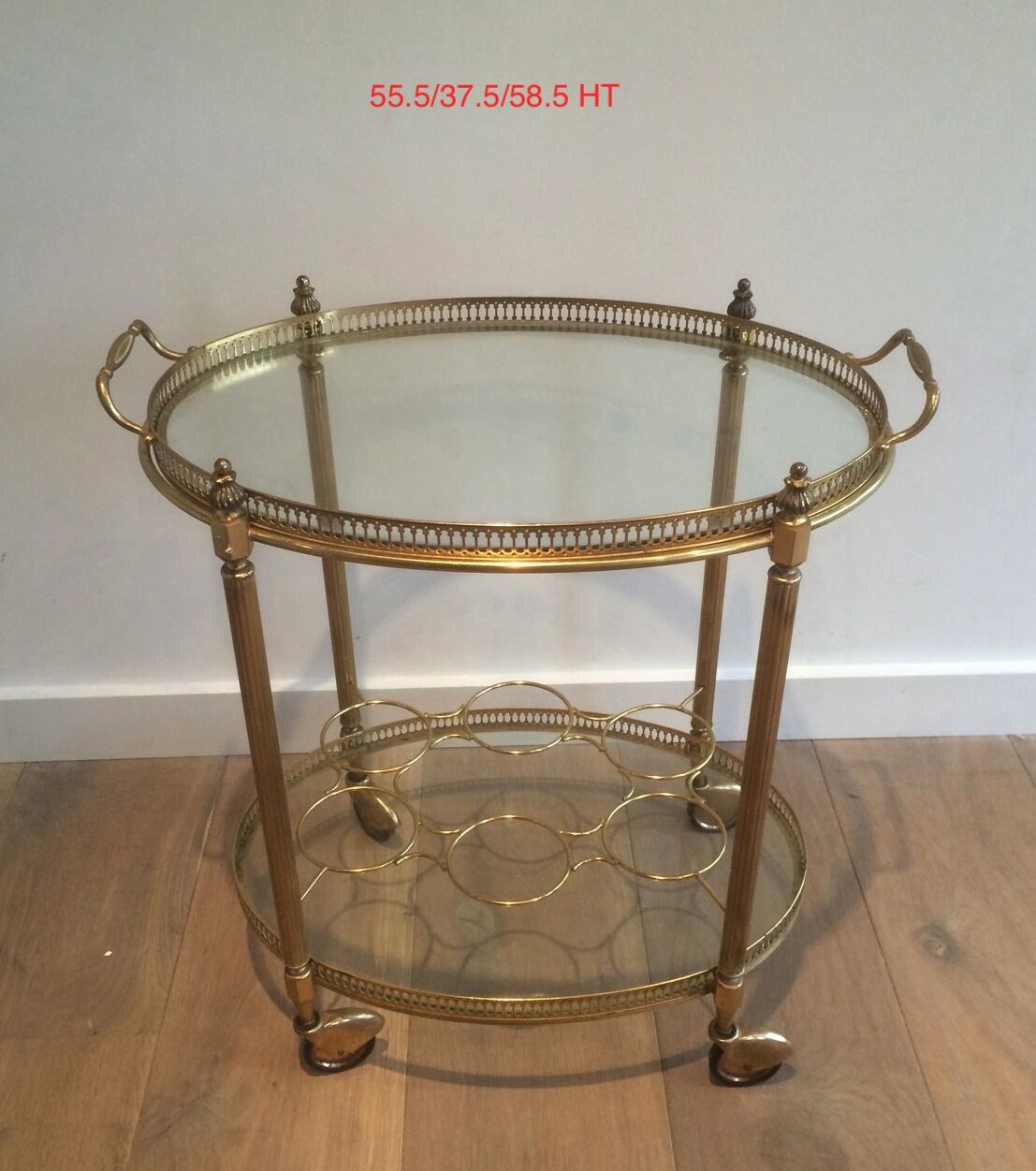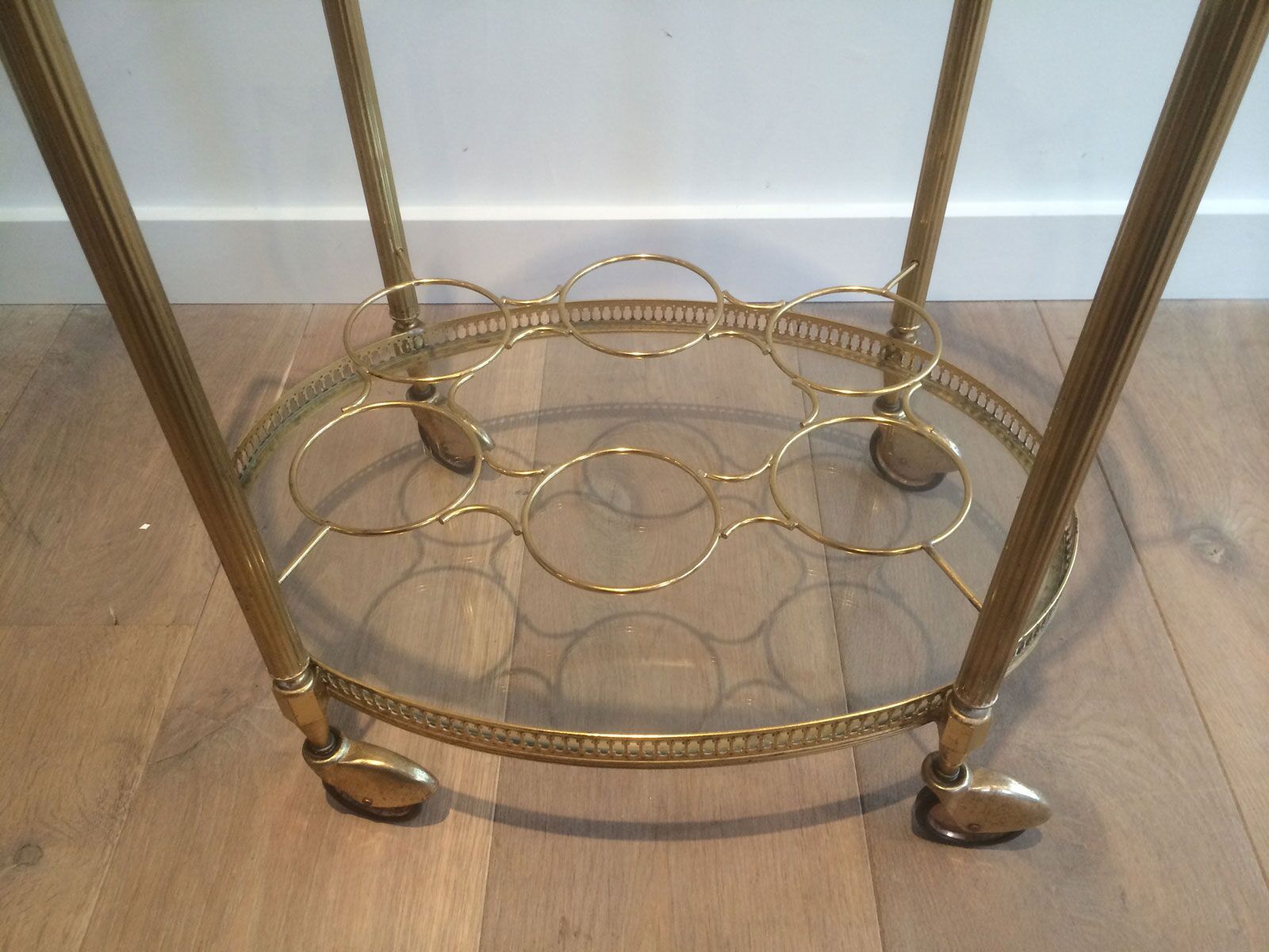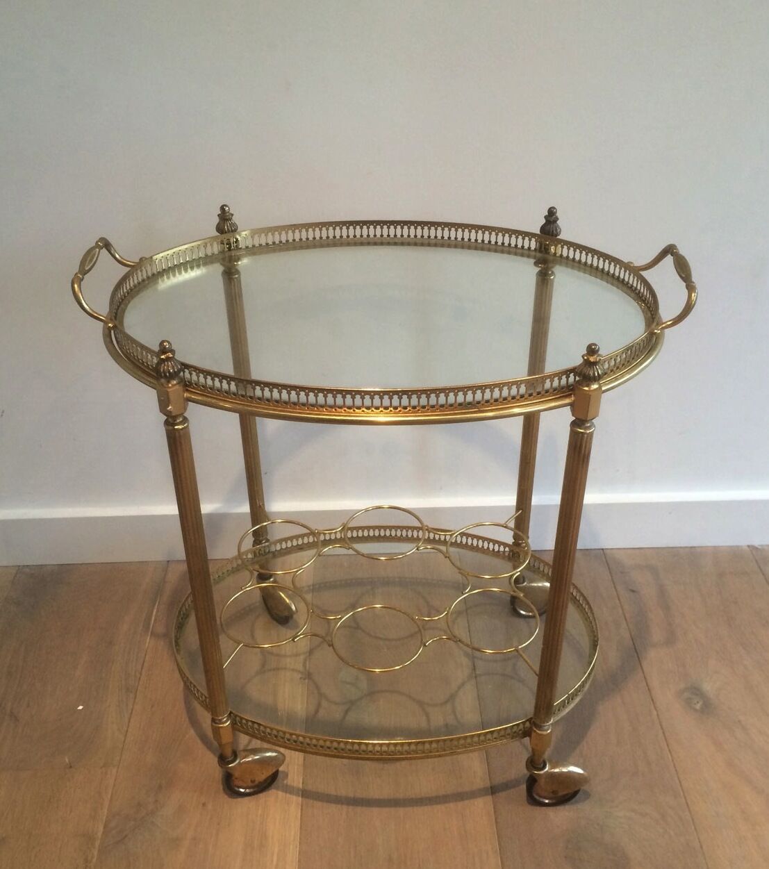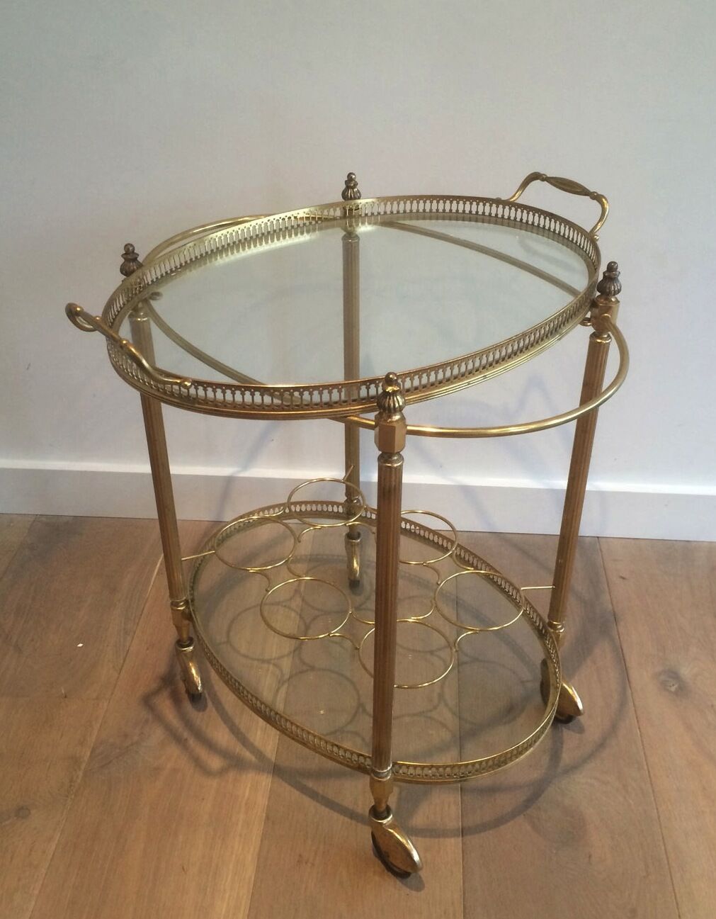 Oval Brass Drinks Trolley with Removable Top Tray and Bottles Holder, Style of Maison Jansen