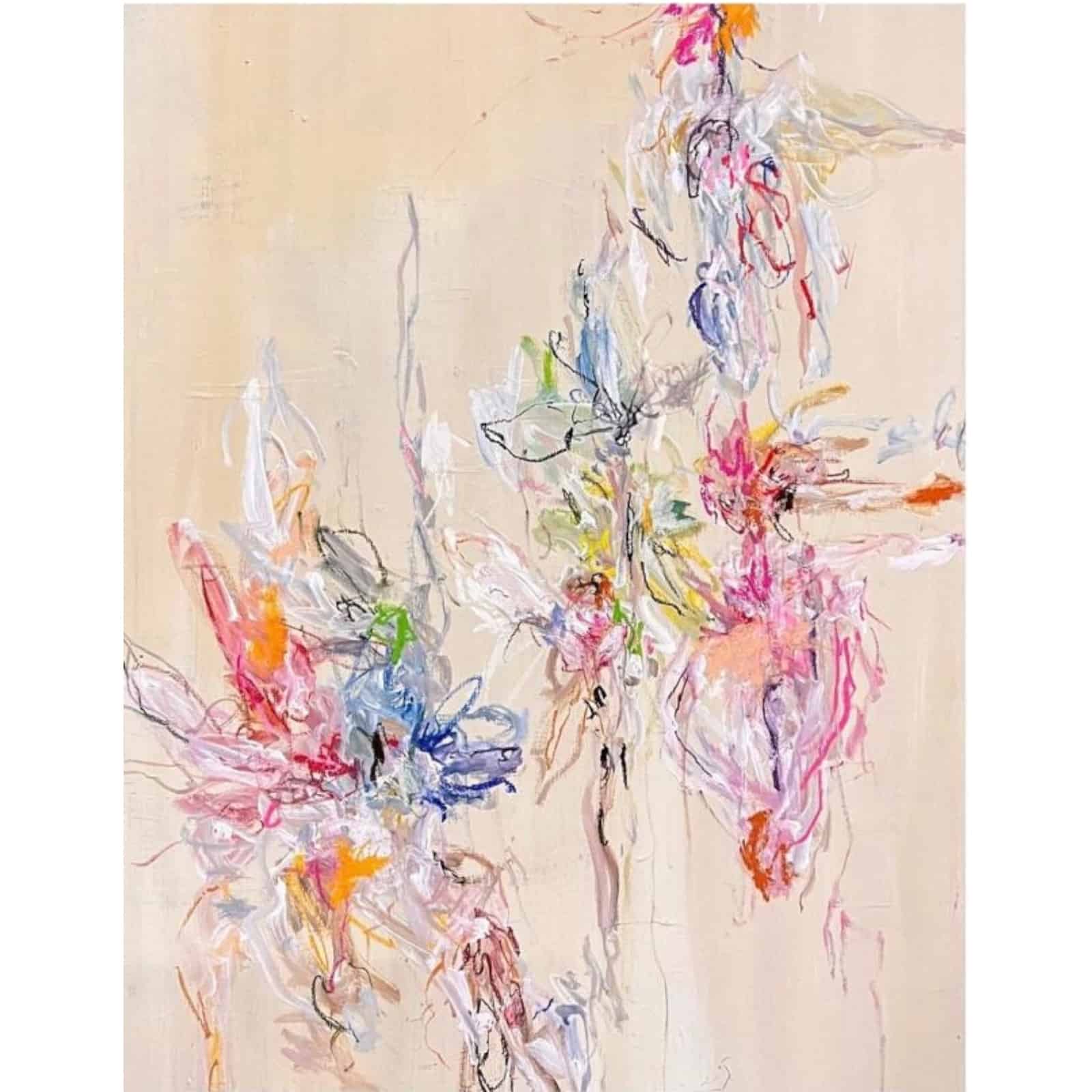Painting by Kristin Herberger Koch, “Flowers from the Secret Garden Series”, Mixed Media on canvas 48.5 x 28.5 in. (123 x 72 cm)