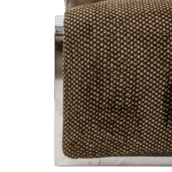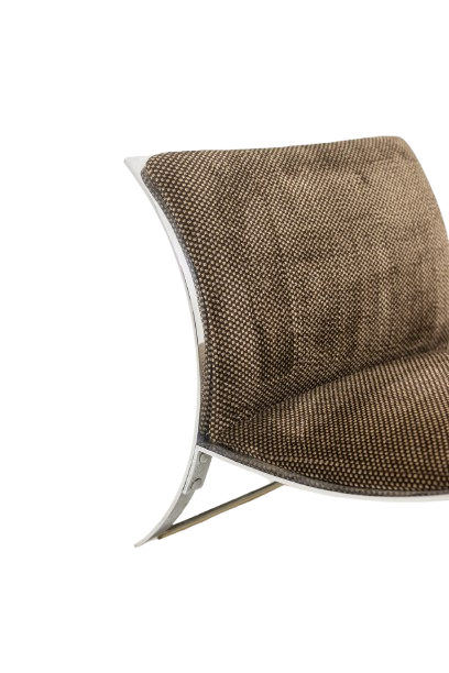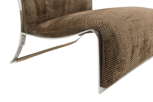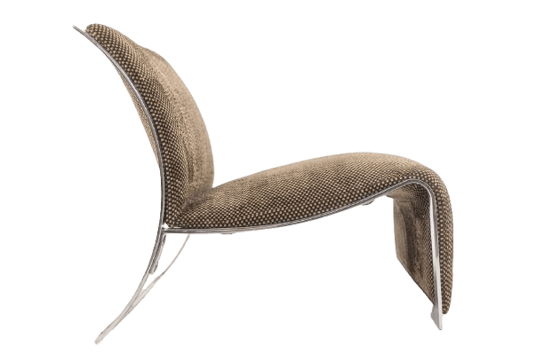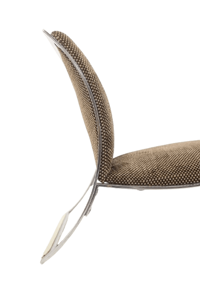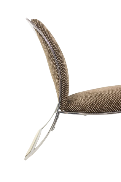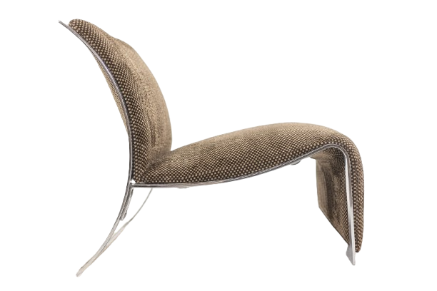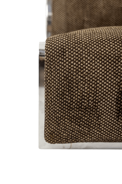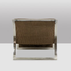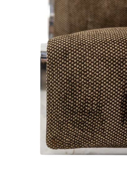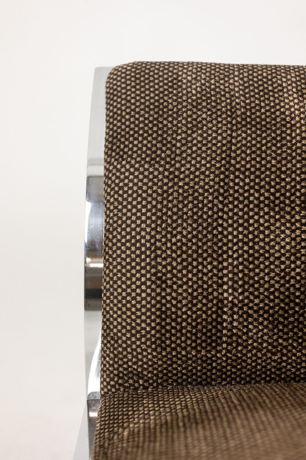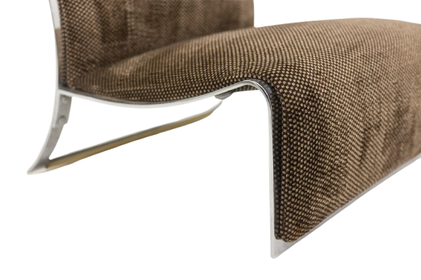 Pair of armchairs designed by Vittorio Introini for Saporiti, upholstered in fabric and supported by a chrome metal frame. The design reflects Introini’s architectural approach to seating, combining generous proportions with clean, modern lines.