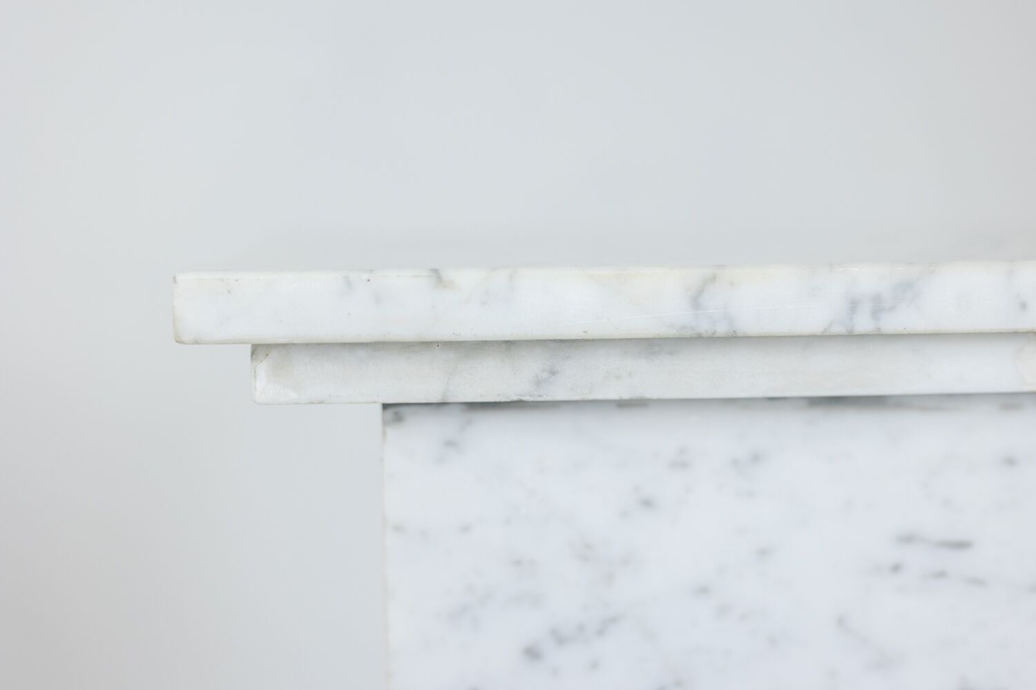 Elegant pair of Art Deco style marble columns, crafted in the 20th century from grey-veined white marble. With their sleek square cross-section and refined proportions, these decorative columns reflect the geometric balance and sophistication characteristic of the Art Deco period.