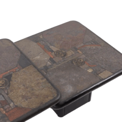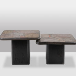 This Pair of Brutalist Tables showcases bold, sculptural surfaces in natural stone and bronze.