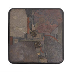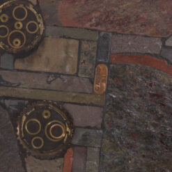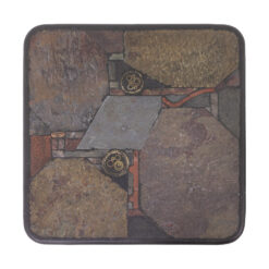 Each table displays a unique, mosaic-like composition with strong Brutalist character.