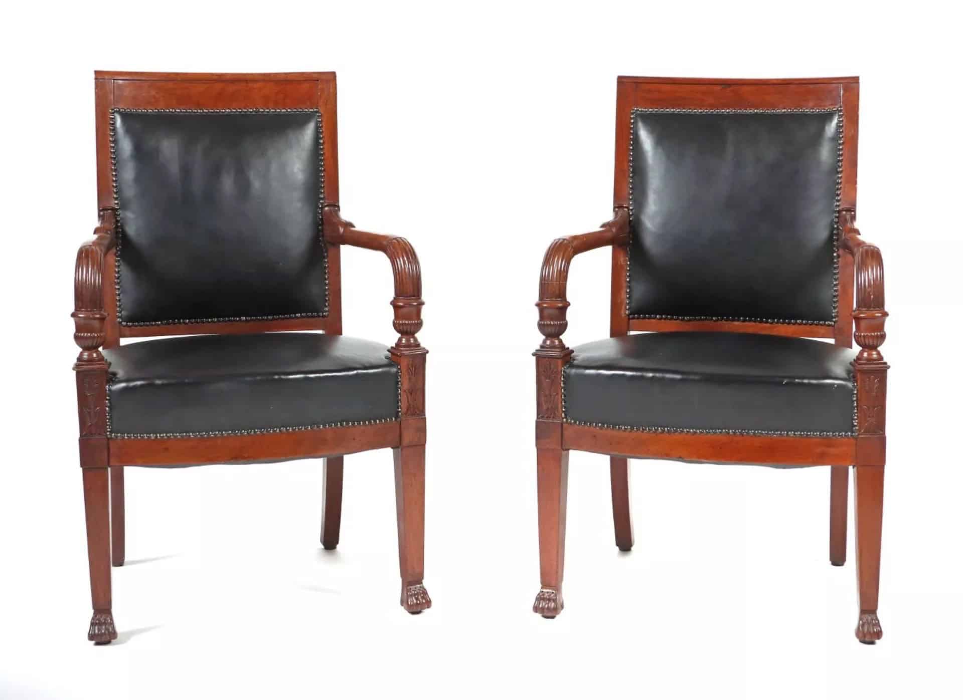 Pair of French Empire Mahogany Armchairs, circa 1800–1810