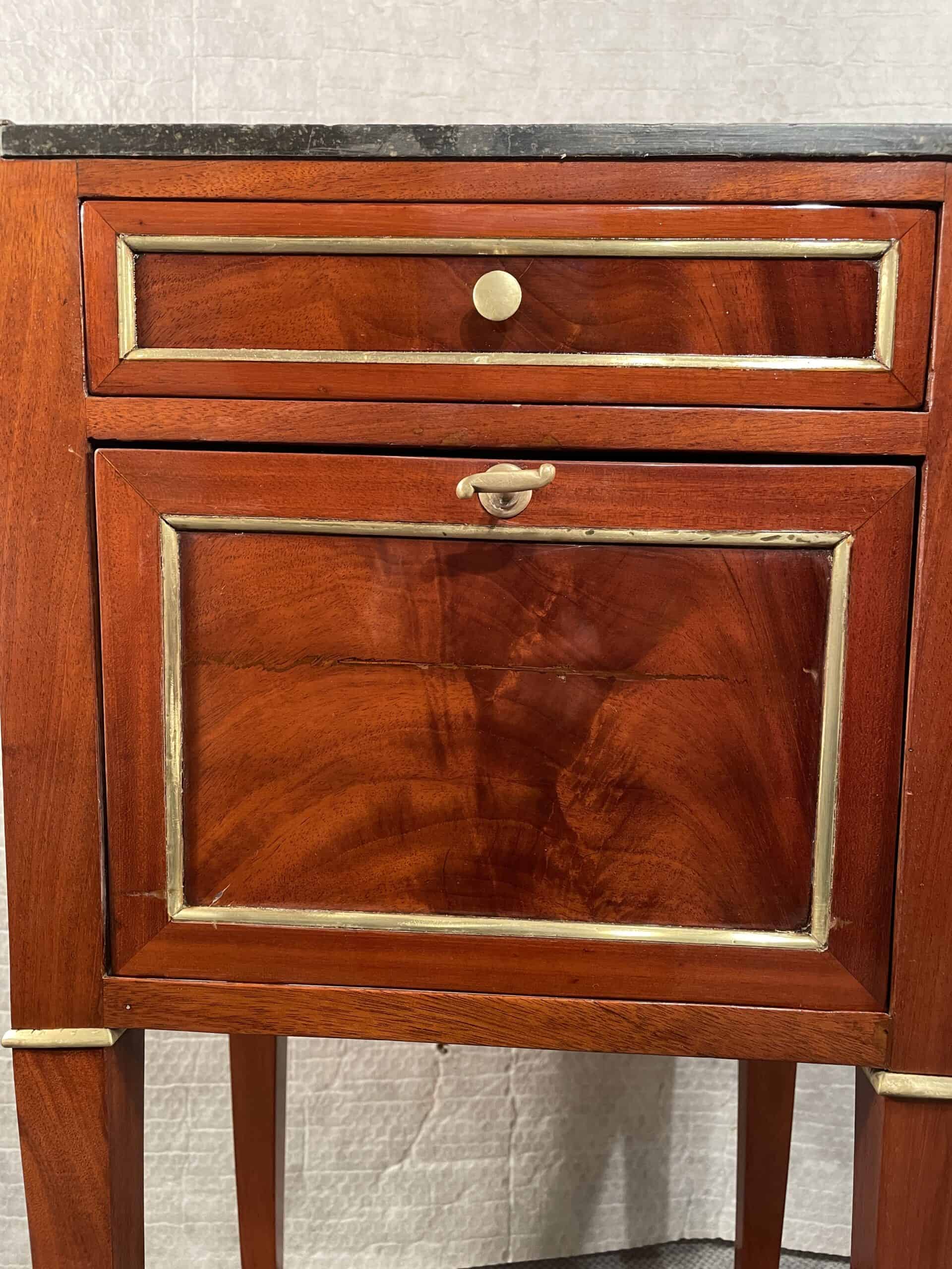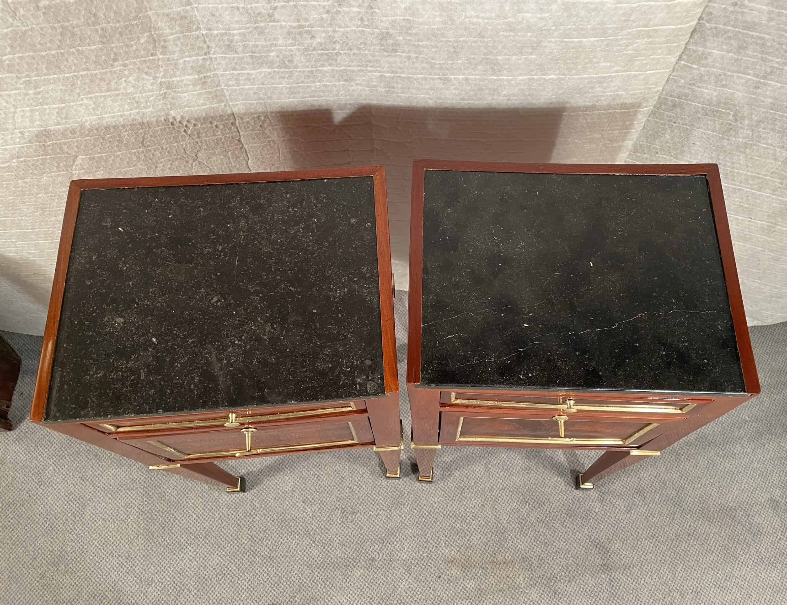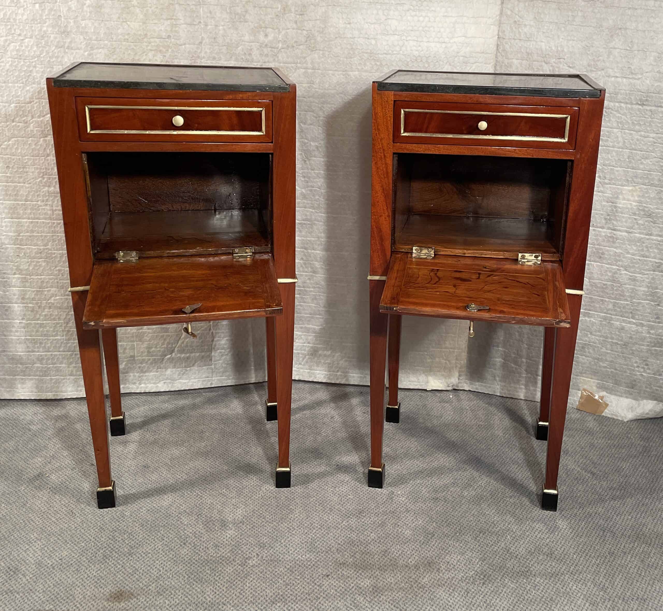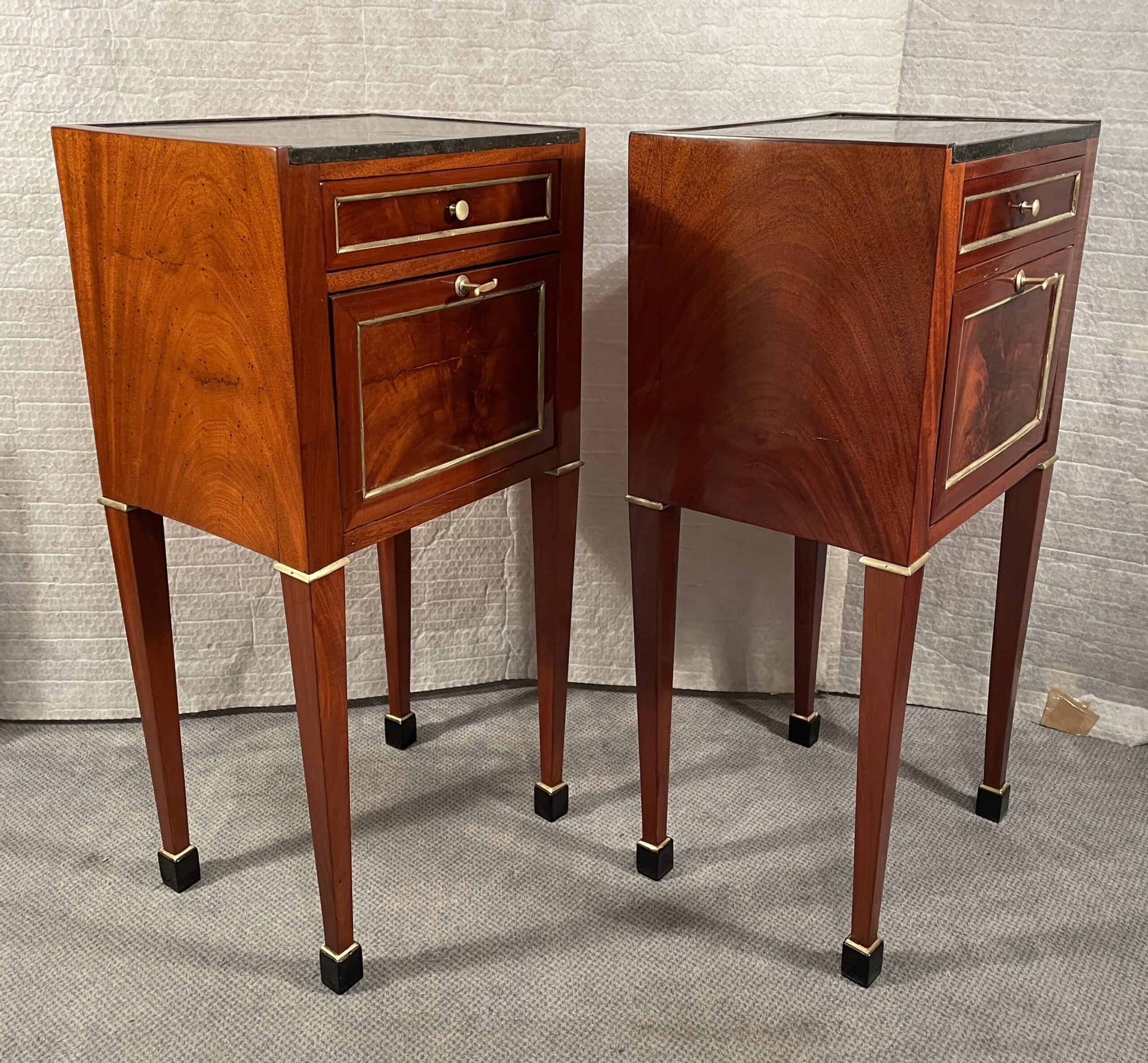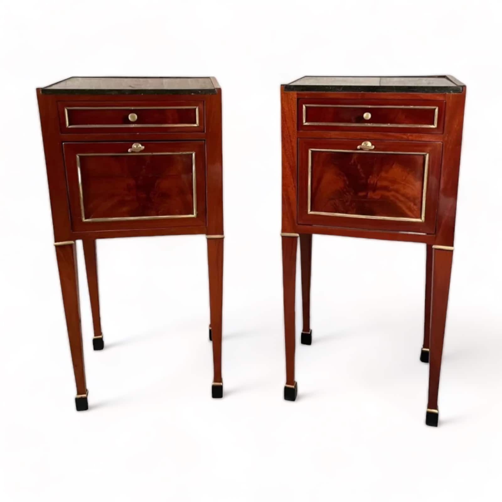 Step into a world of elegance and history with this remarkable pair of nightstands, hailing from France and dating back to the Directoire period 1780-1800.
