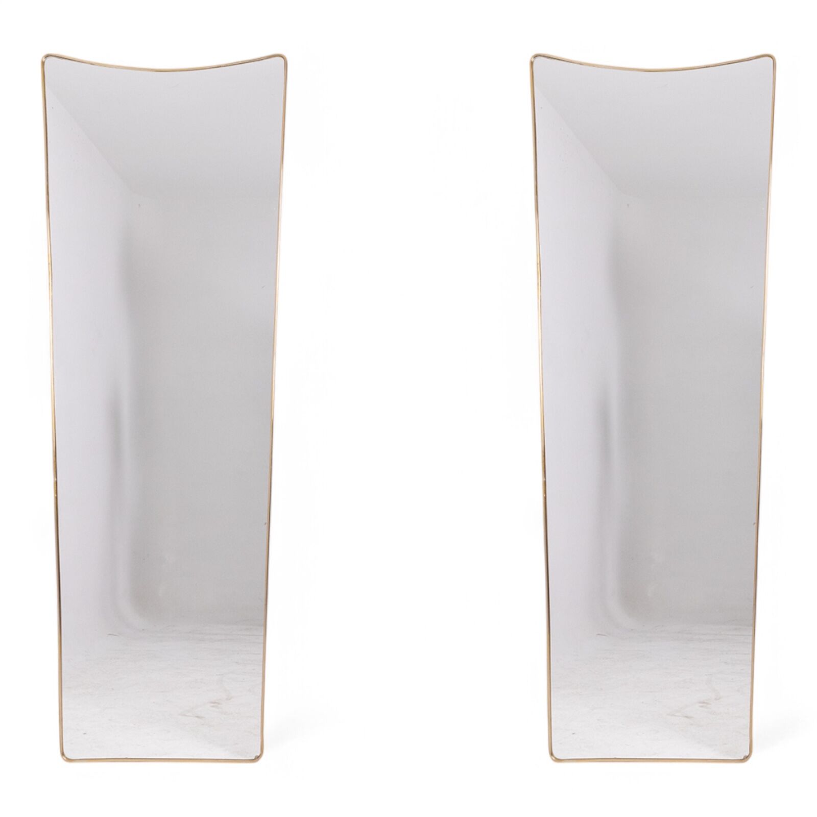 Pair of Narrow Gilded Brass Mirrors Gio Ponti, Circa 1970