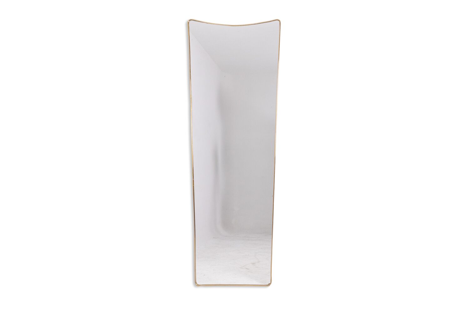 This pair of narrow gilded brass mirrors, inspired by the style of Gio Ponti, brings a refined Italian touch to any interior. Crafted in Italy during the 1970s, these large, elegant mirrors feature a sleek, gilded brass frame that enhances the design’s timeless appeal. Their narrow profile makes them perfect for narrow spaces, hallways, or as statement pieces in larger rooms.