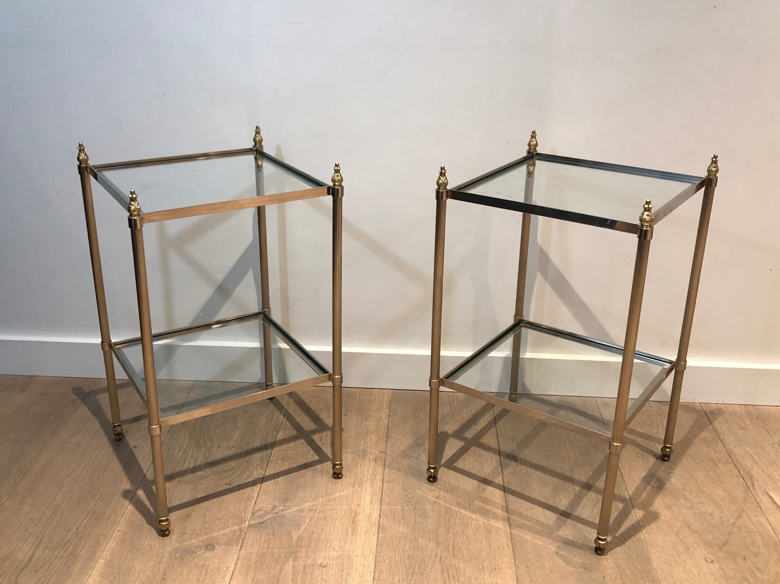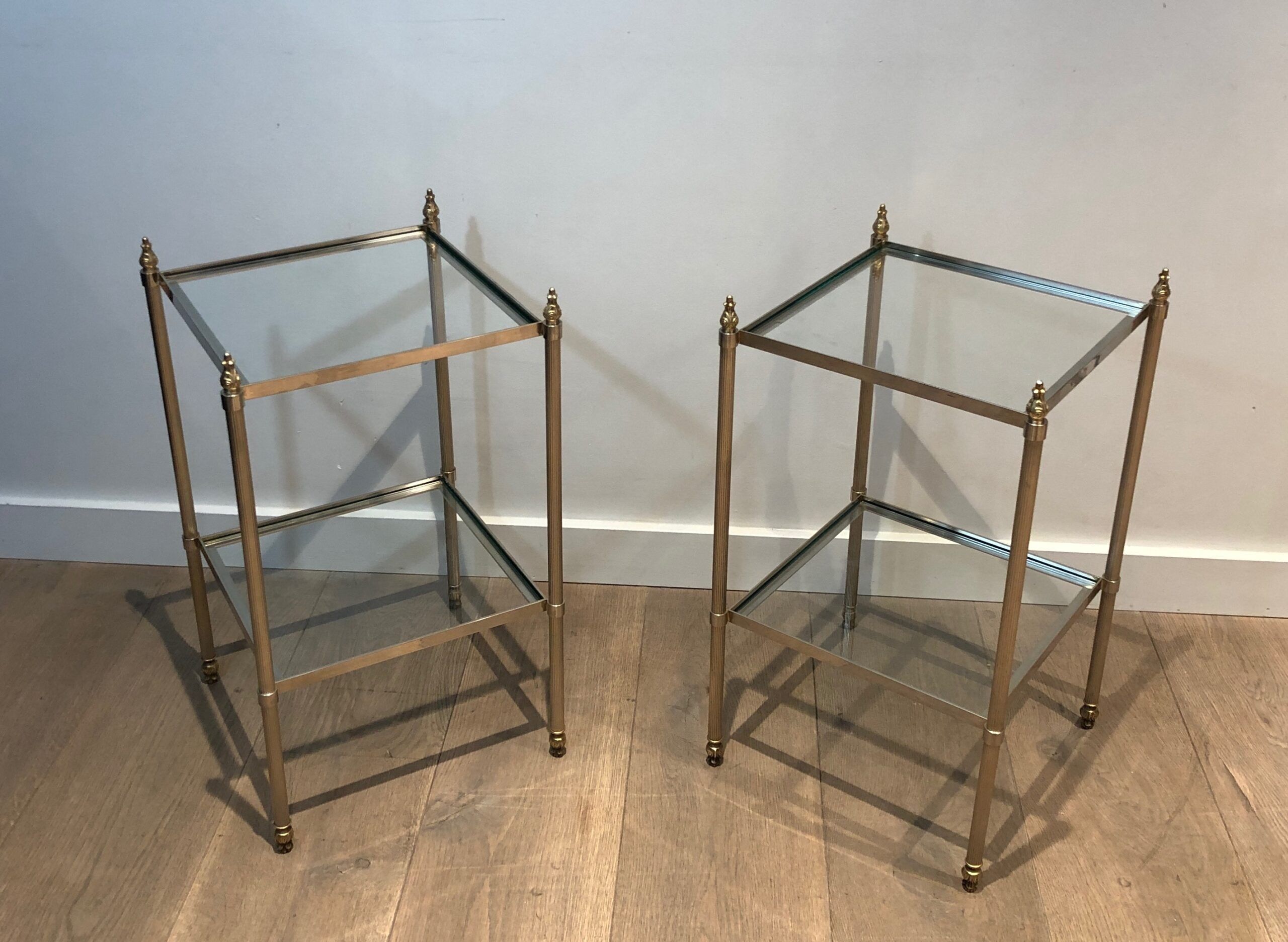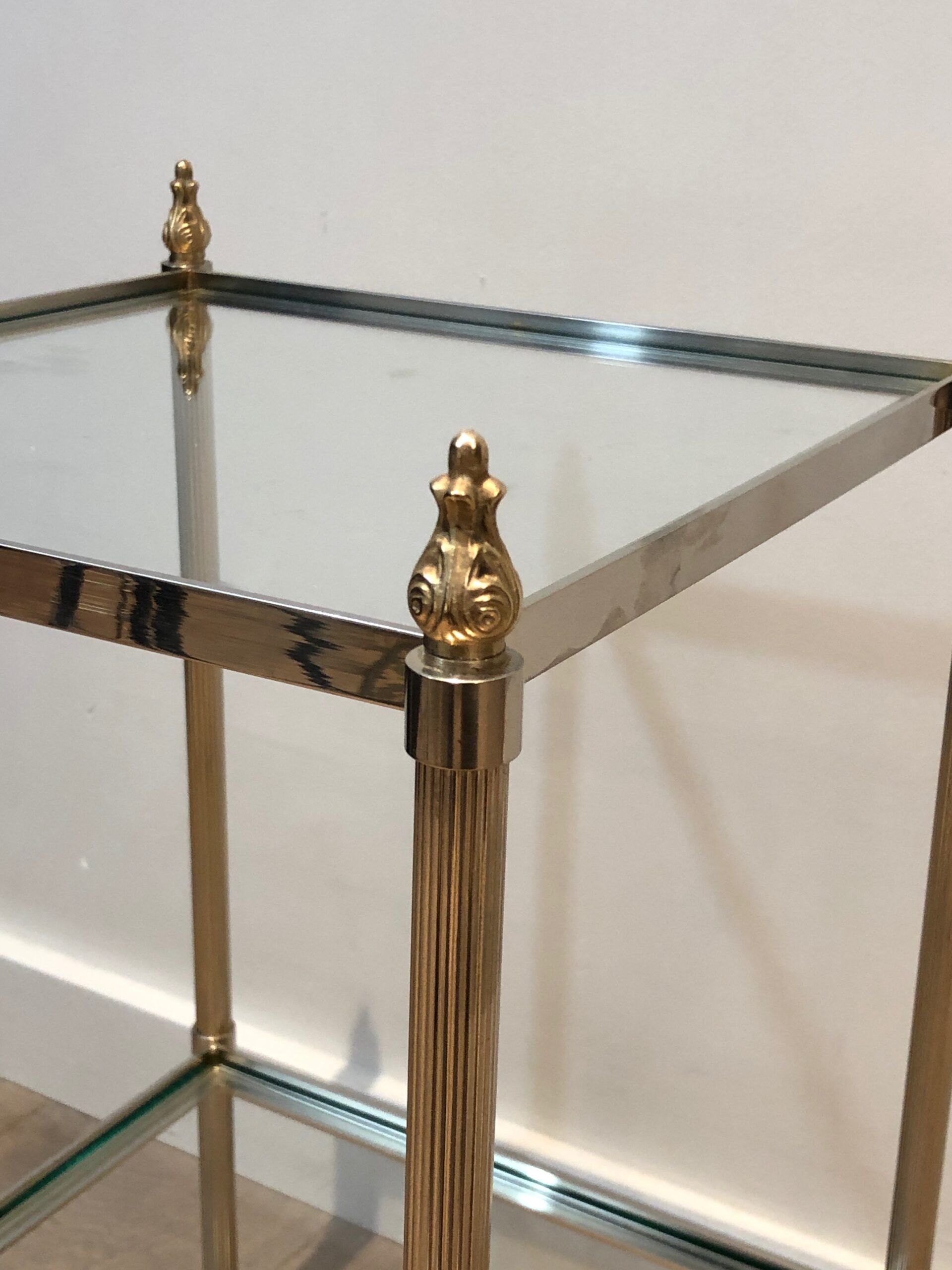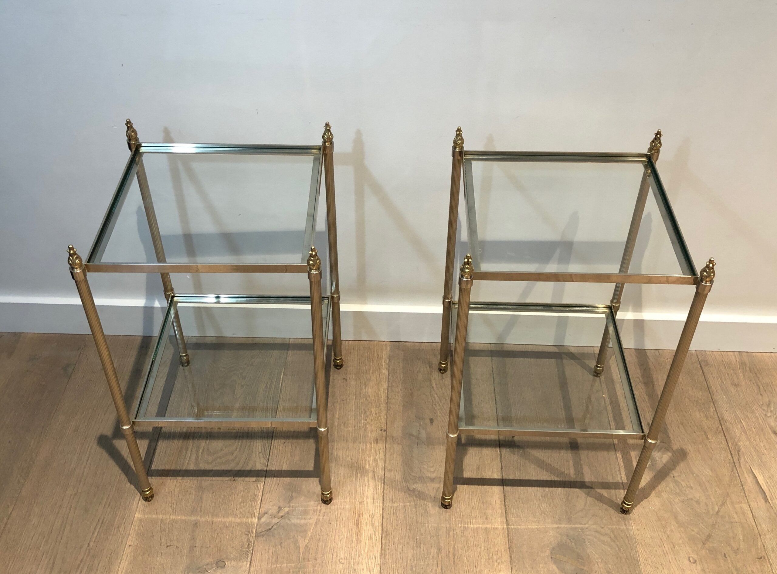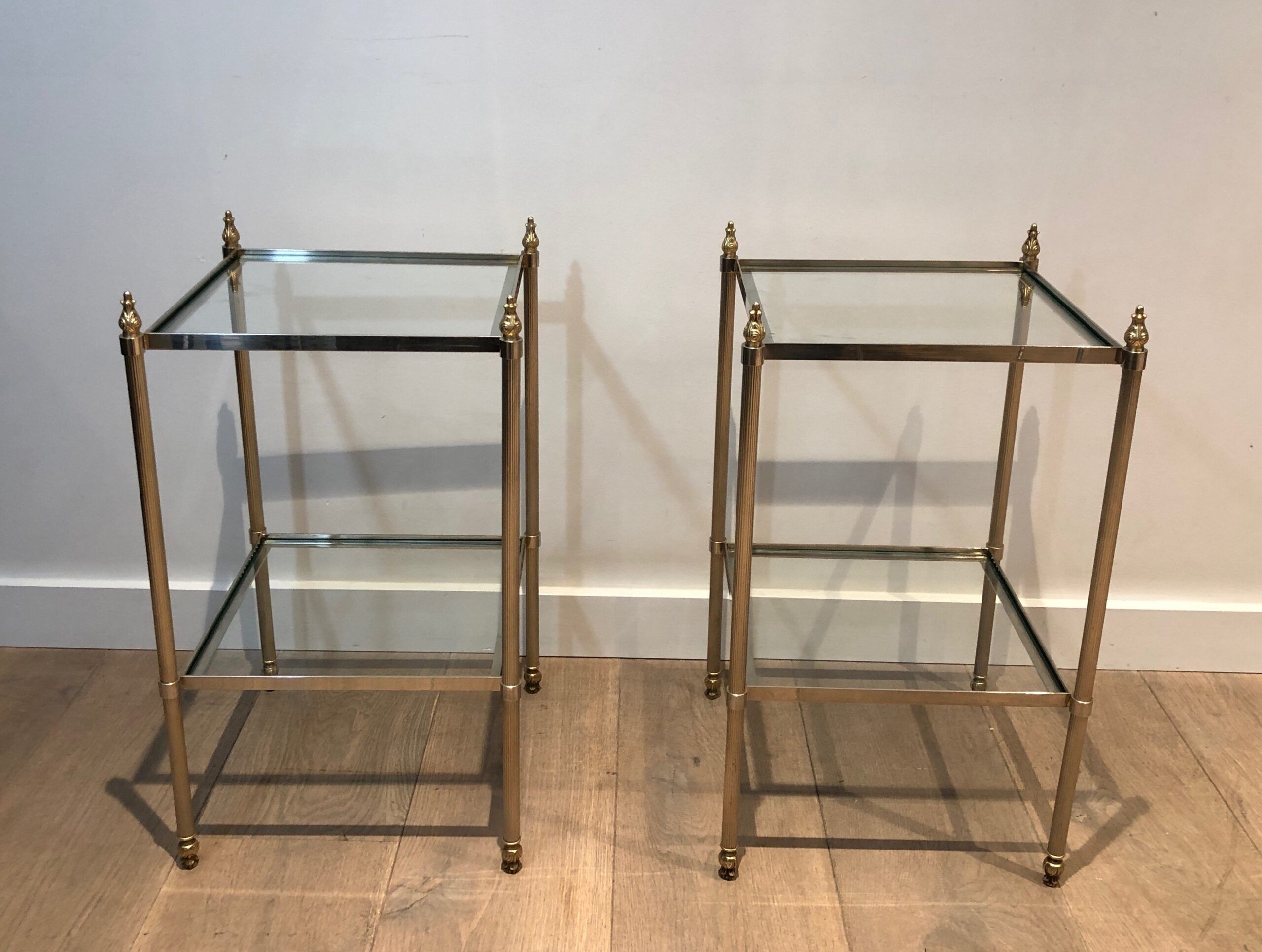 Pair of Silver Plated and Brass Side Tables Attributed to Maison Jansen