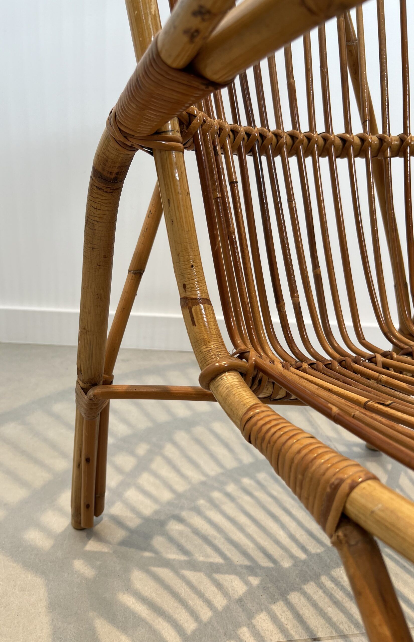 Lightweight yet sturdy, their organic texture and sculptural silhouette make them a standout addition to any interior. Whether placed in a living room, sunroom, or covered patio, these French rattan armchairs offer both style and relaxation in equal measure.
