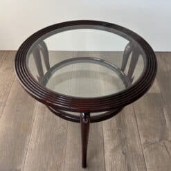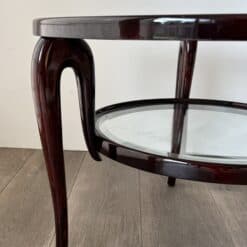 The balanced proportions and understated decorative details reflect Buffa’s distinctive approach — a sophisticated blend of Italian modernism and neoclassical influence. The two-tier structure enhances both functionality and visual depth, while the glass tops contrast beautifully with the warmth of the walnut.