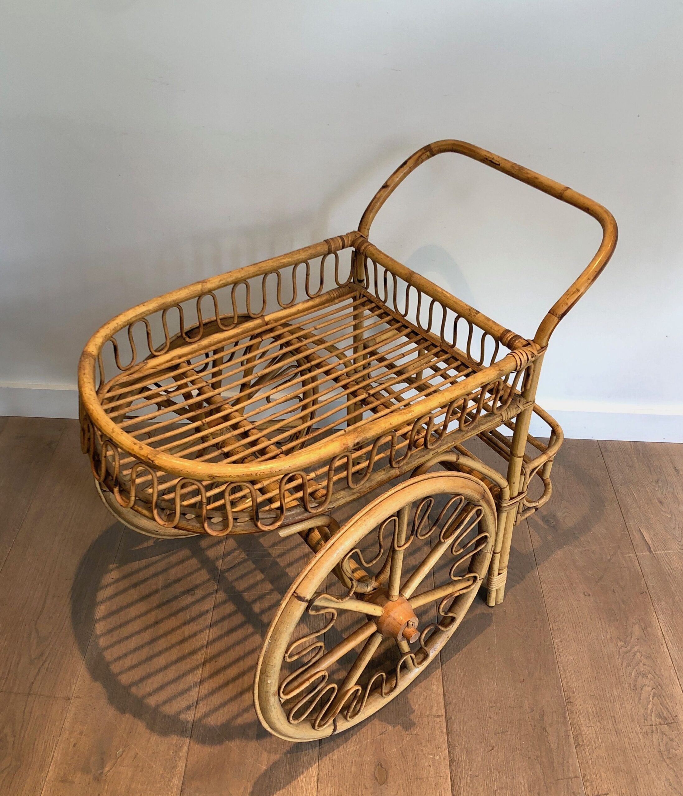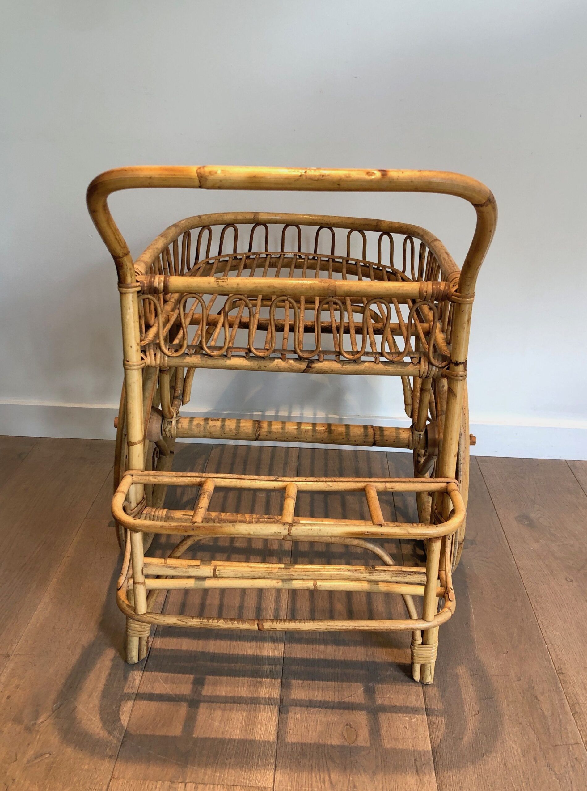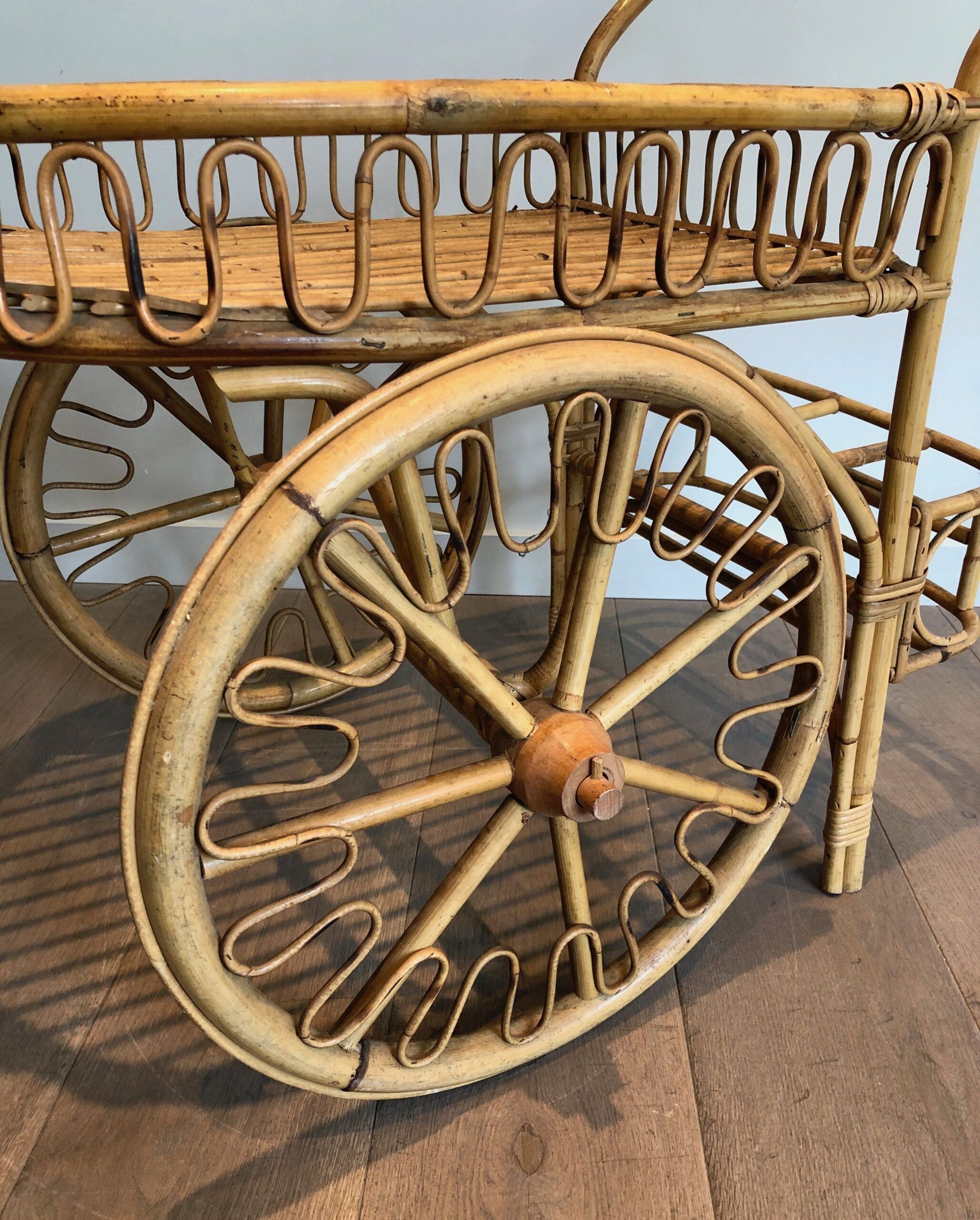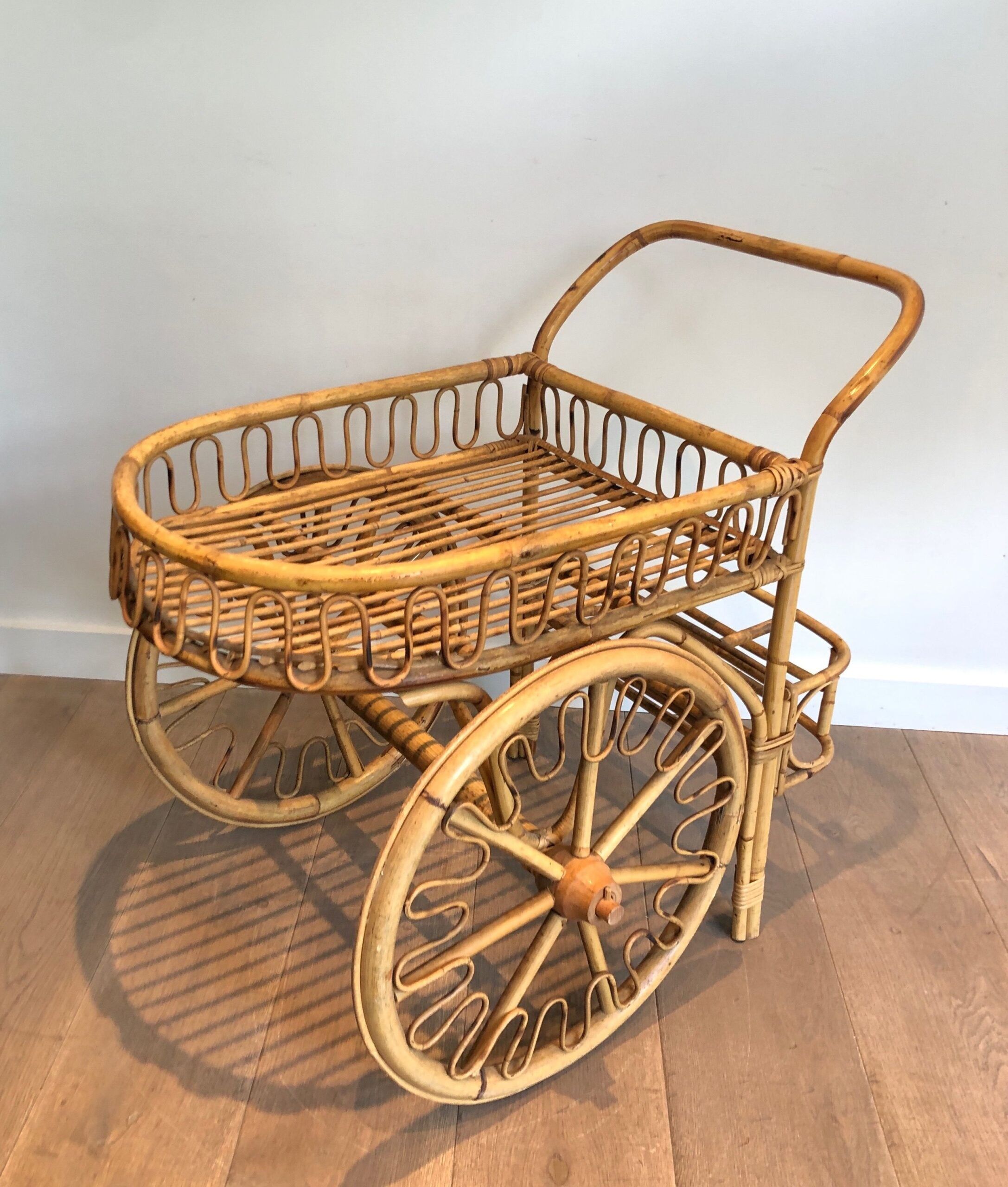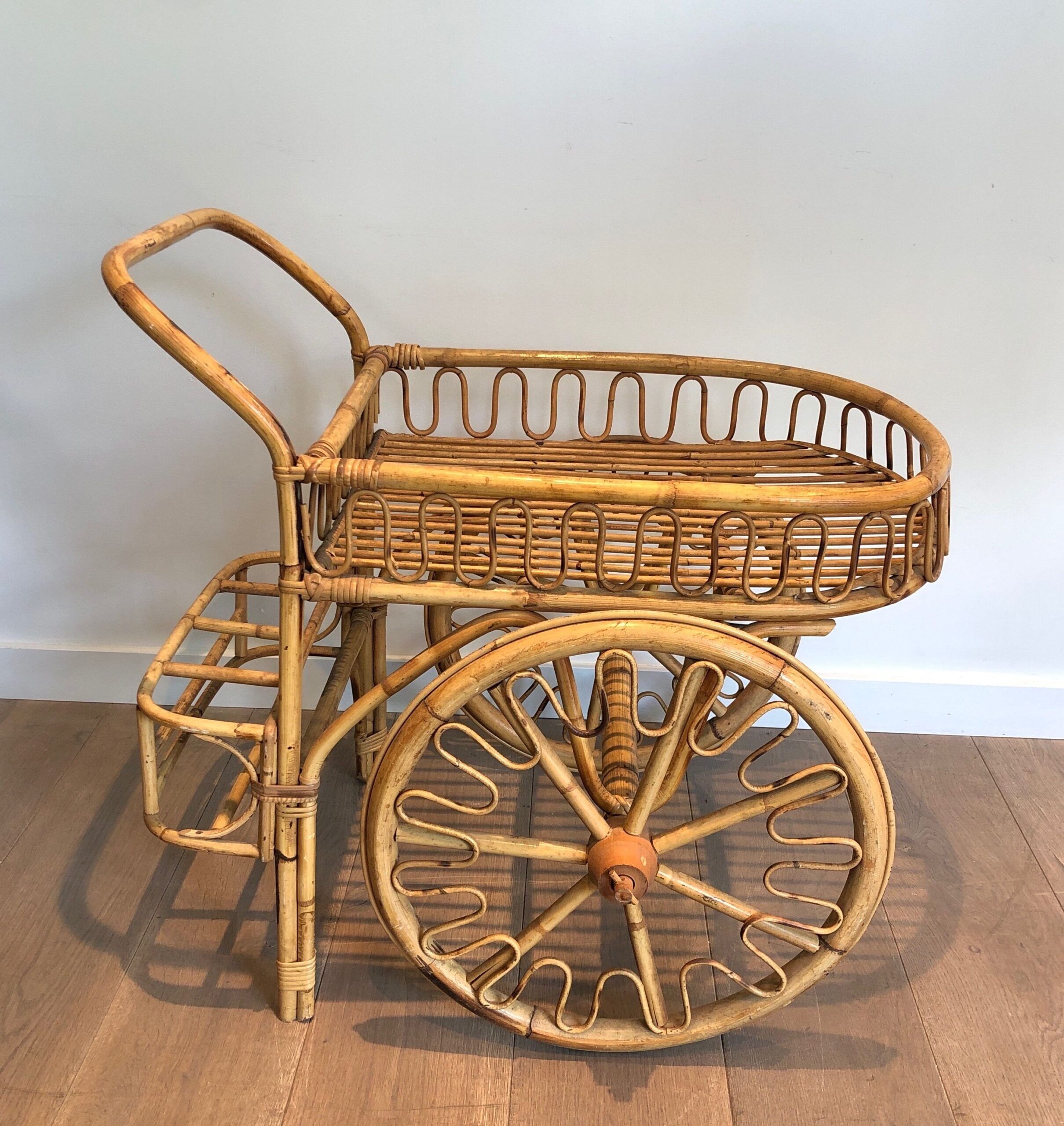Rattan Drinks Trolley, French Work Attributed to Audoux Minet