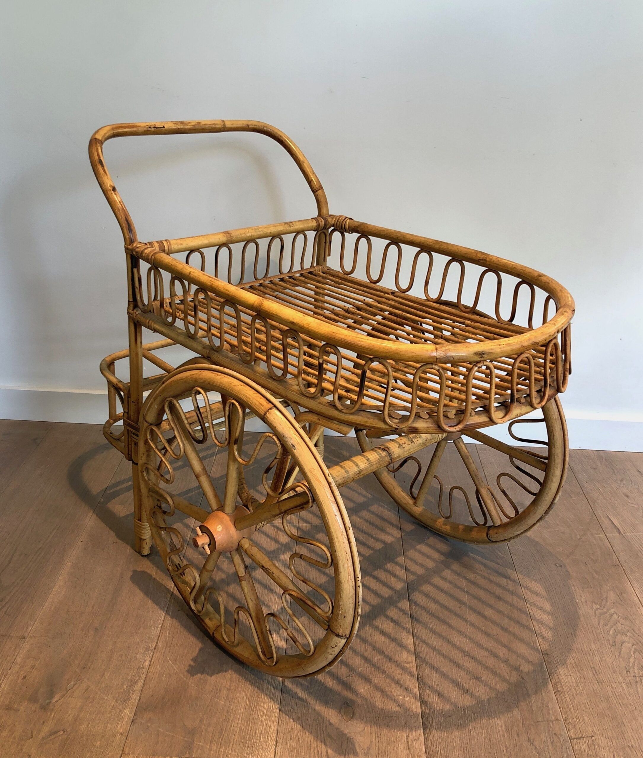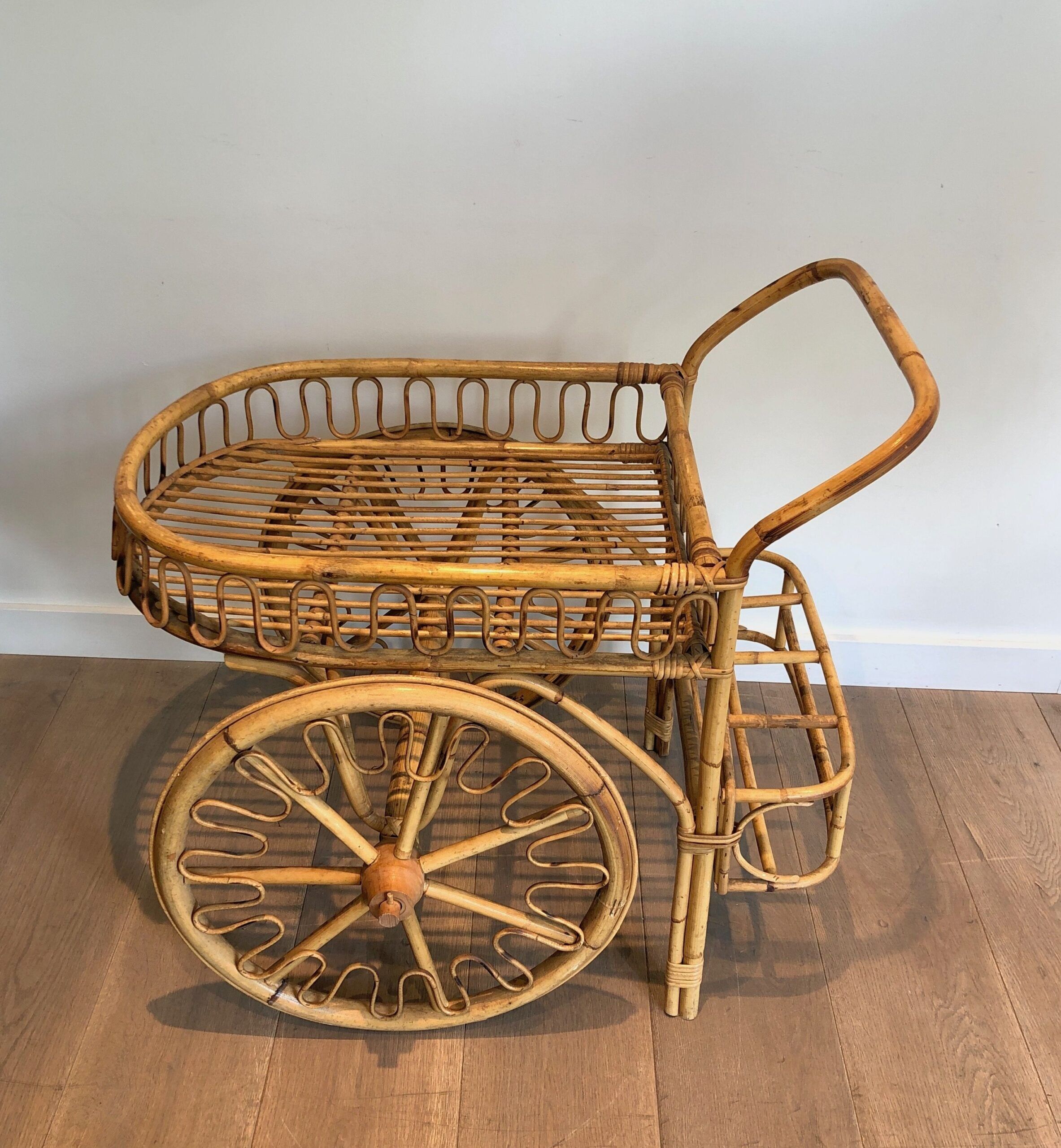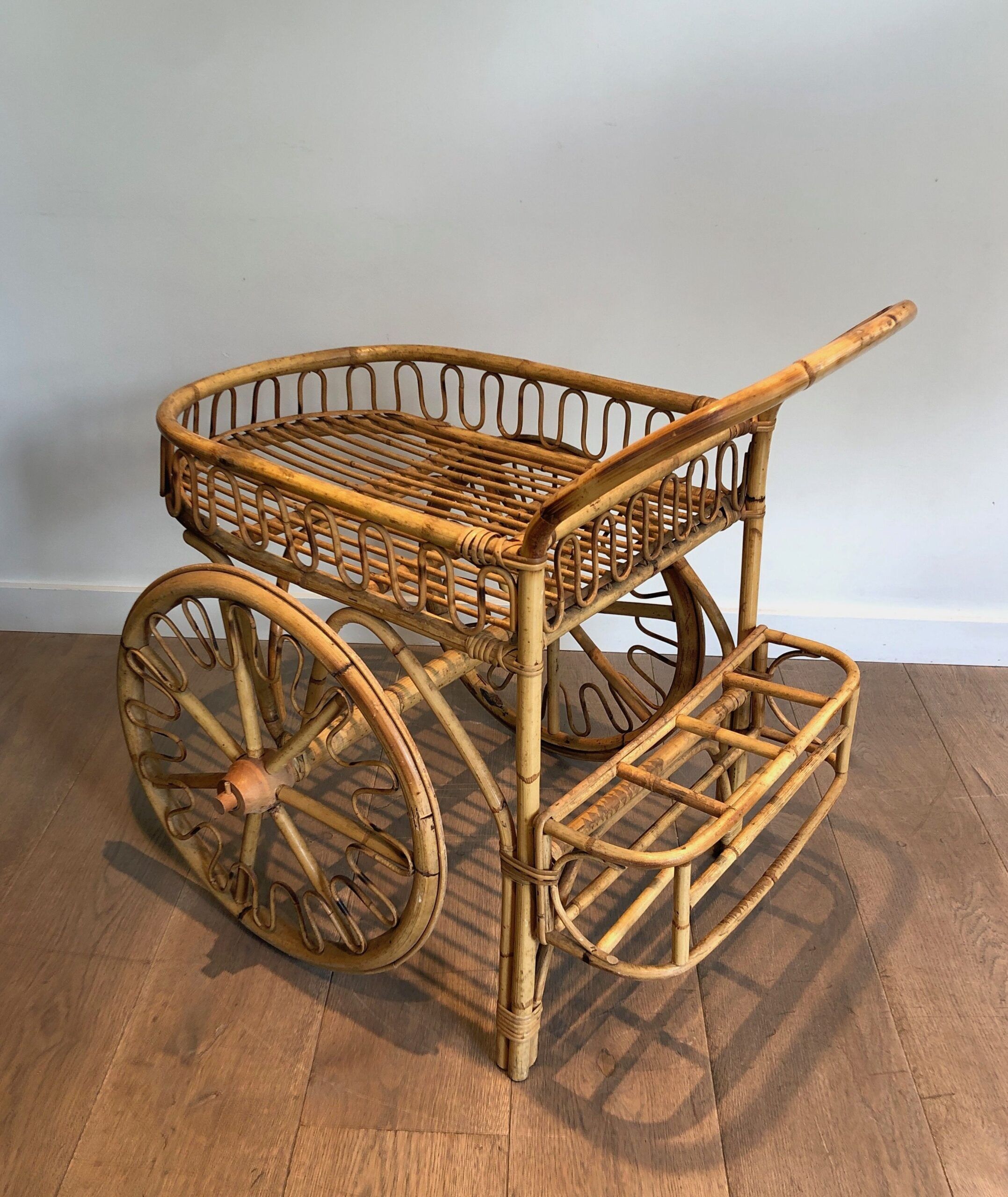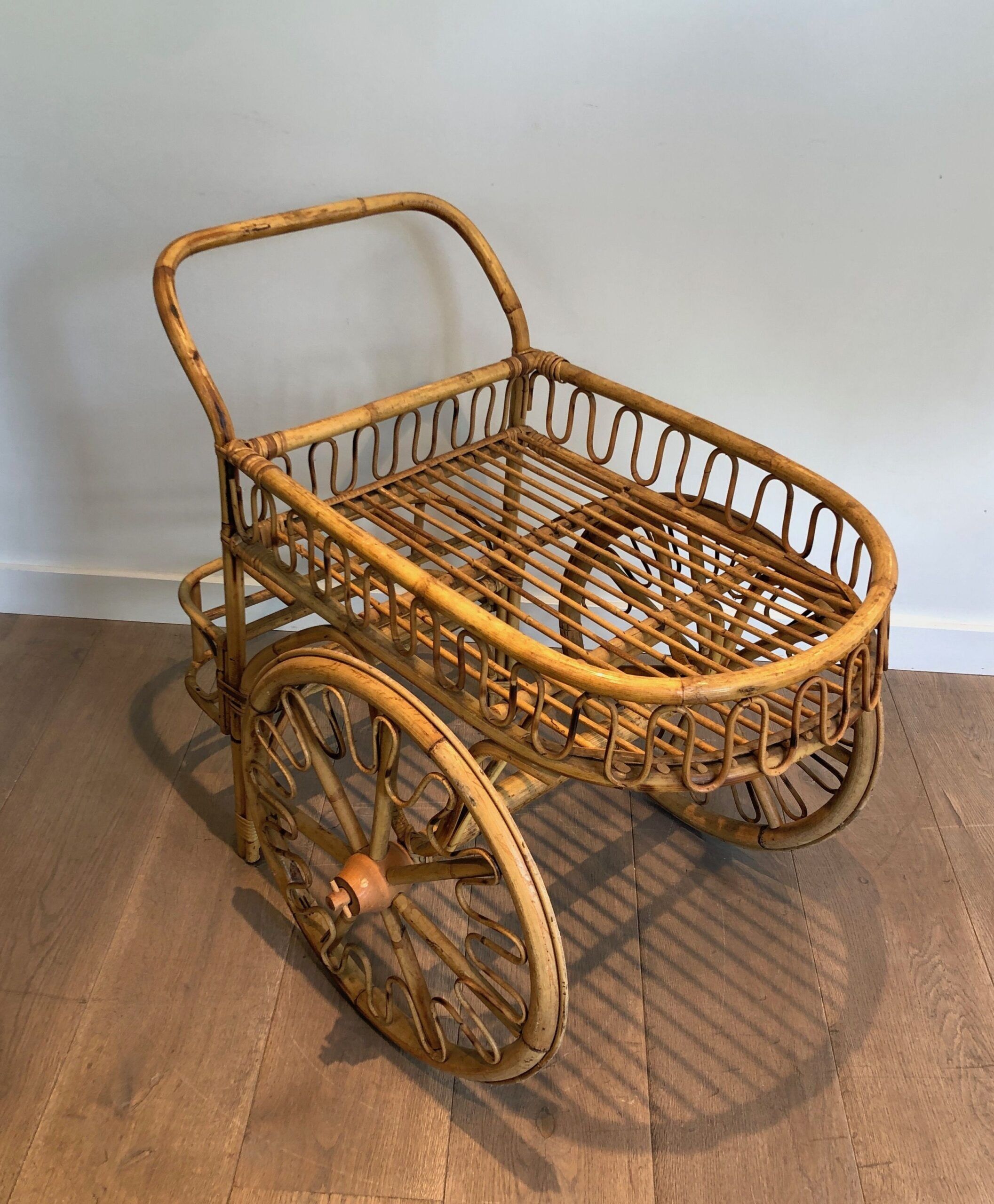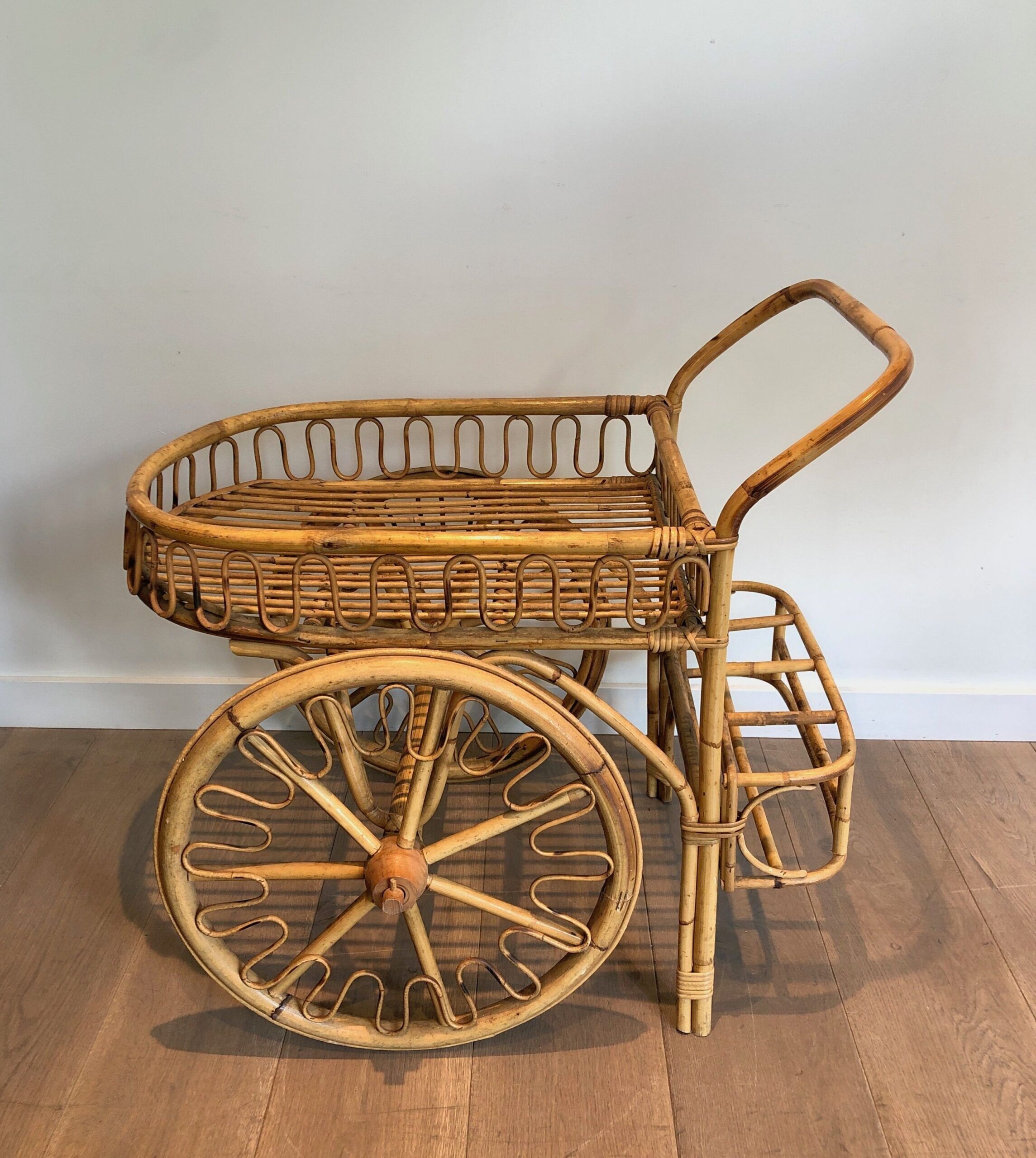 Rattan Drinks Trolley, French Work Attributed to Audoux Minet