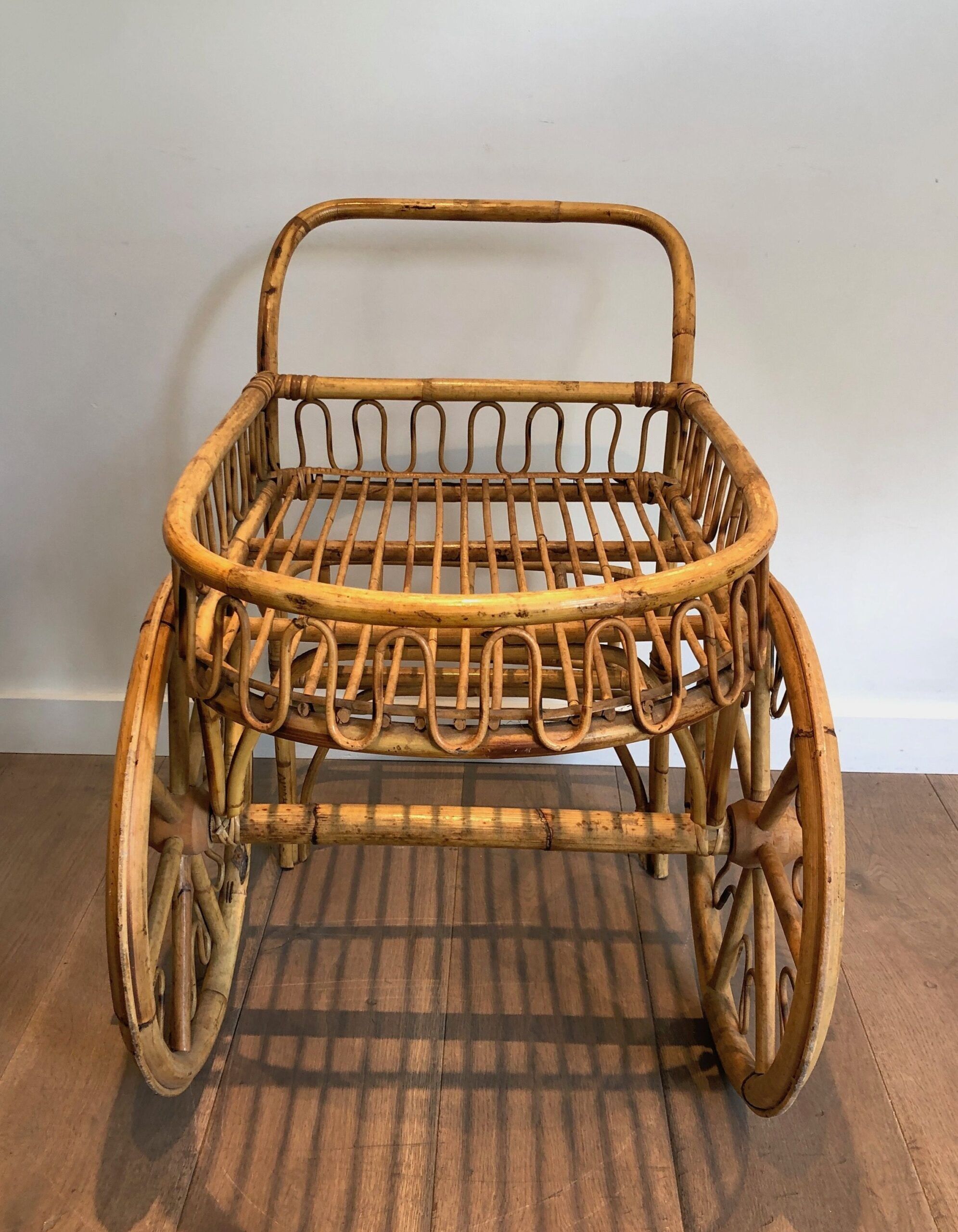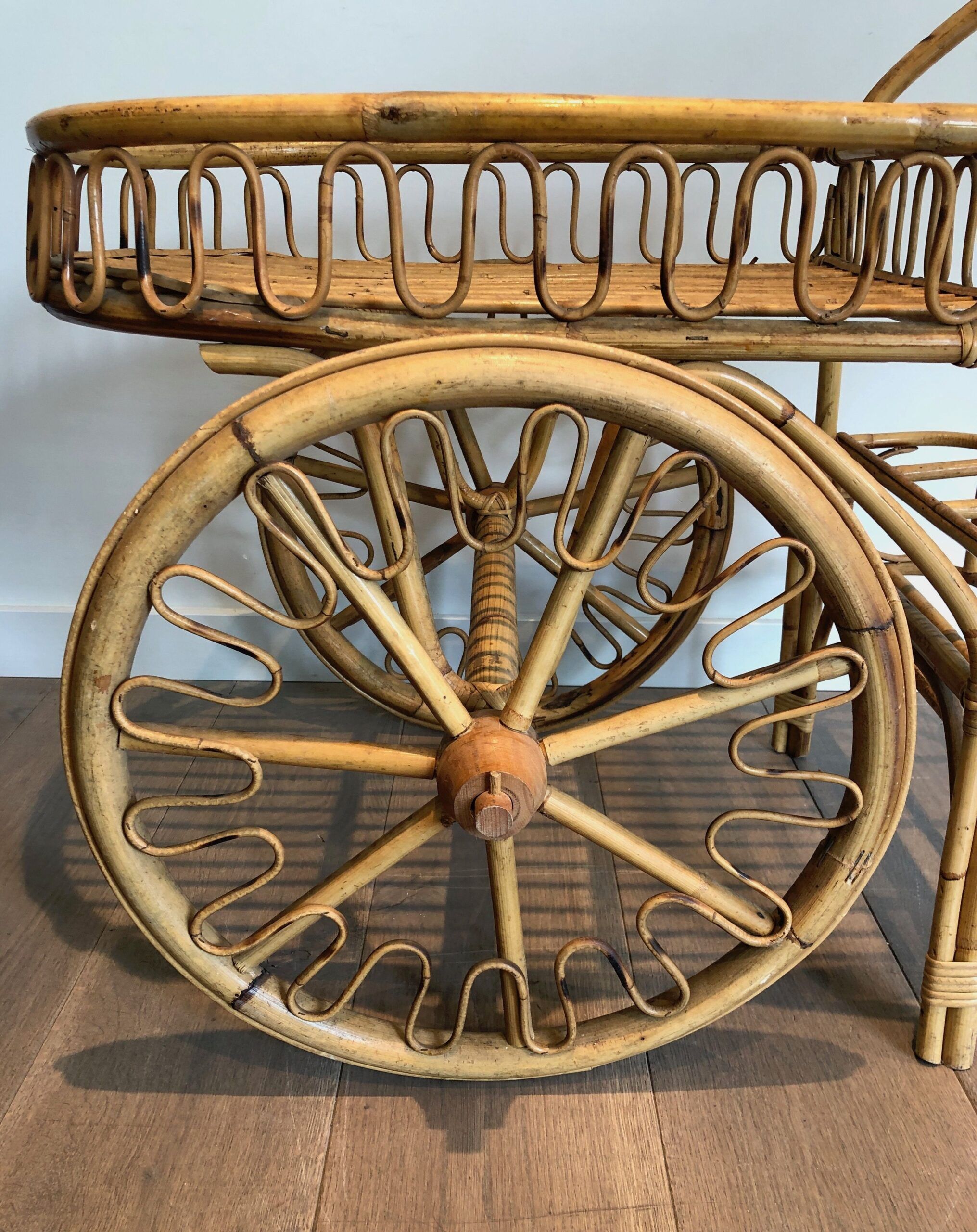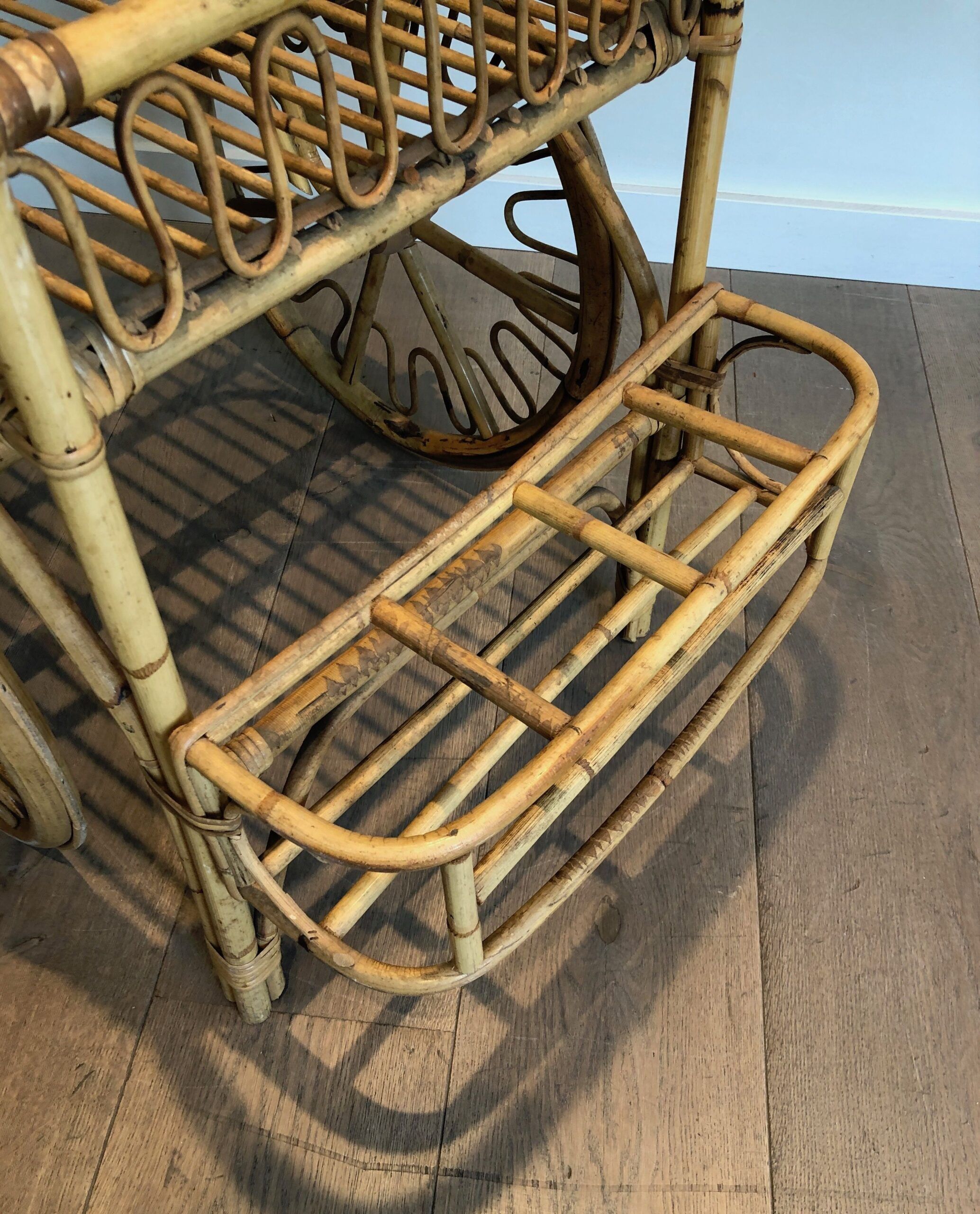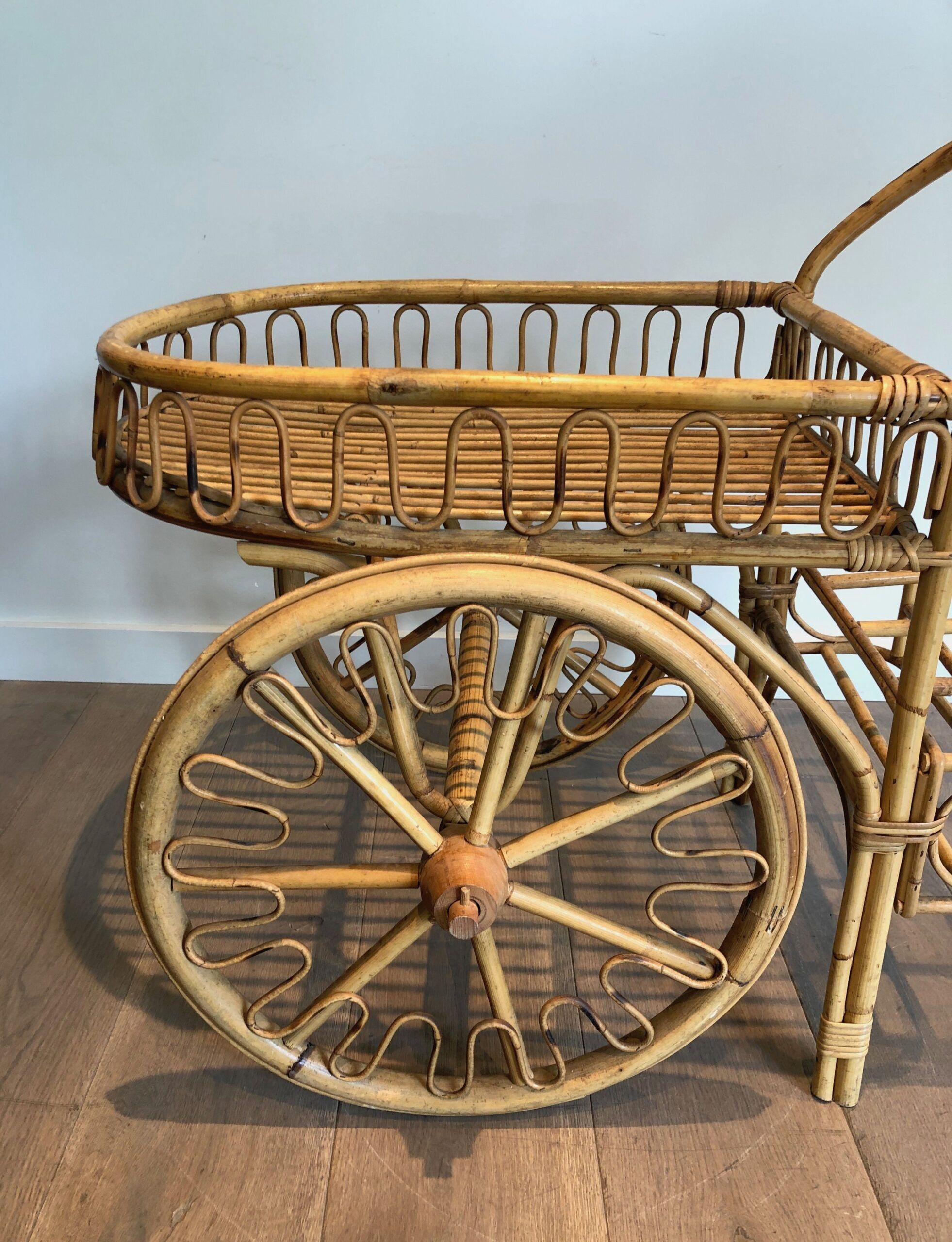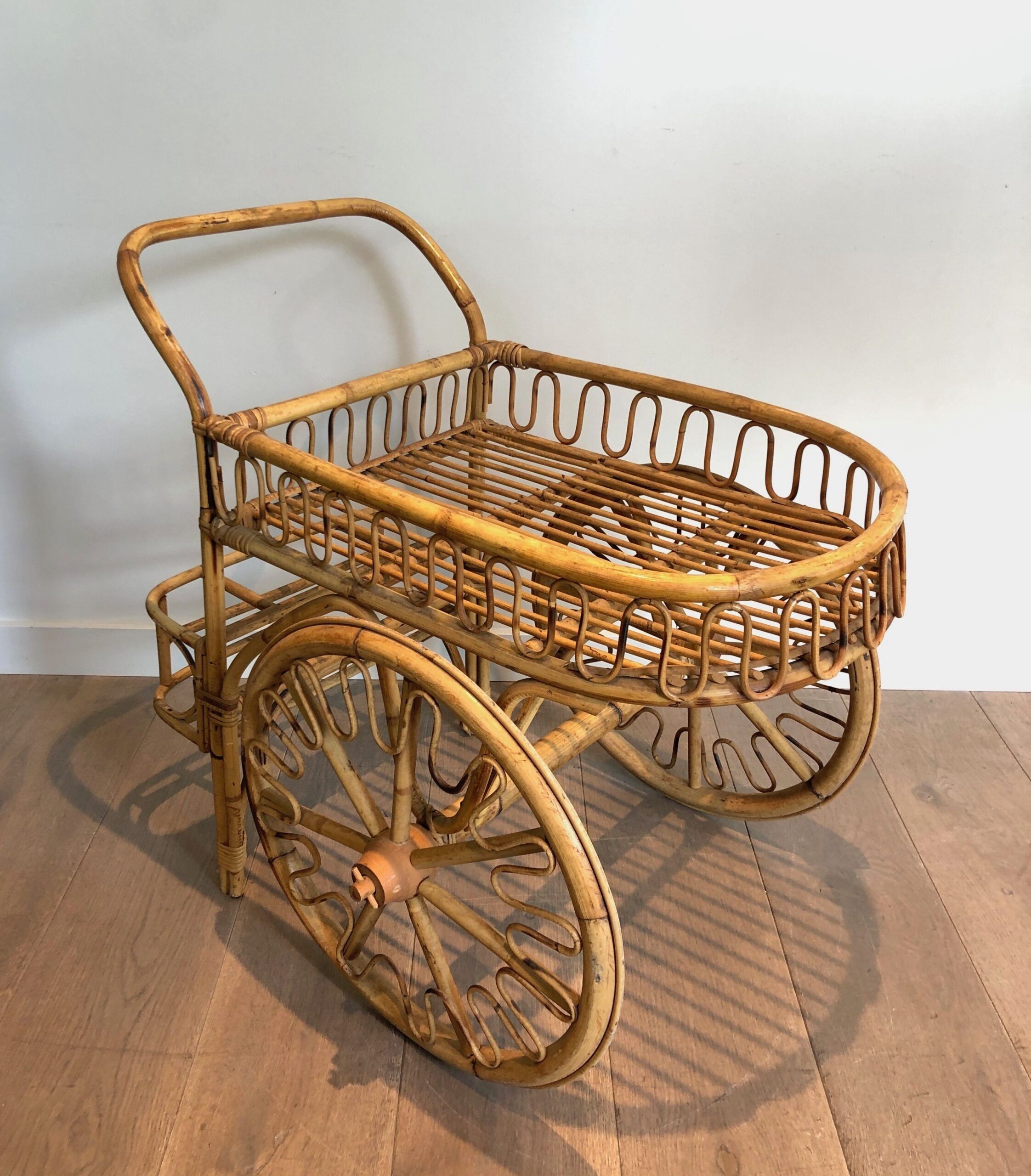 Rattan Drinks Trolley, French Work Attributed to Audoux Minet