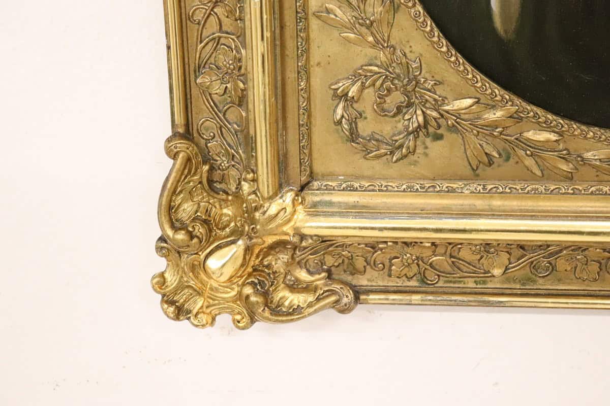 The artwork comes in a 19th-century gilded wooden frame with fine decorative details. The frame enhances the overall presence of the piece.