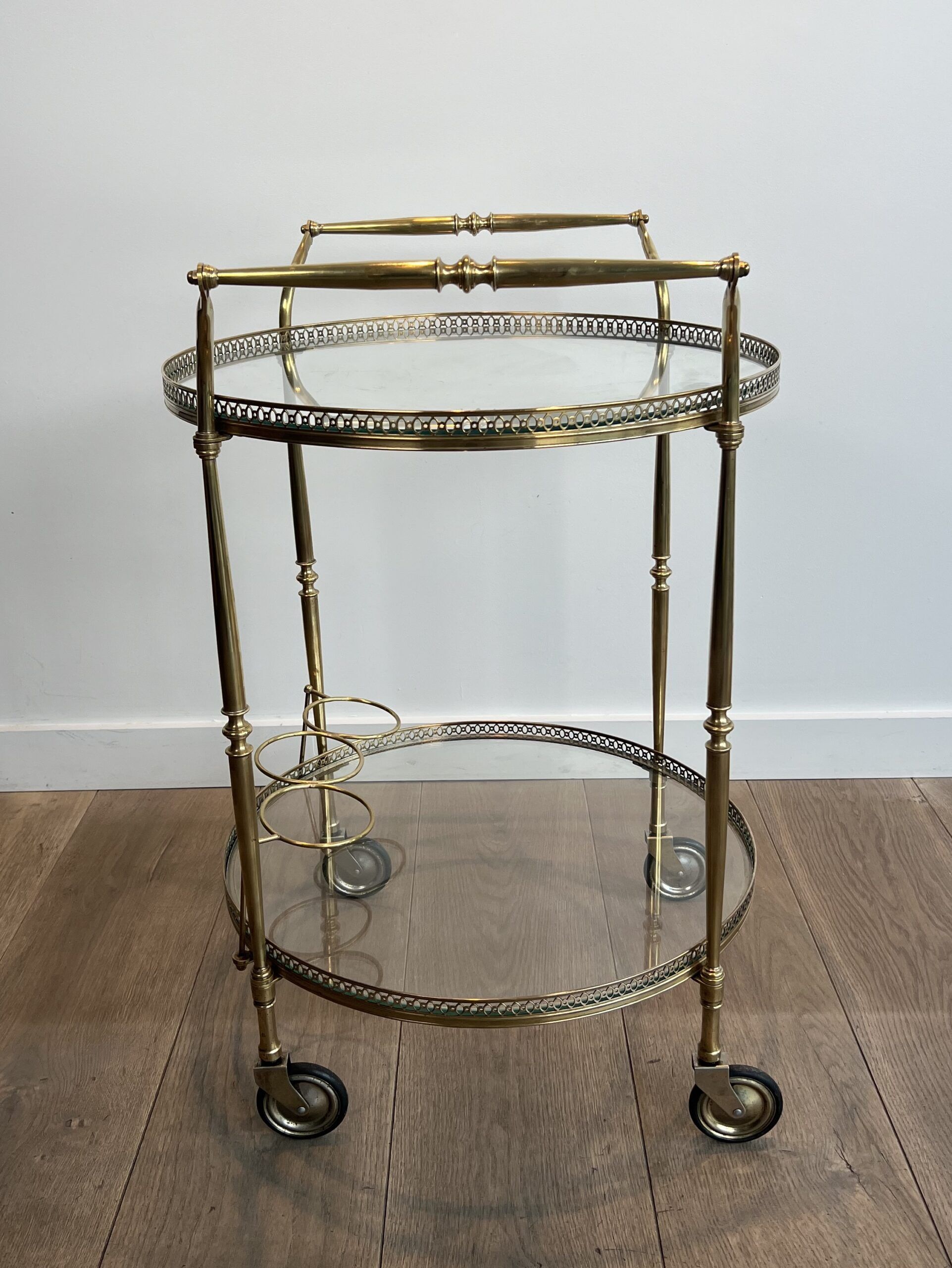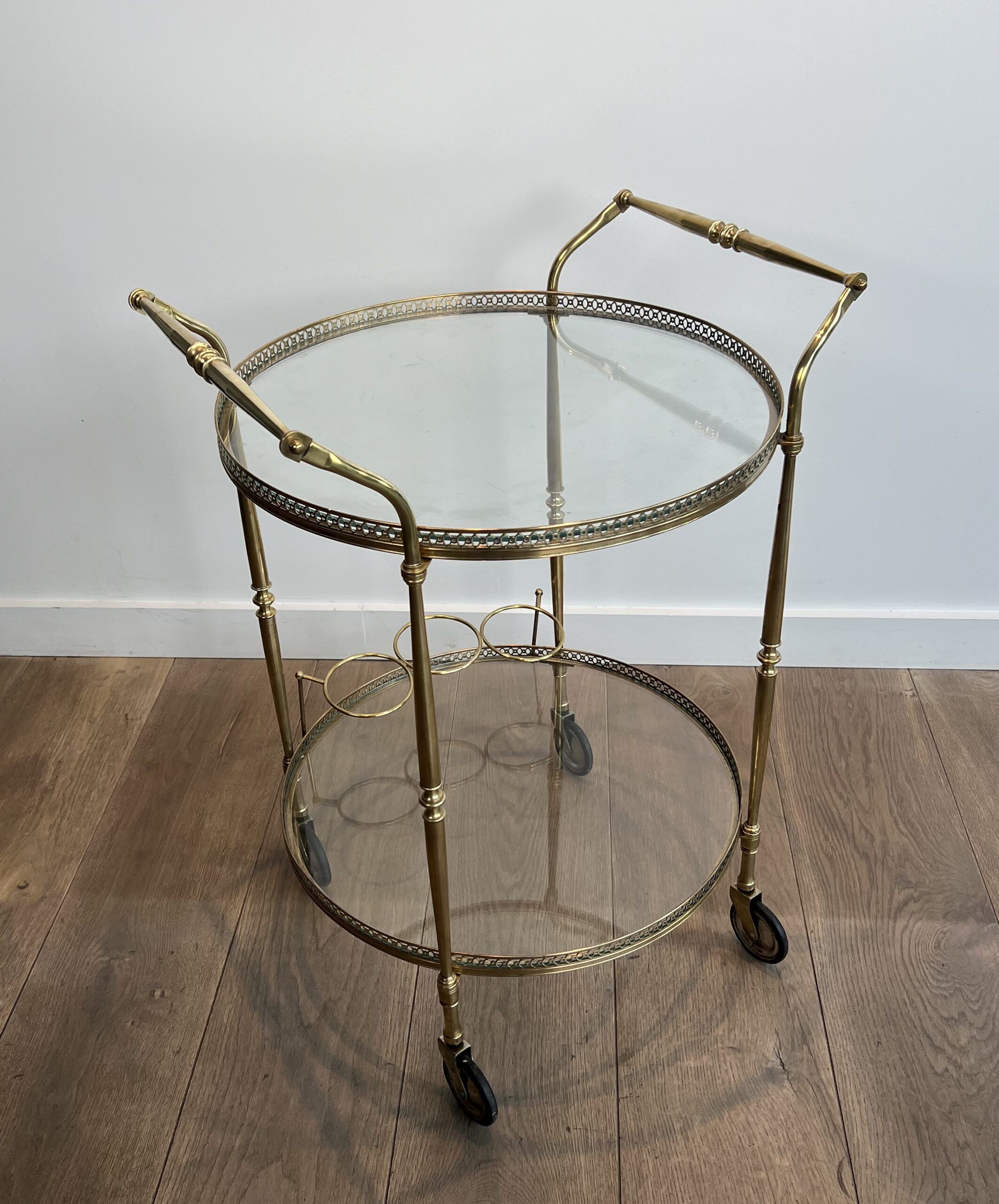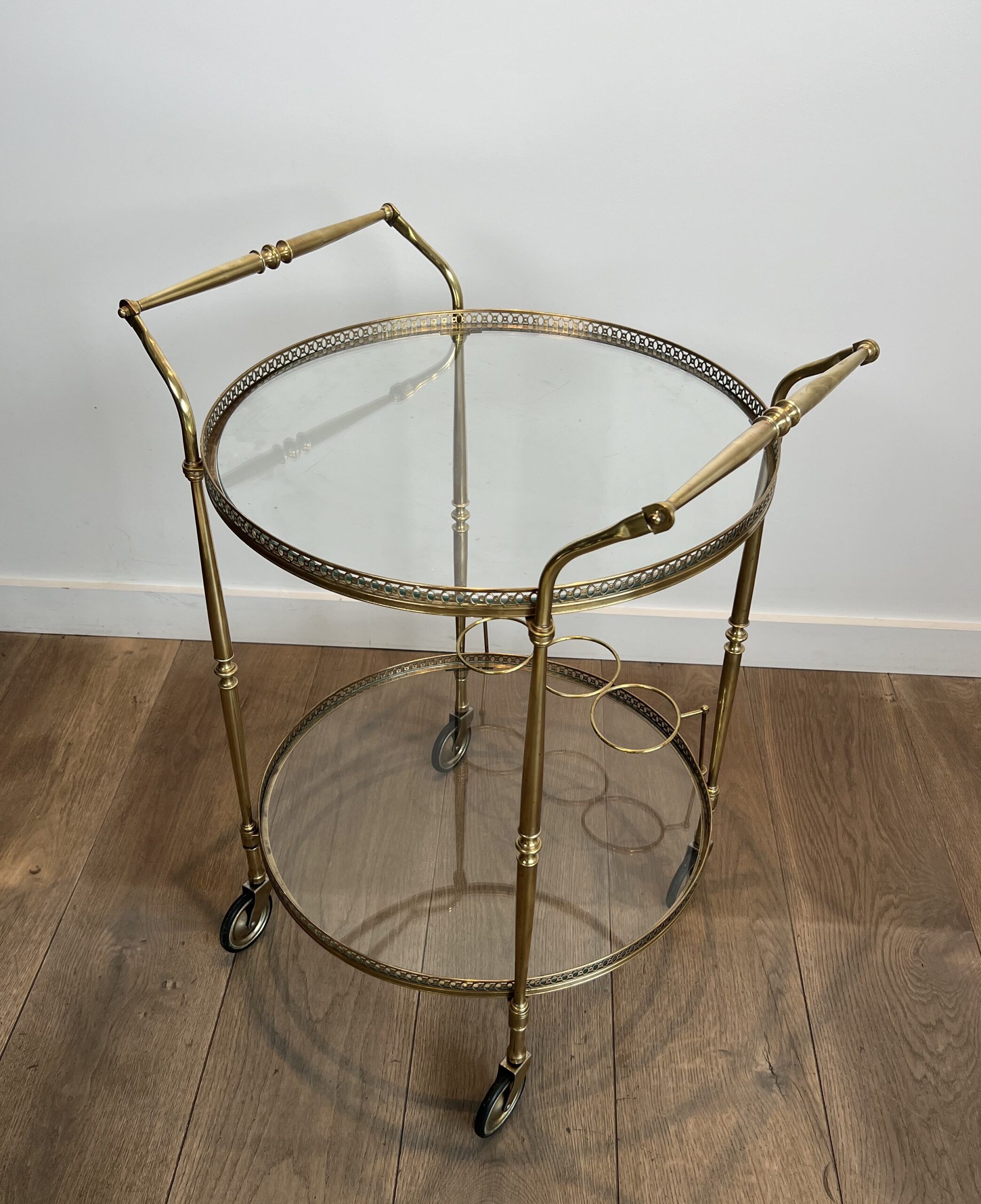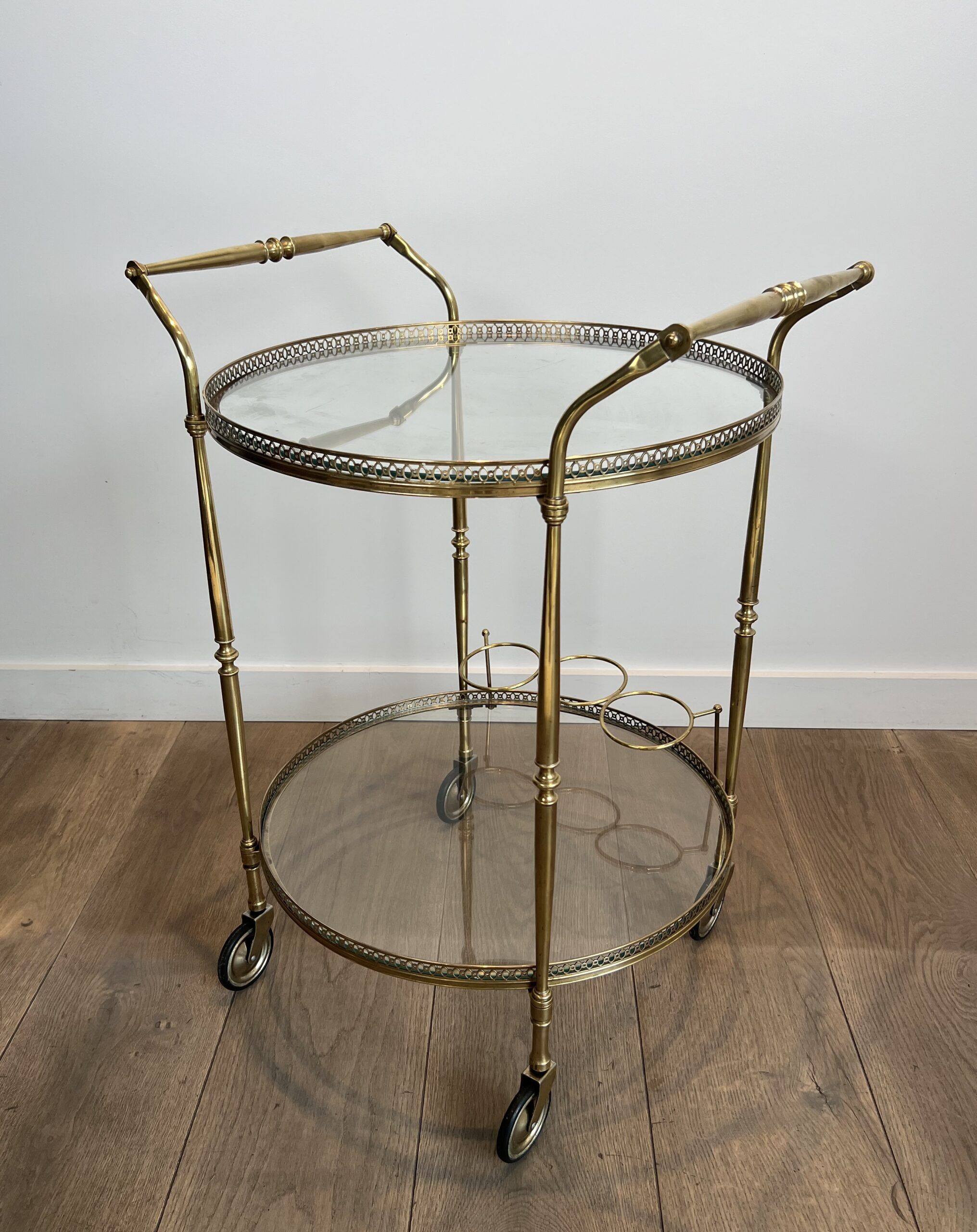 Round Brass Bar Cart in Neoclassical Style, Circa 1940