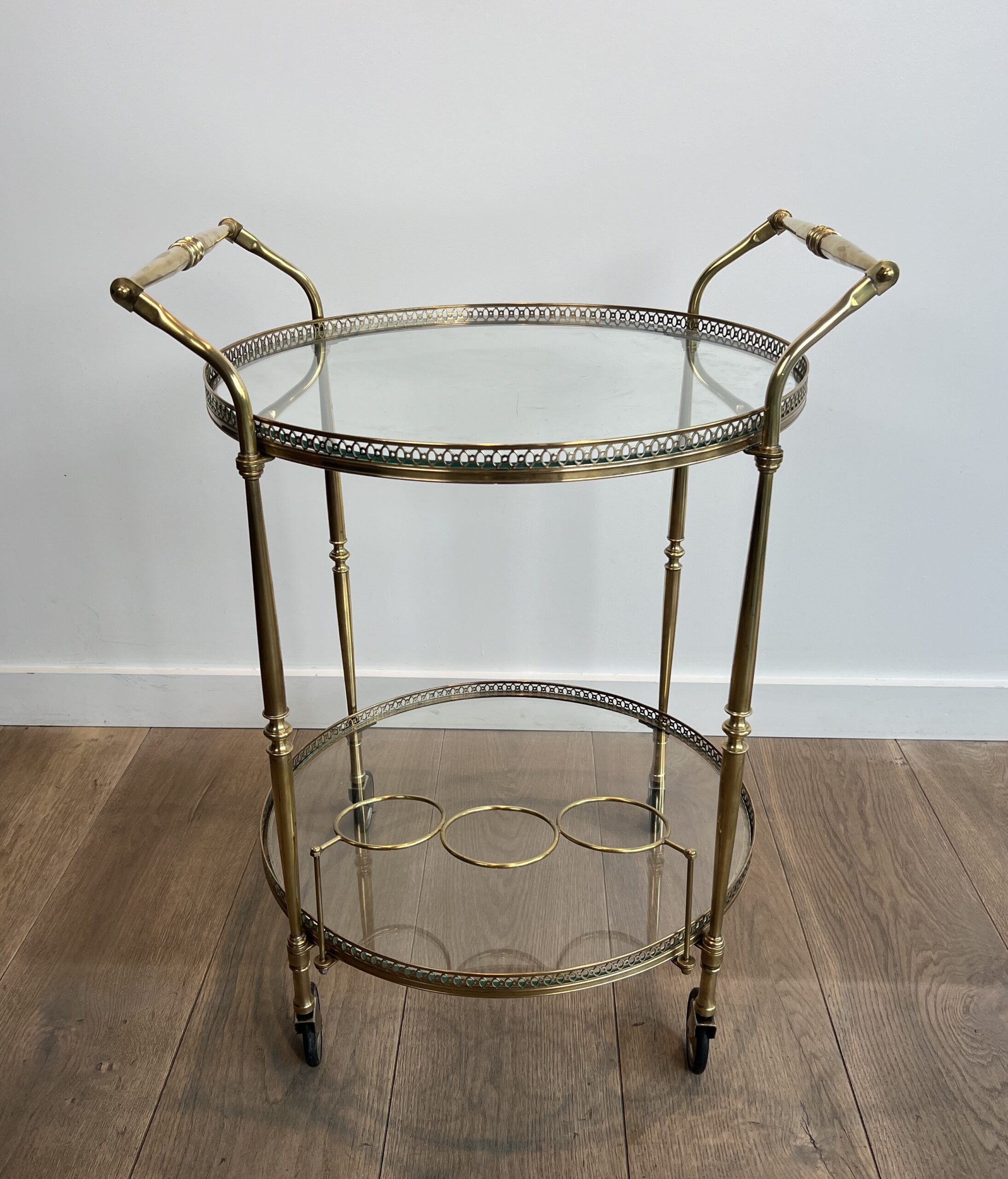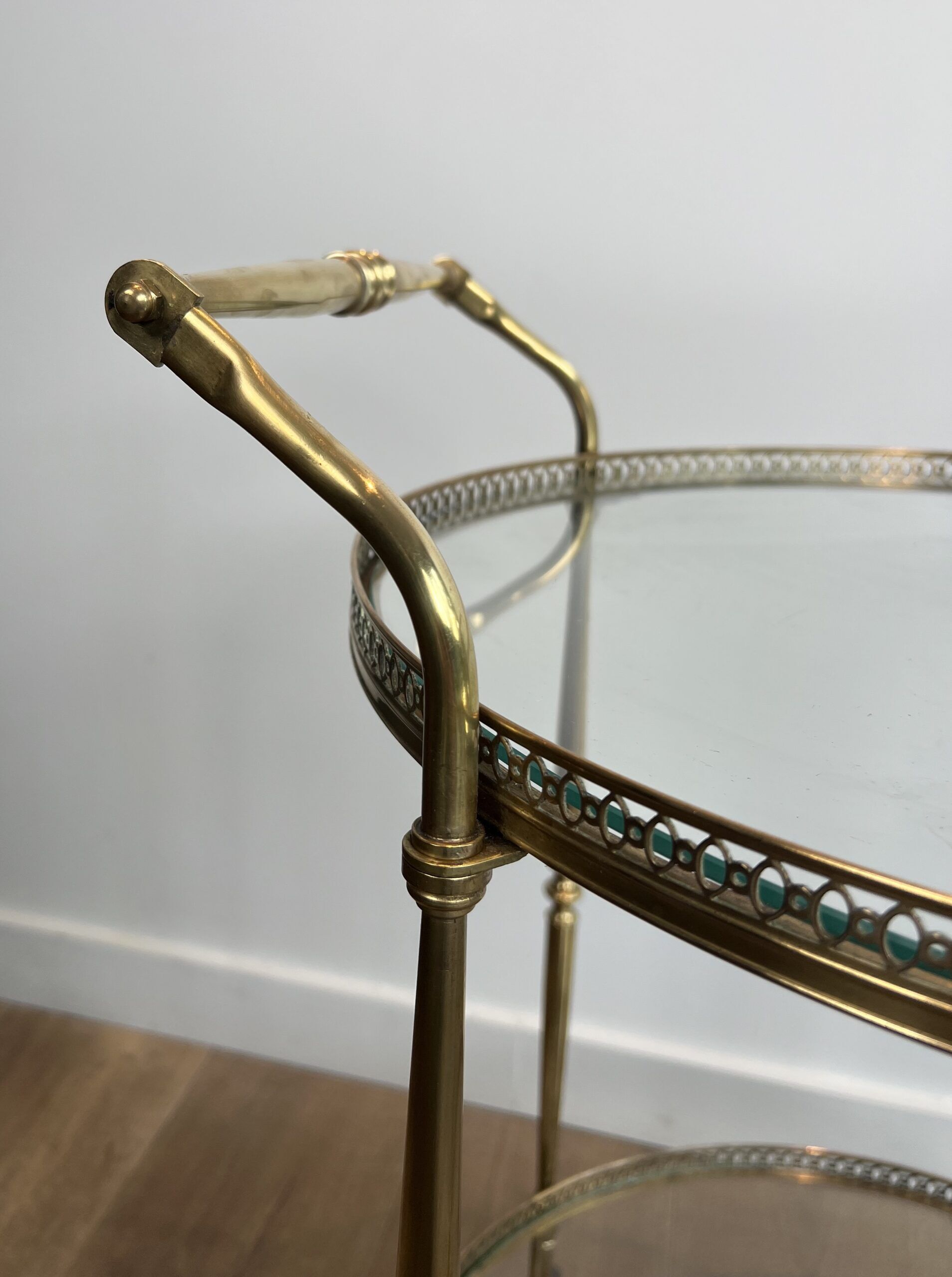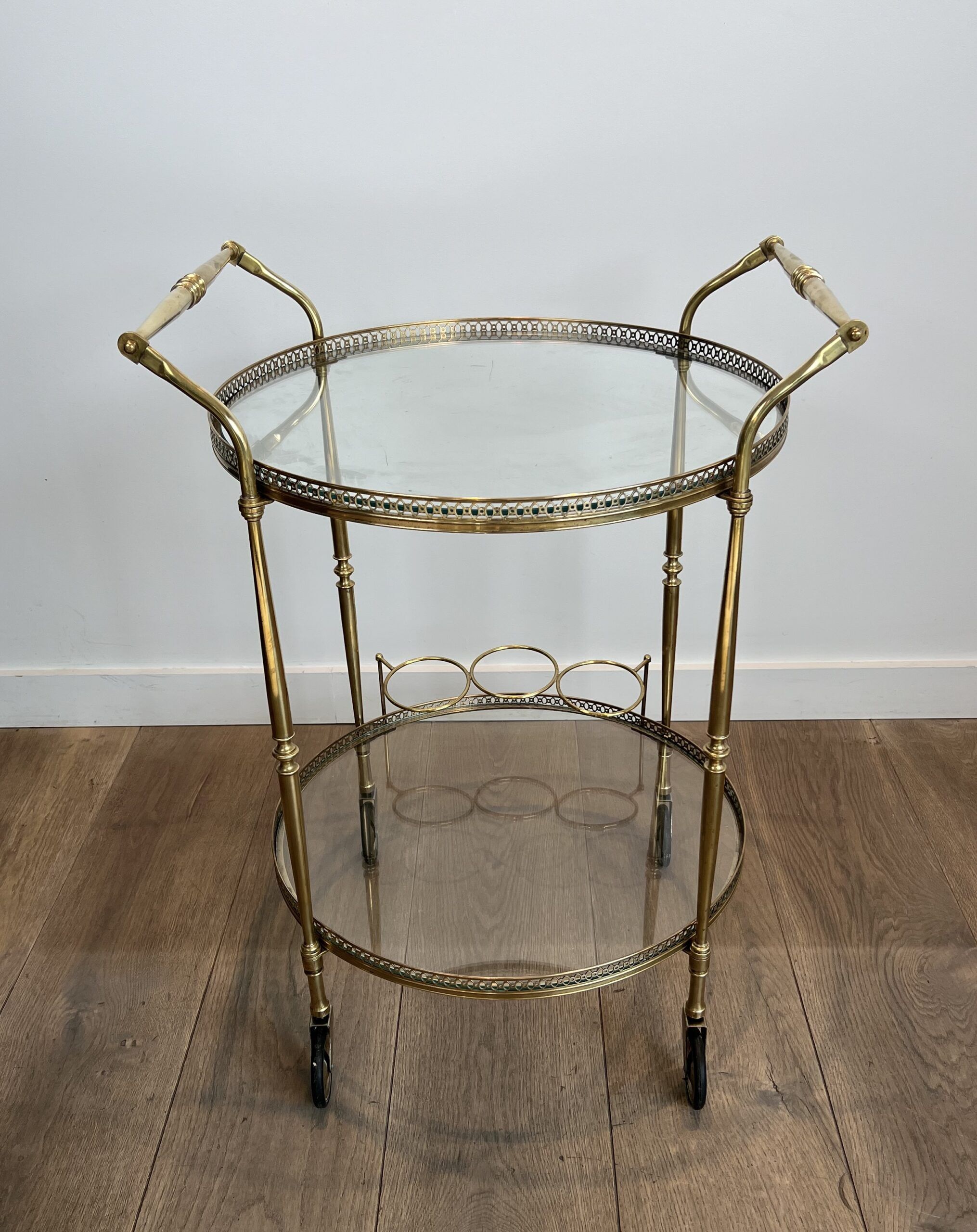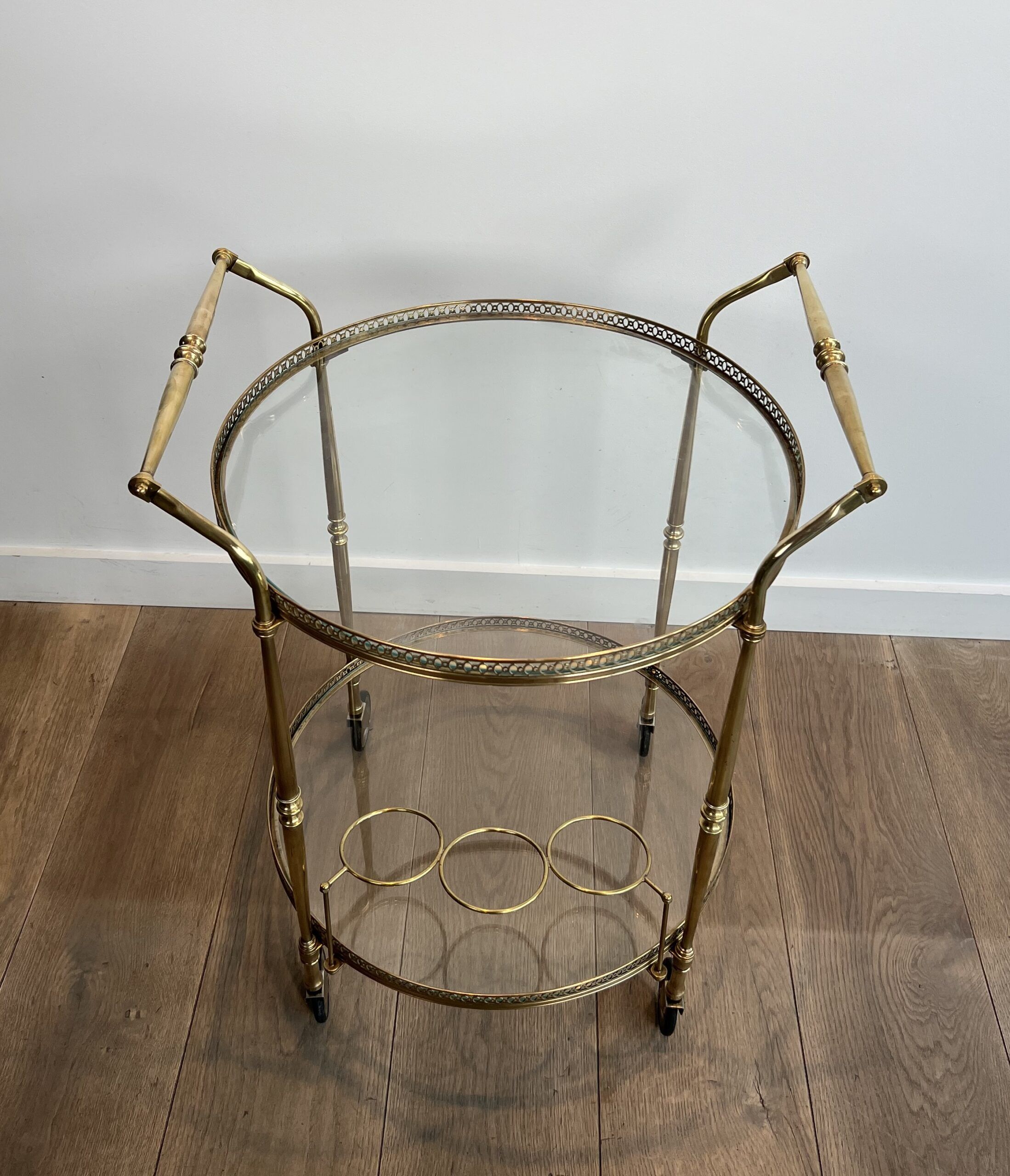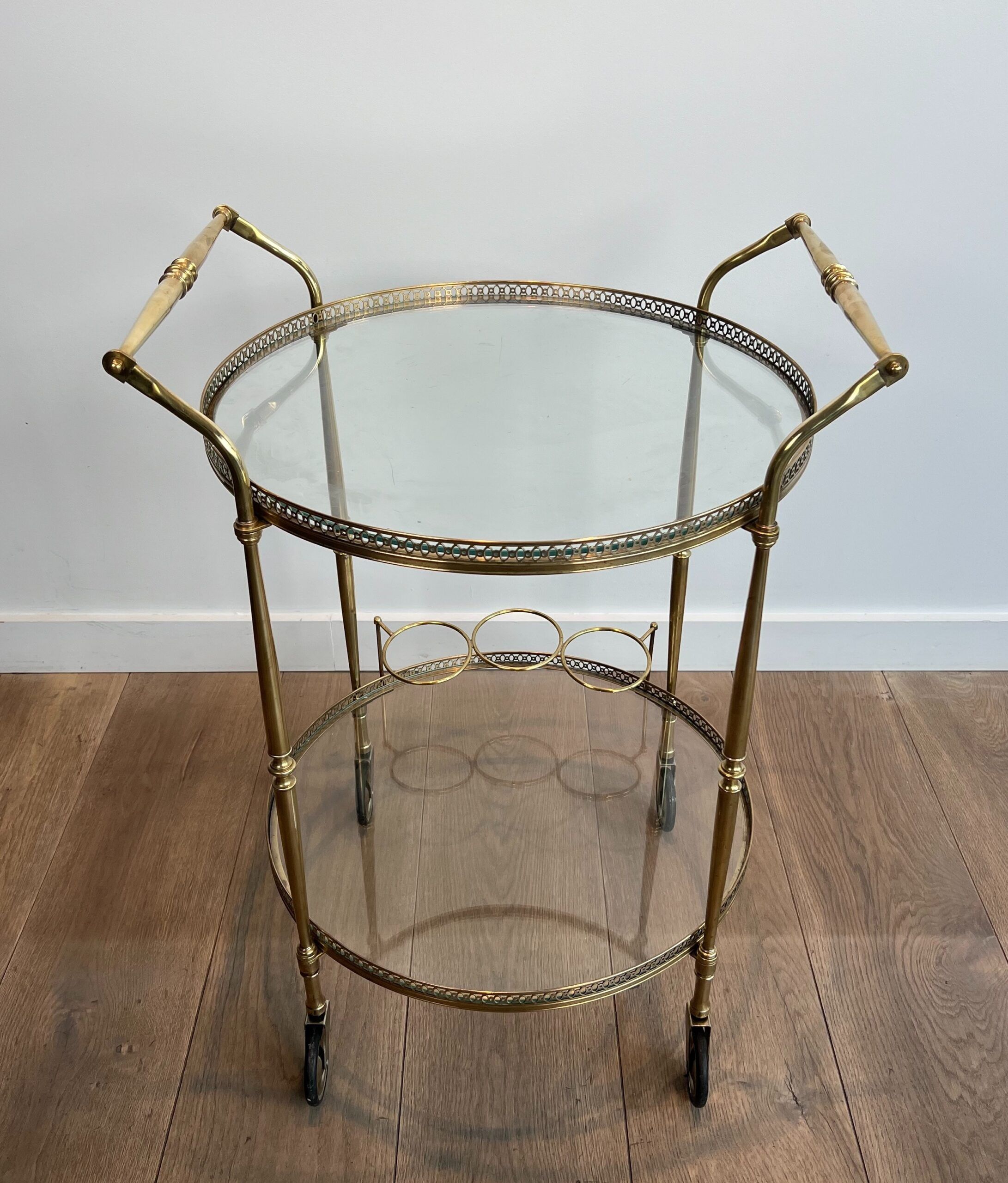 Round Brass Bar Cart in Neoclassical Style, Circa 1940